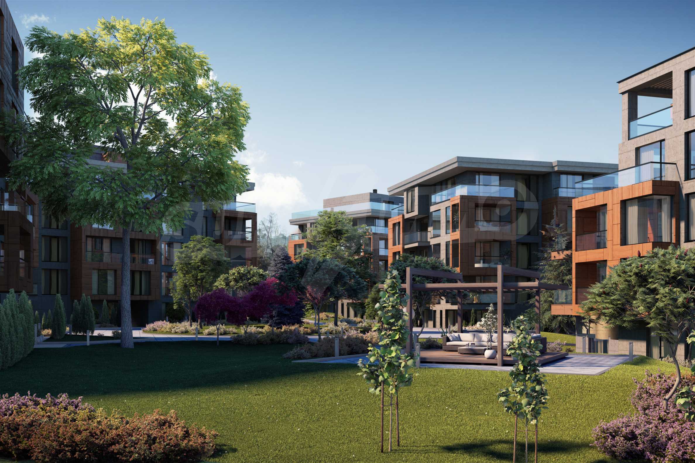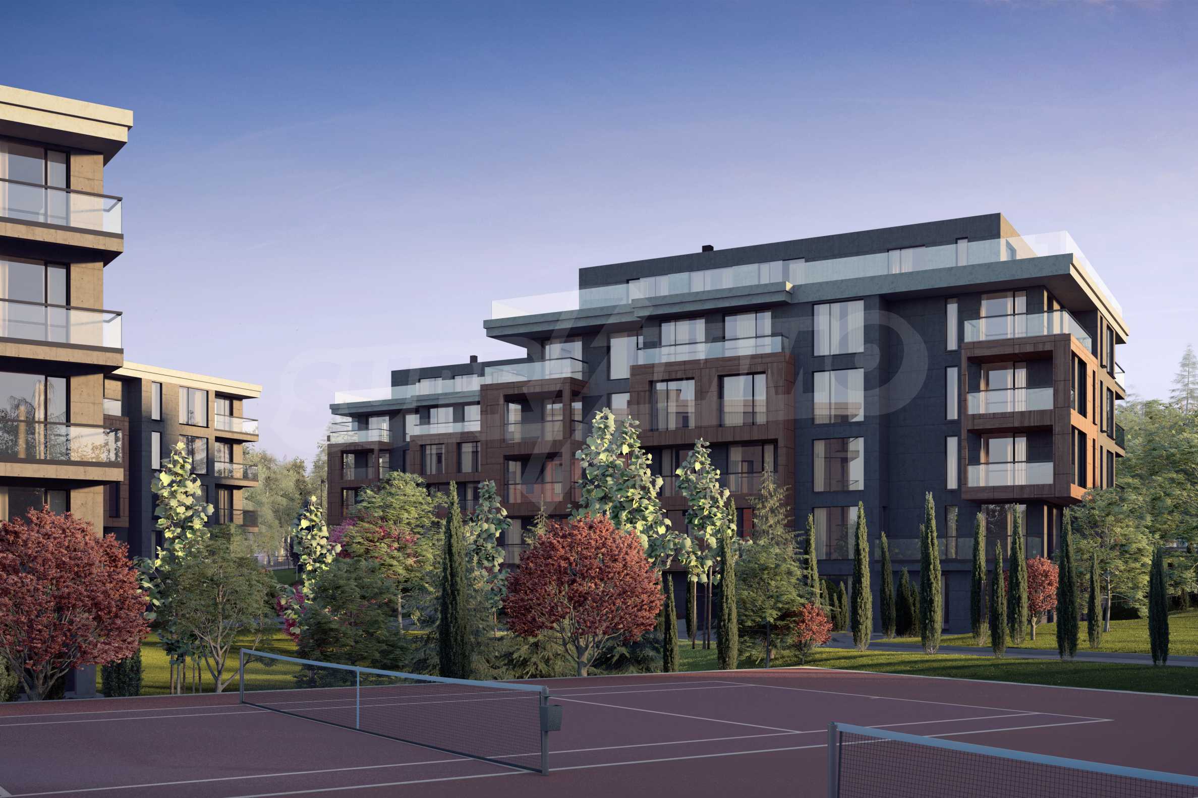 Gloria Palace Residence has no analogue in Sofia. The construction of the complex is realized on 11 decares, on which only 6 buildings are built with a great distance between them, as about 8 600 m2 area is provided for a park with over 150 types of protection.