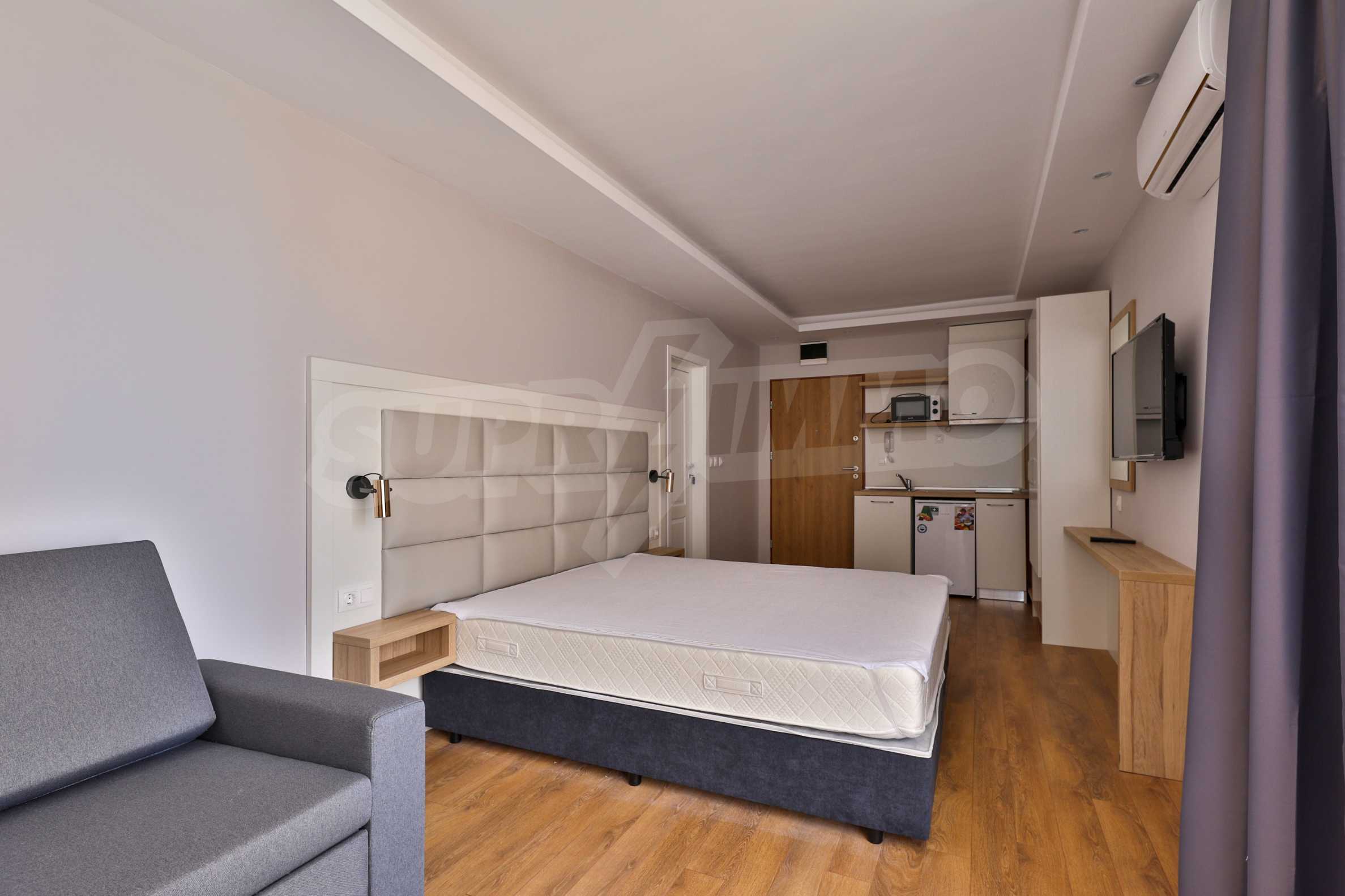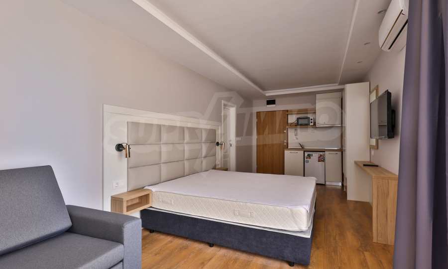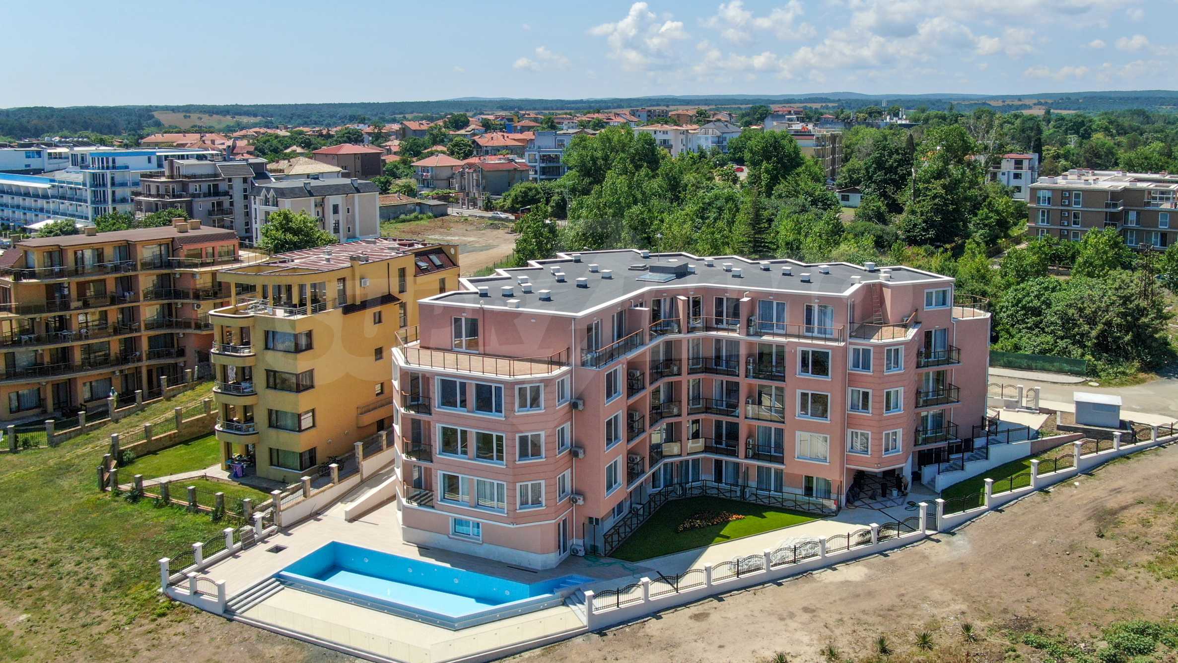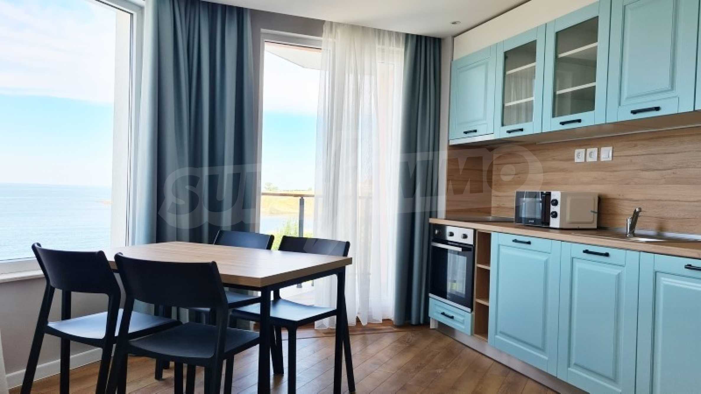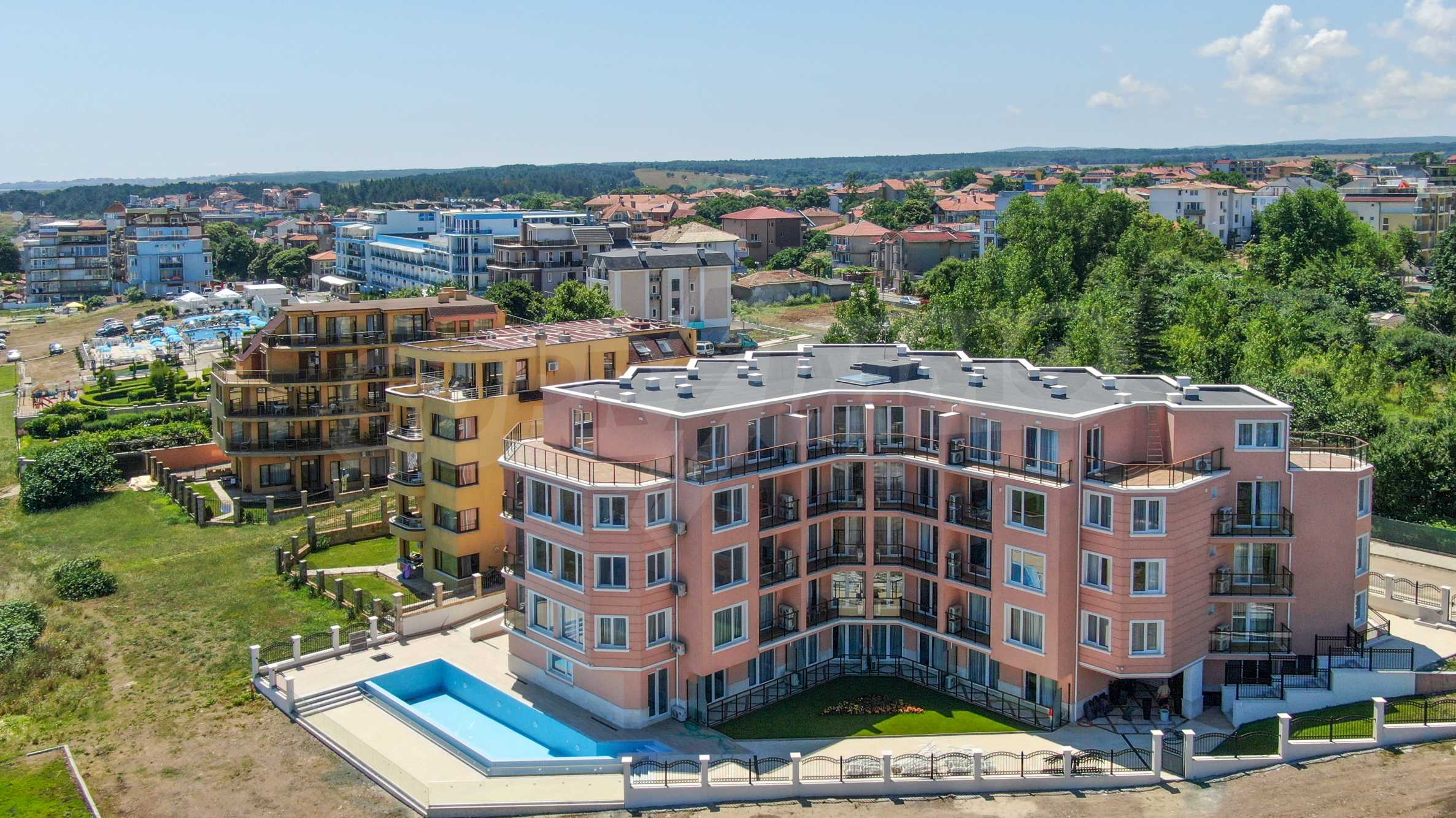The property in such a complex is a dream come true - a lot of style and elegance, impressive sea views, green areas and a modern panoramic pool on the absolute first line. The luxury apartments and studios are furnished with taste and modern approach, creating a prerequisite for a wonderful family or romantic vacation in this quiet and peaceful region of the Bulgarian Black Sea coast.