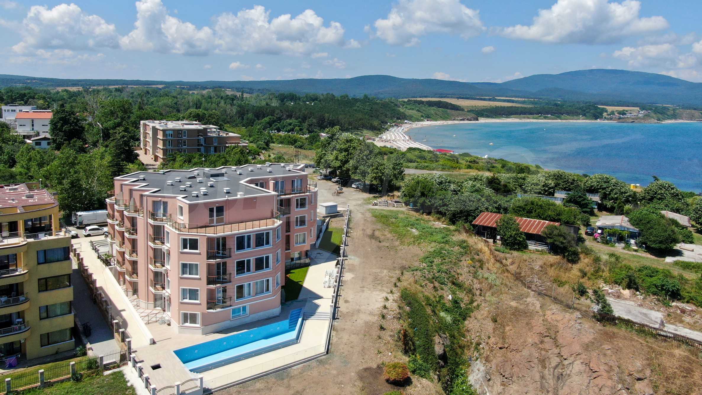 The location of the complex is distinctive: on the seacoast, on the beautiful rocks, with the opportunity to observe views of the sea bay frontally and unobstructed. The residence is created with a sophisticated and delicate design, with high quality building materials given the maritime climate, and the building is successfully functioning and put into operation. The fabulous location offers the most beautiful beaches, located within a 15 km radius of Ahtopol.