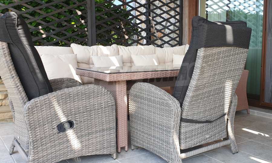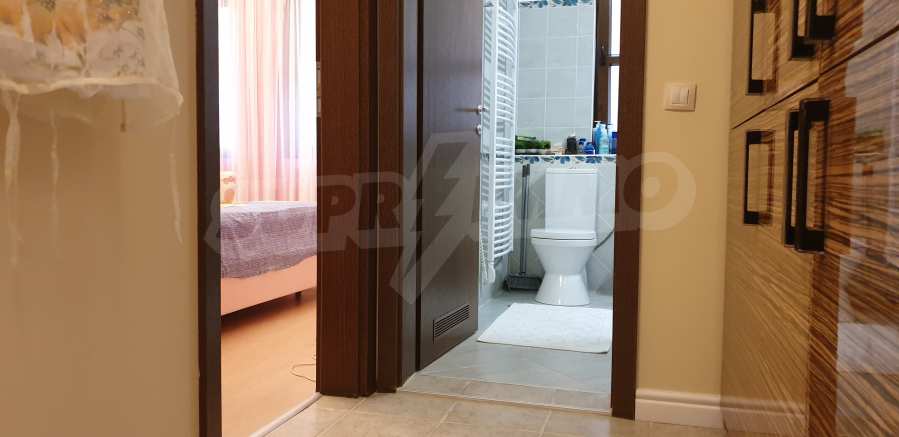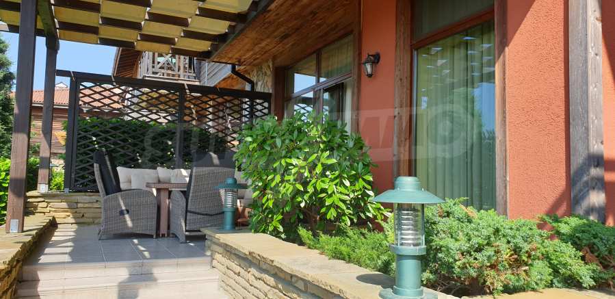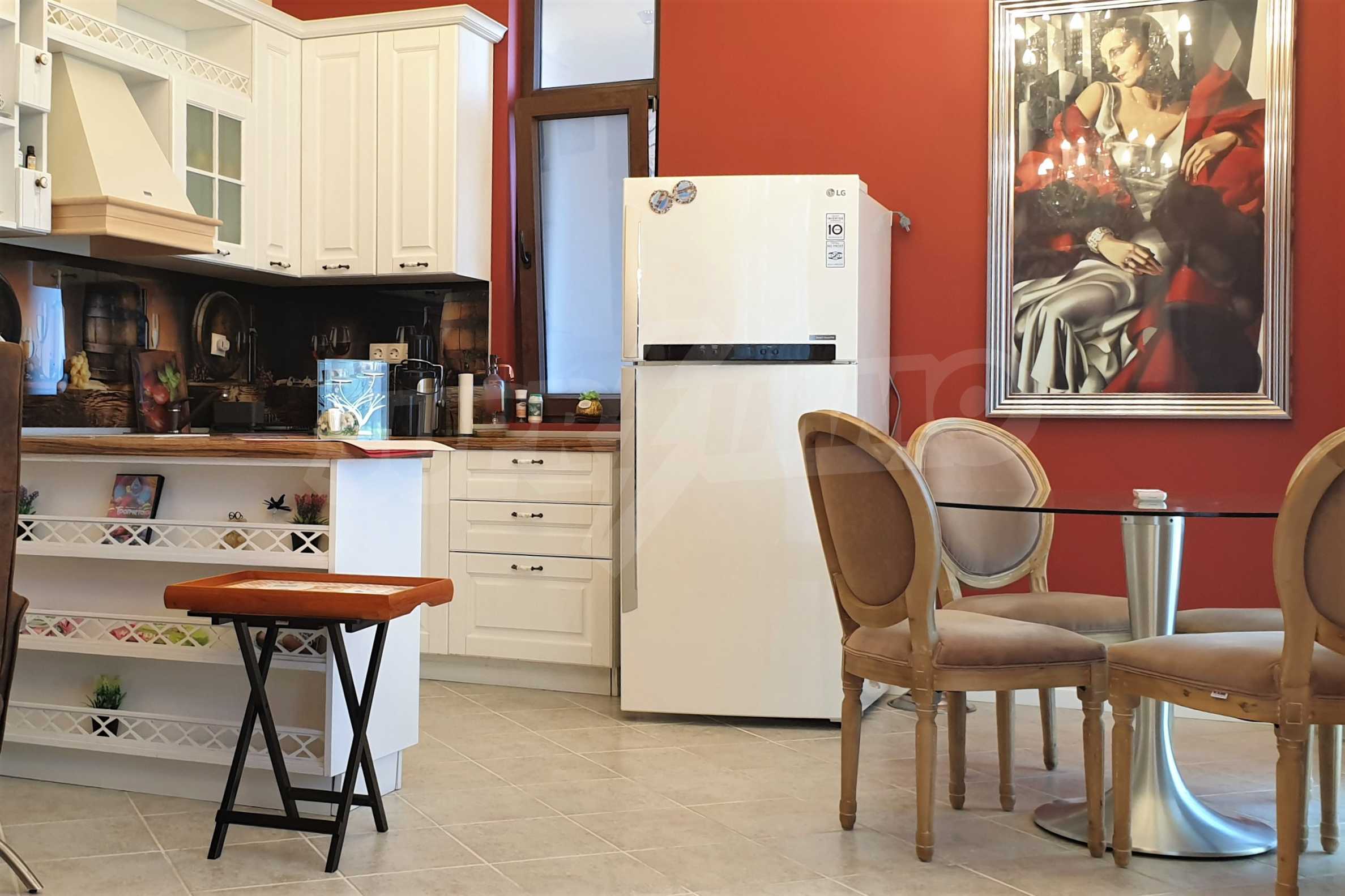 The property has a total area of 78.58 m2., is located on the first level and has one bedroom, a spacious living room with kitchen, a bathroom with toilet and a private yard with a veranda. It is finished with the highest quality materials and is sold with furniture and appliances, with Toshiba air conditioners, a fully equipped kitchen. Ready to move in, the apartment offers everything you need for a wonderful summer vacation, permanent living or rental.