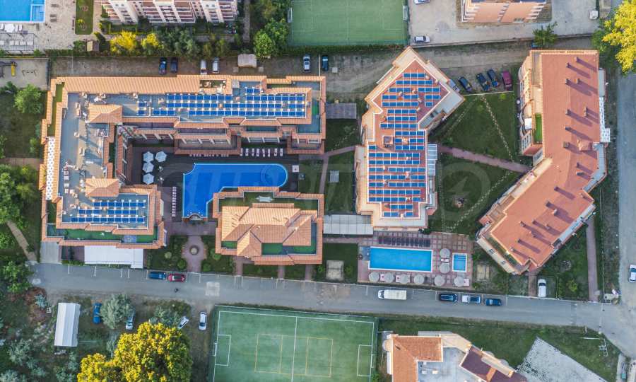 Sunny View Central complex The complex consists of 6 buildings in 4 buildings with a total of 331 apartments with Act 16. The exposure of the complex is to the south, and the apartments have views of the swimming pool and sports ground.