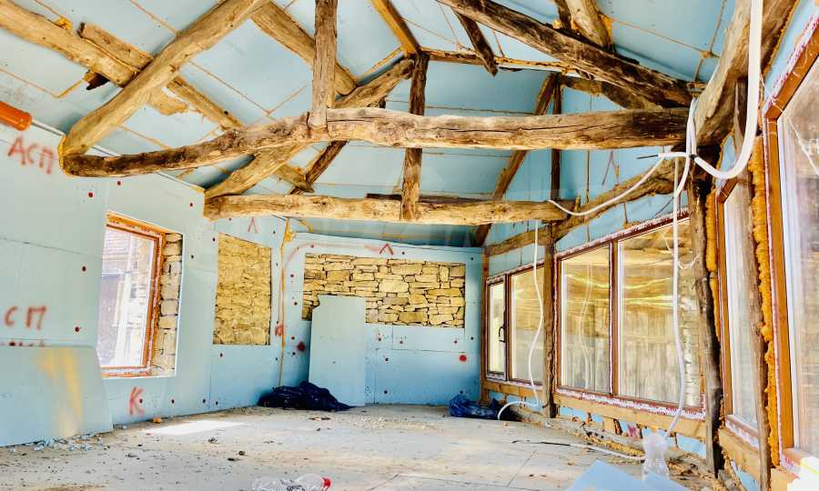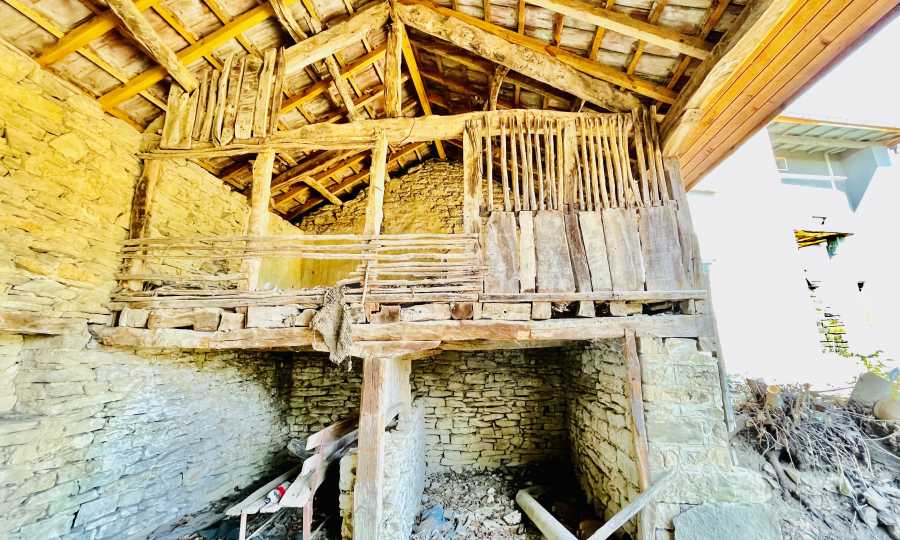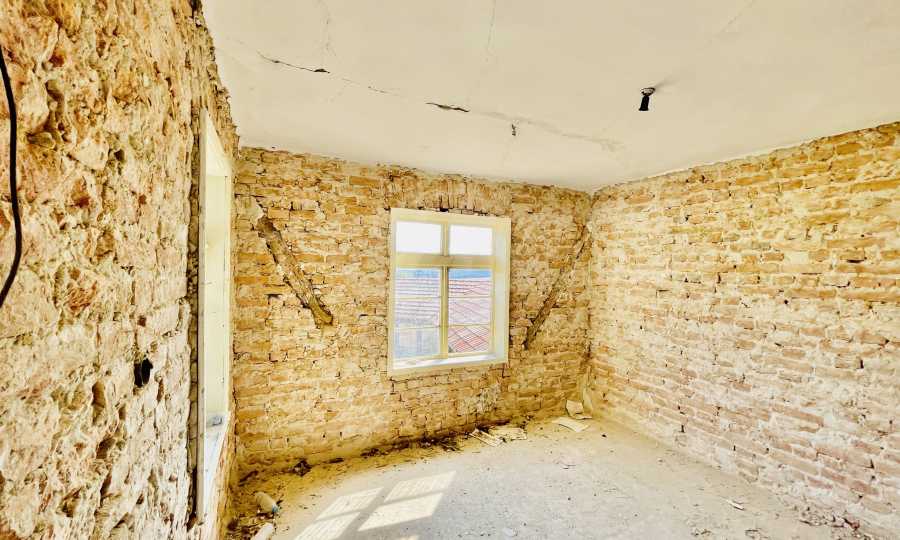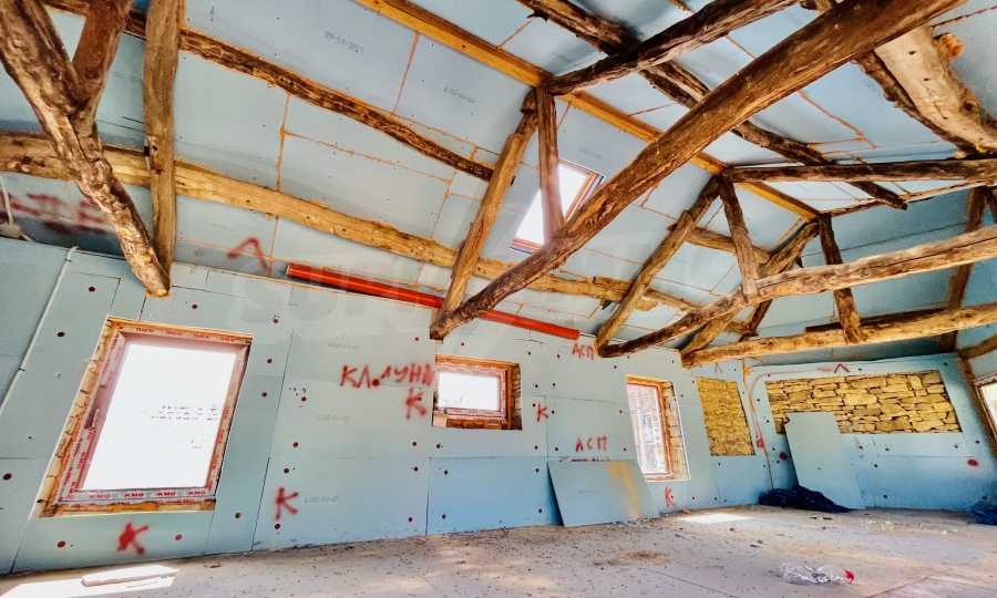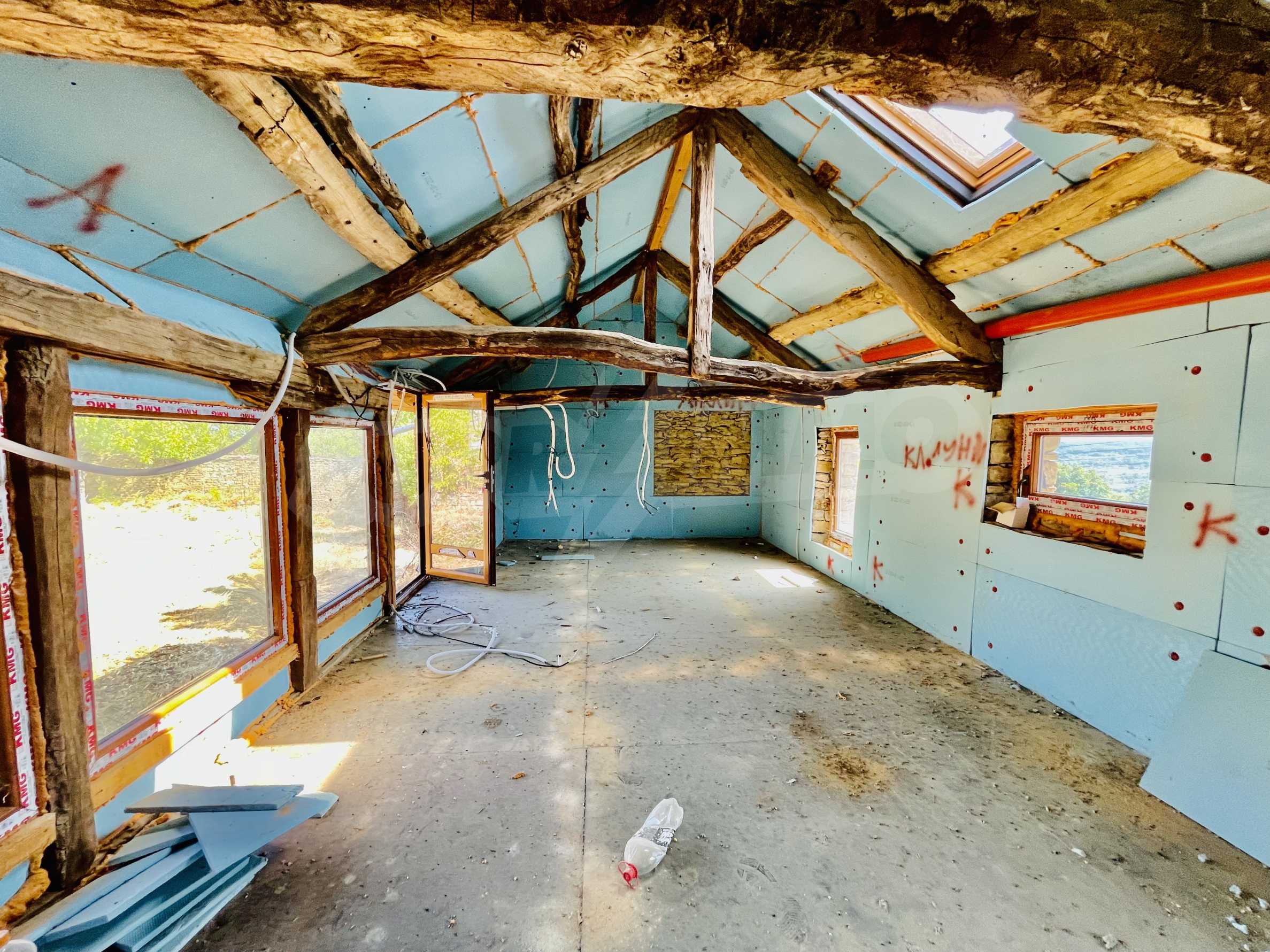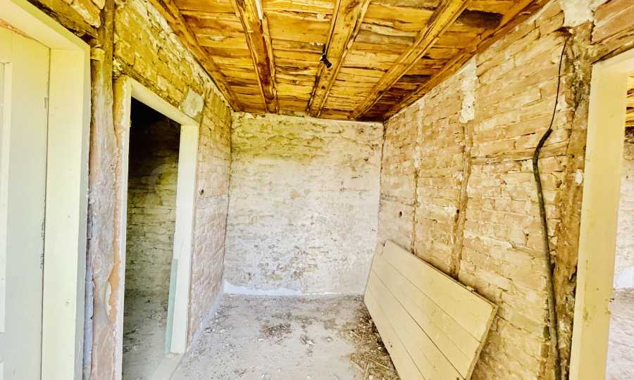 The village house is located in a large yard of 1300 m2. The property is two-storey and has an area of 120 m2. The roof is in good condition. Renovation and joinery of the farm building have started. The house has electricity and central water supply.