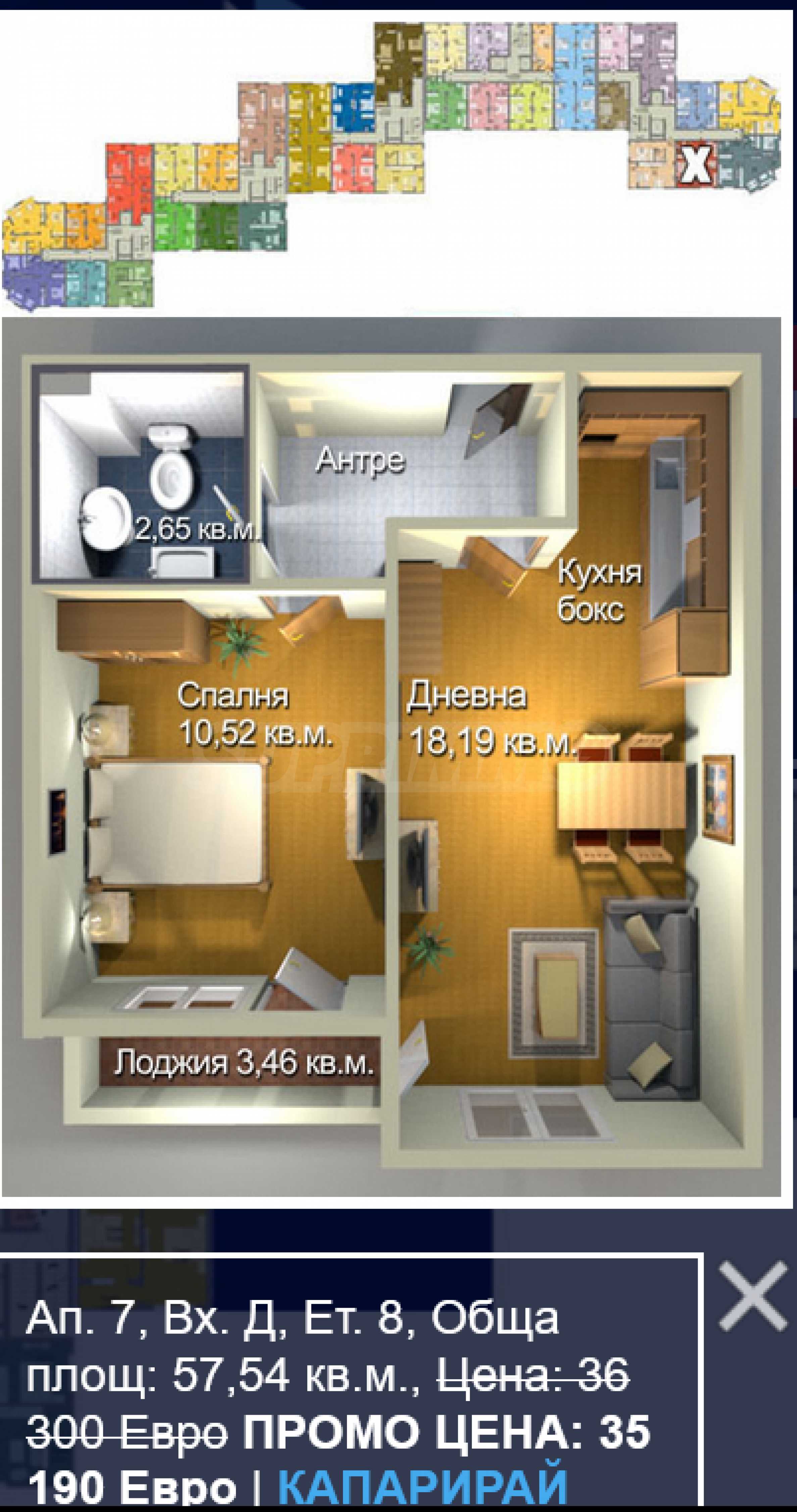 We present to you a two-room apartment of 54.73 m2 for sale, in the first stage of the construction of the large-scale complex of mixed type in Meden Rudnik area A.