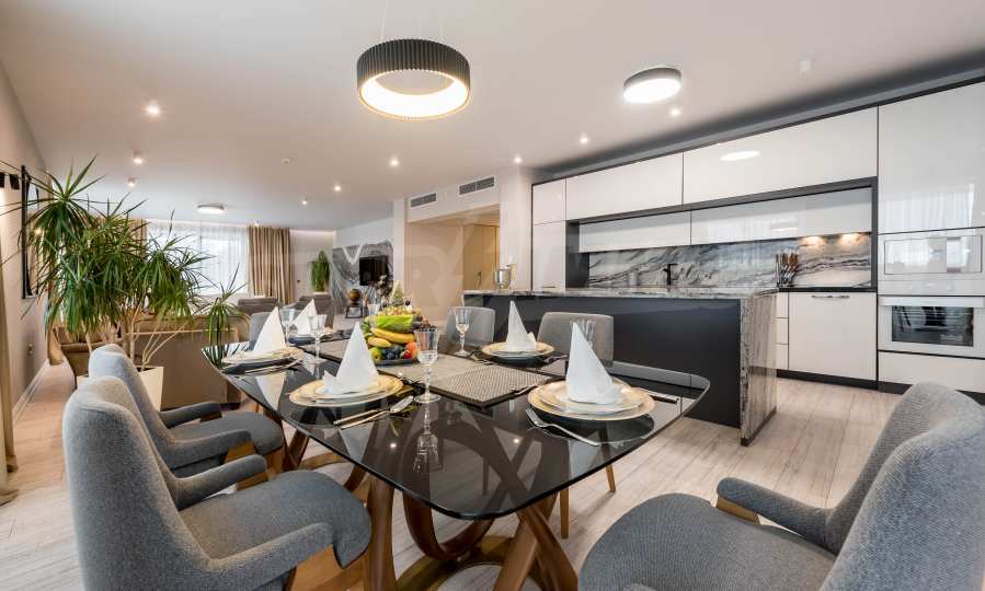 This is where this elegant four-room apartment is located, with an exceptional sea view from the first line. The building is newly built and has 29 apartments with panoramic views.