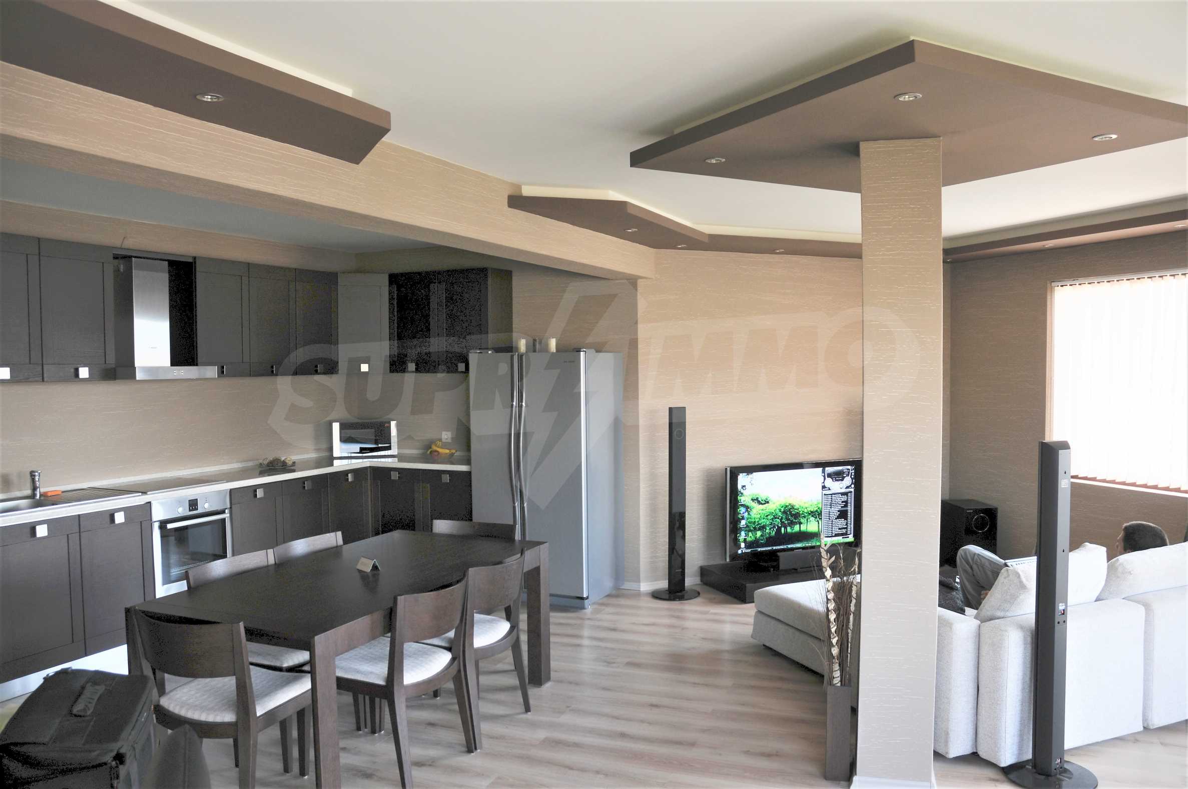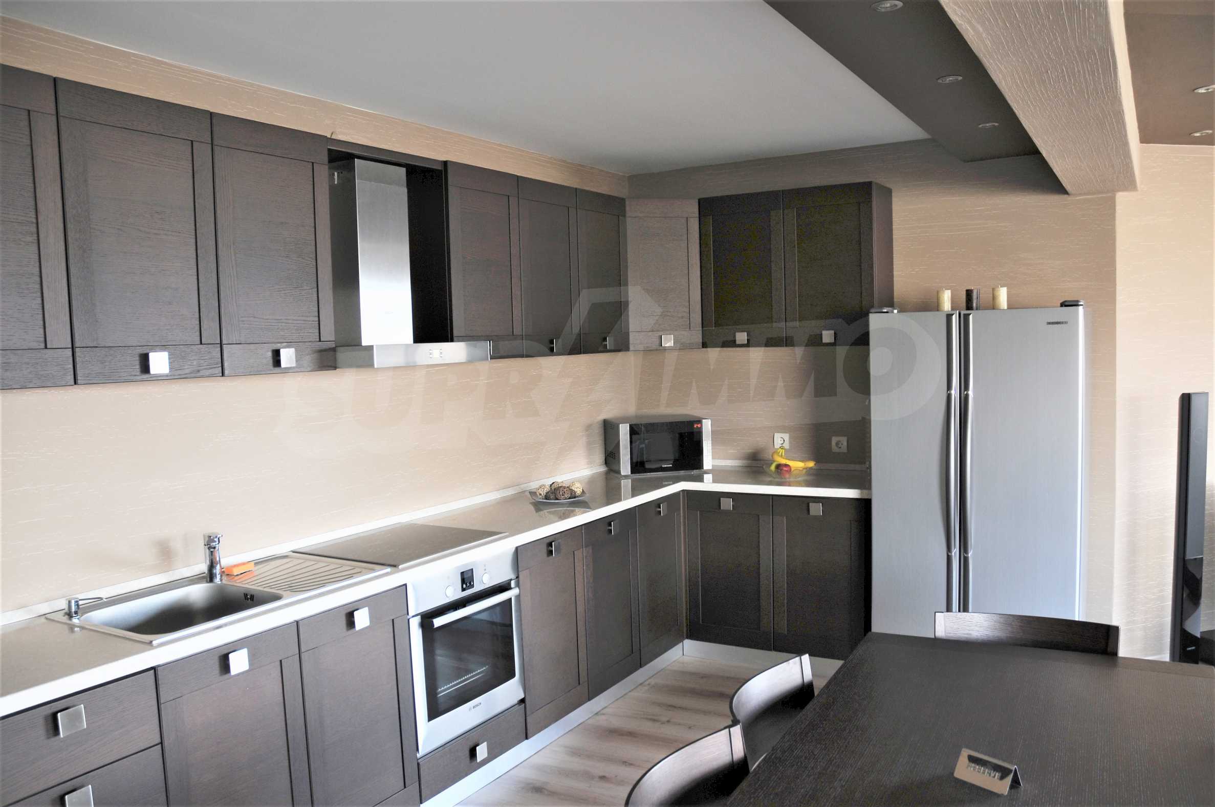 Italian upholstered furniture, parquet, granite tiles, faience. The kitchen appliances are Bosch. Samsung double-wing refrigerator.