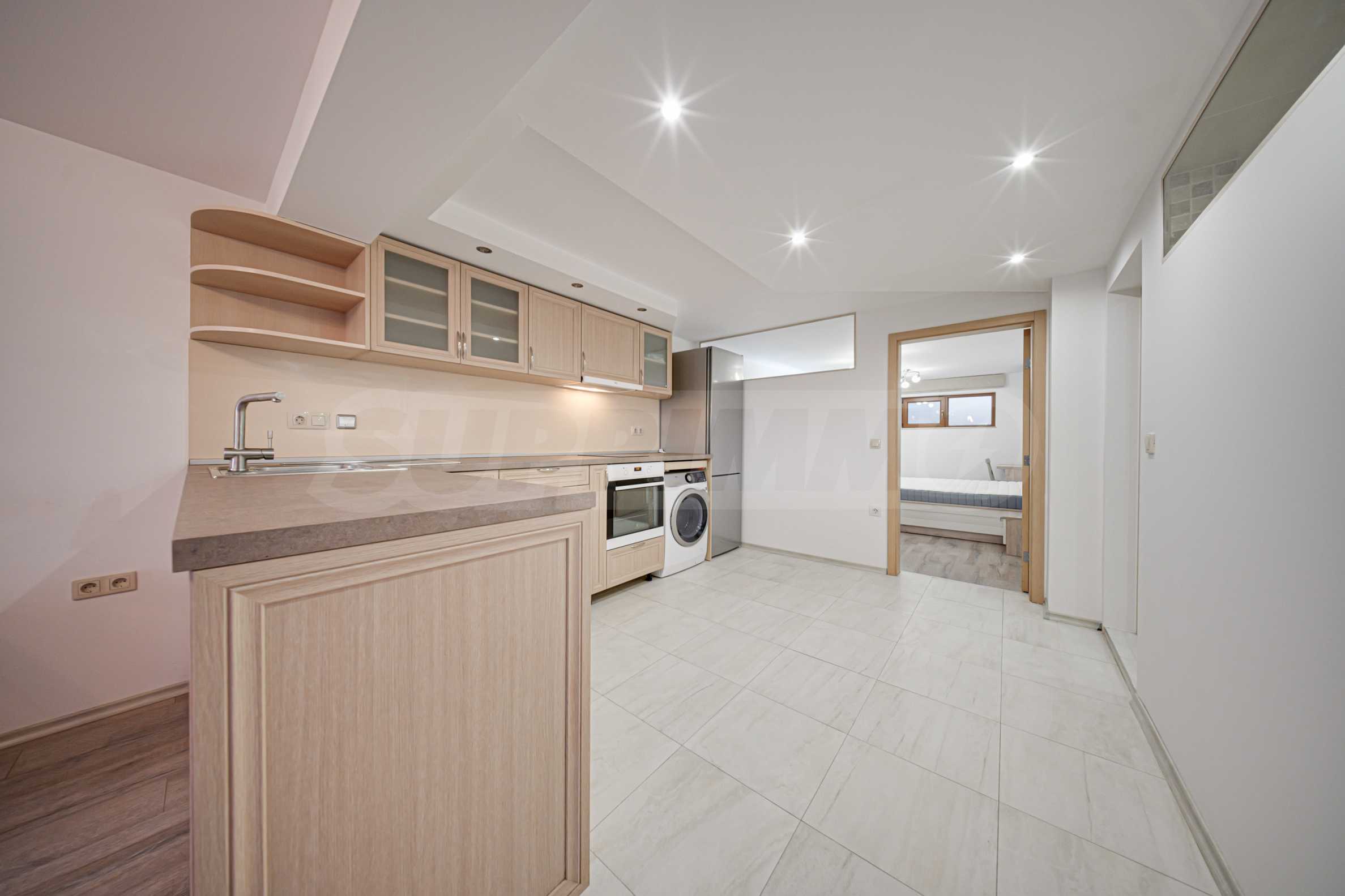 The apartment is located in the center of one of the prestigious areas of Sofia, located at the foot of Vitosha. The neighborhood is quiet, with fresh air and fast connection to the city center through Cherni Vrah Blvd. Access to the peripheral neighborhoods is via the Ring Road. Minutes away are a school, community center, many restaurants, cafes, sports centers, offices in the field of services and regular public transport stops.