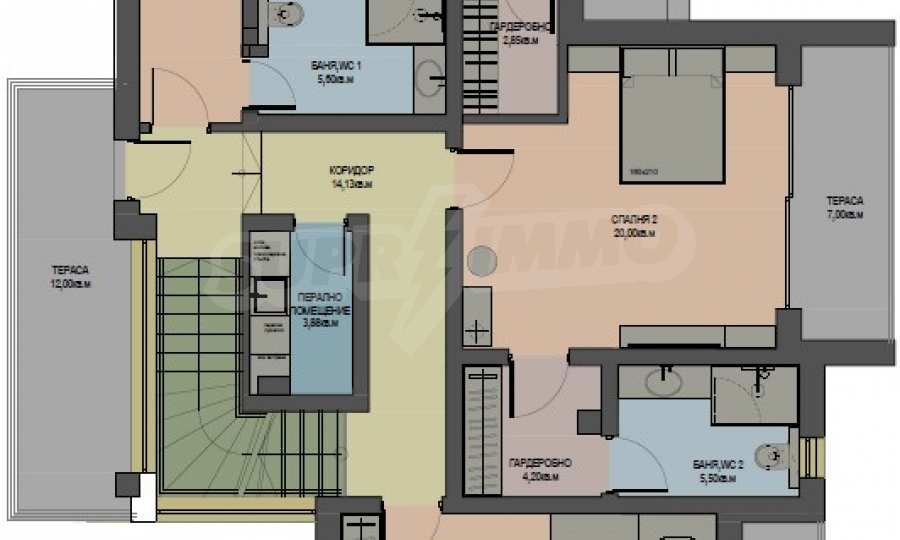 • bedroom - 16.2 sq.m + bathroom - 4.15 sq.m + terrace - 7 sq.m;