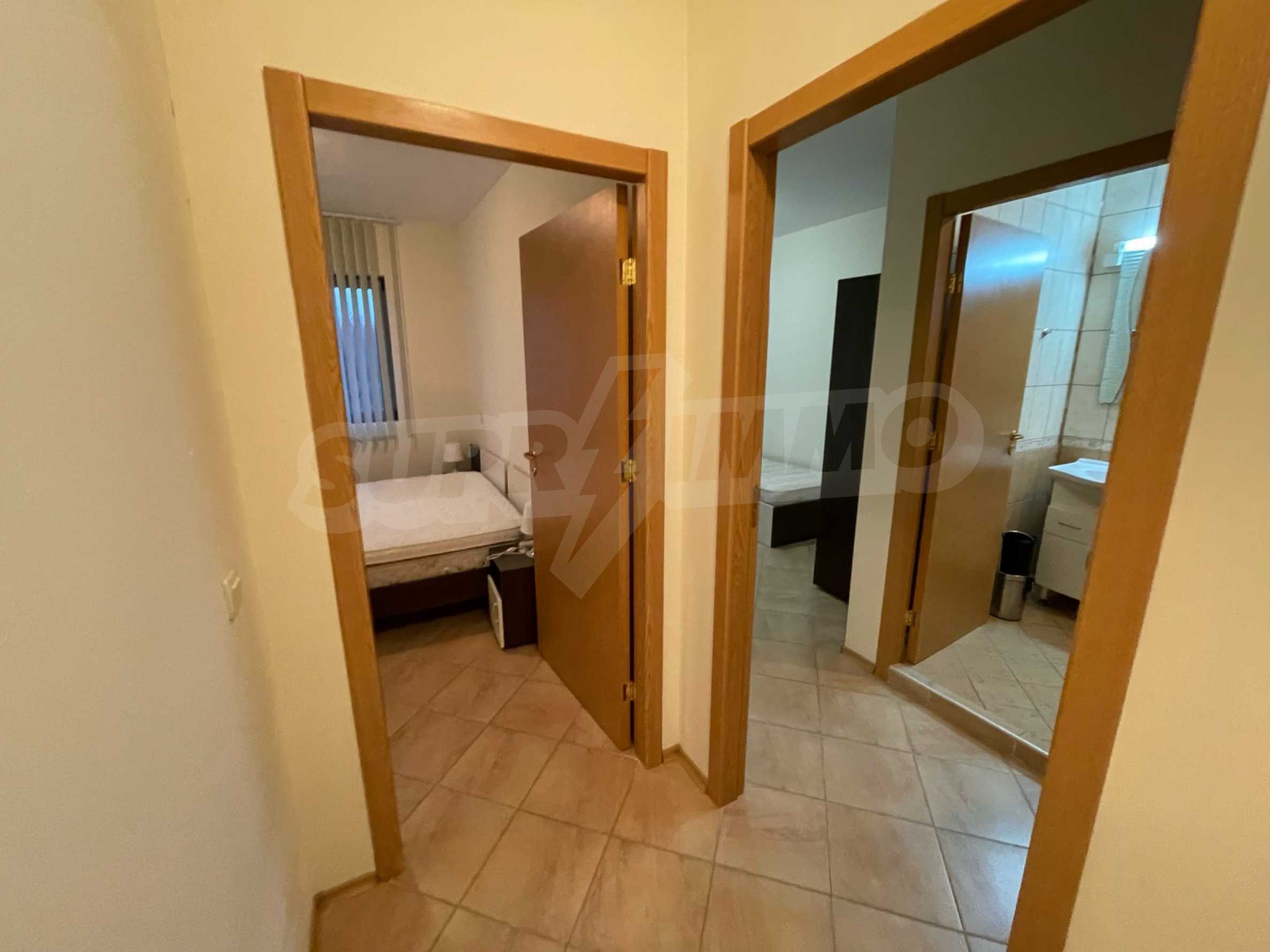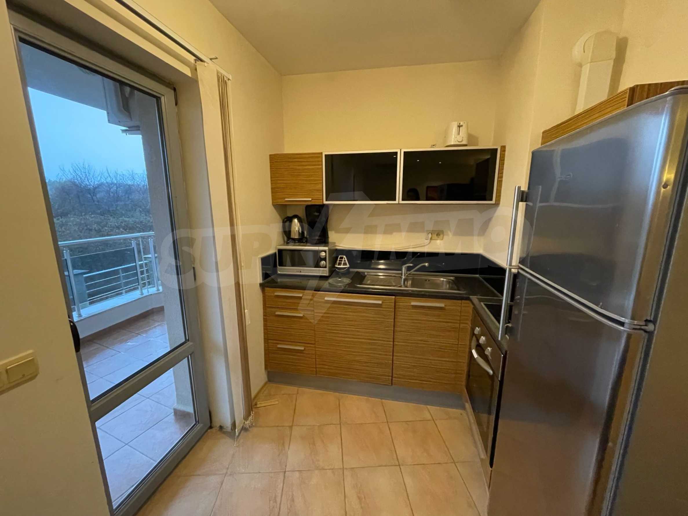 Комплекс находится в эксплуатации (согласно Акту 16), имеет закрытую территорию, бассейн, тренажерный зал, массажный салон (в летний период), сад и контролируемый доступ на территорию. Он расположен в нескольких минутах от моря, недалеко от древней крепости.