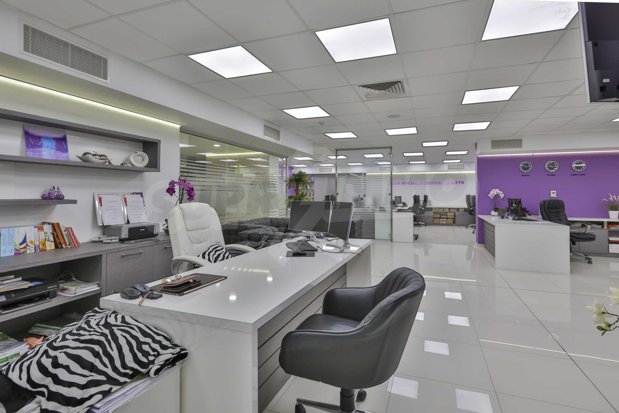 Недвижимость очень подходит для развития бизнеса в сфере информационных технологий. Он имеет общую площадь 395 квадратных метров, функционально разделен на два больших пространства, коридор с картинной галереей, ведущий в кабинет директора со столом для совещаний, который оборудован LED-телевизором для презентаций, библиотекой, живописью, гостевой зона и отдых. Также имеется оборудованная бухгалтерия с двумя рабочими местами, просторная кухня с меблировкую и техникой, 3 отдельных санузла с прихожей и серверная.