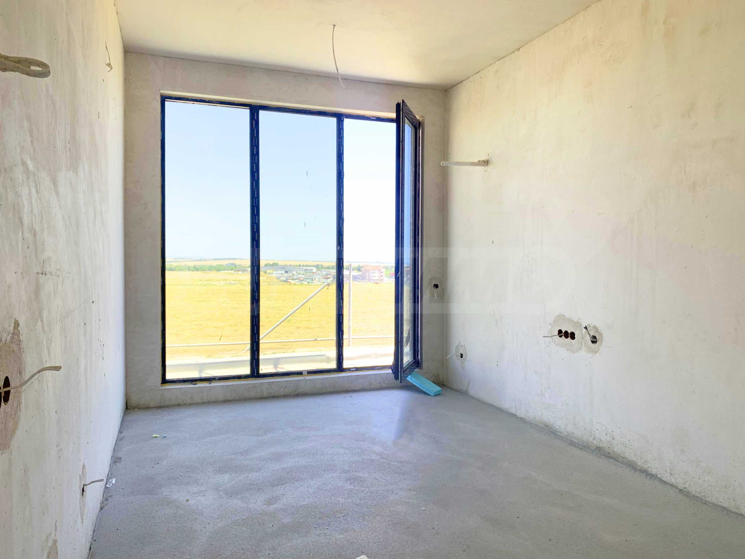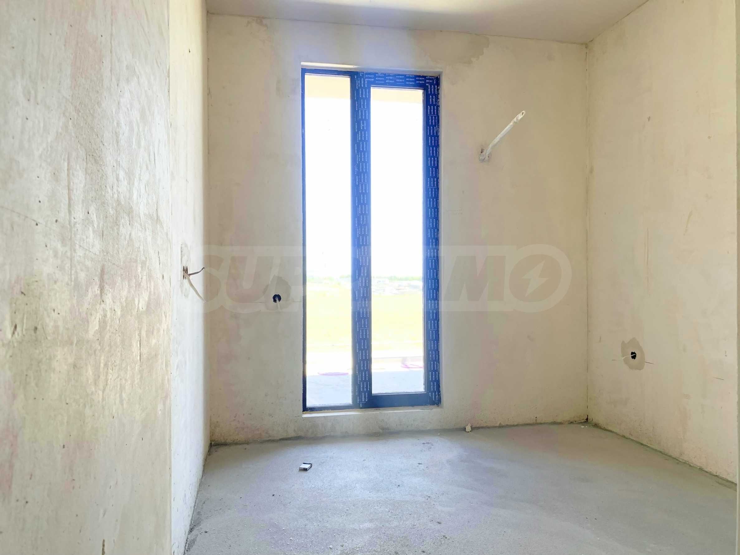 Квартира расположена на 8-м, верхнем этаже и предлагает прекрасный вид на обширные луга и море. Планировка непрерывная, включает в себя гостиную с кухней, отдельную спальню и общую террасу с ландшафтным дизайном. Есть ванная комната с туалетом и отдельная душевая. Комнаты имеют высоту 3,20 м и французские окна, что делает квартиру светлой и уютной. Степень готовности согласно БДС (штукатурка и стяжка), что дает возможность выбрать отделочные работы и дизайн будущего дома по своему вкусу и стилю.