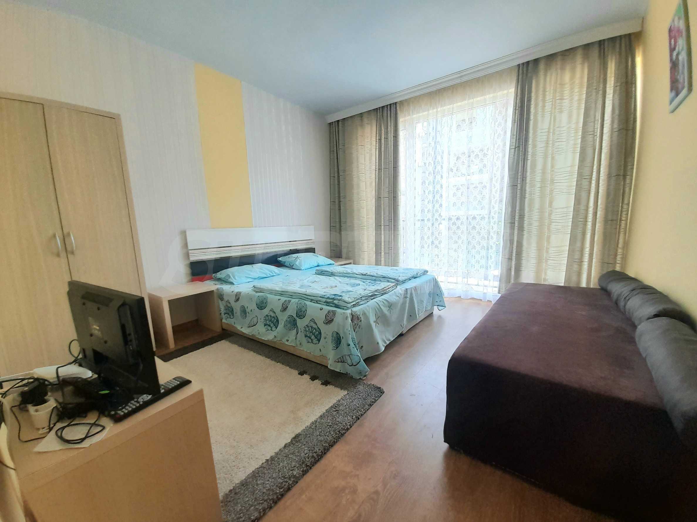 Предлагаем в аренду просторную трехкомнатную квартиру, часть популярного приморского комплекса с бассейном и удобствами, в нескольких минутах от пляжа на Солнечном Берегу.