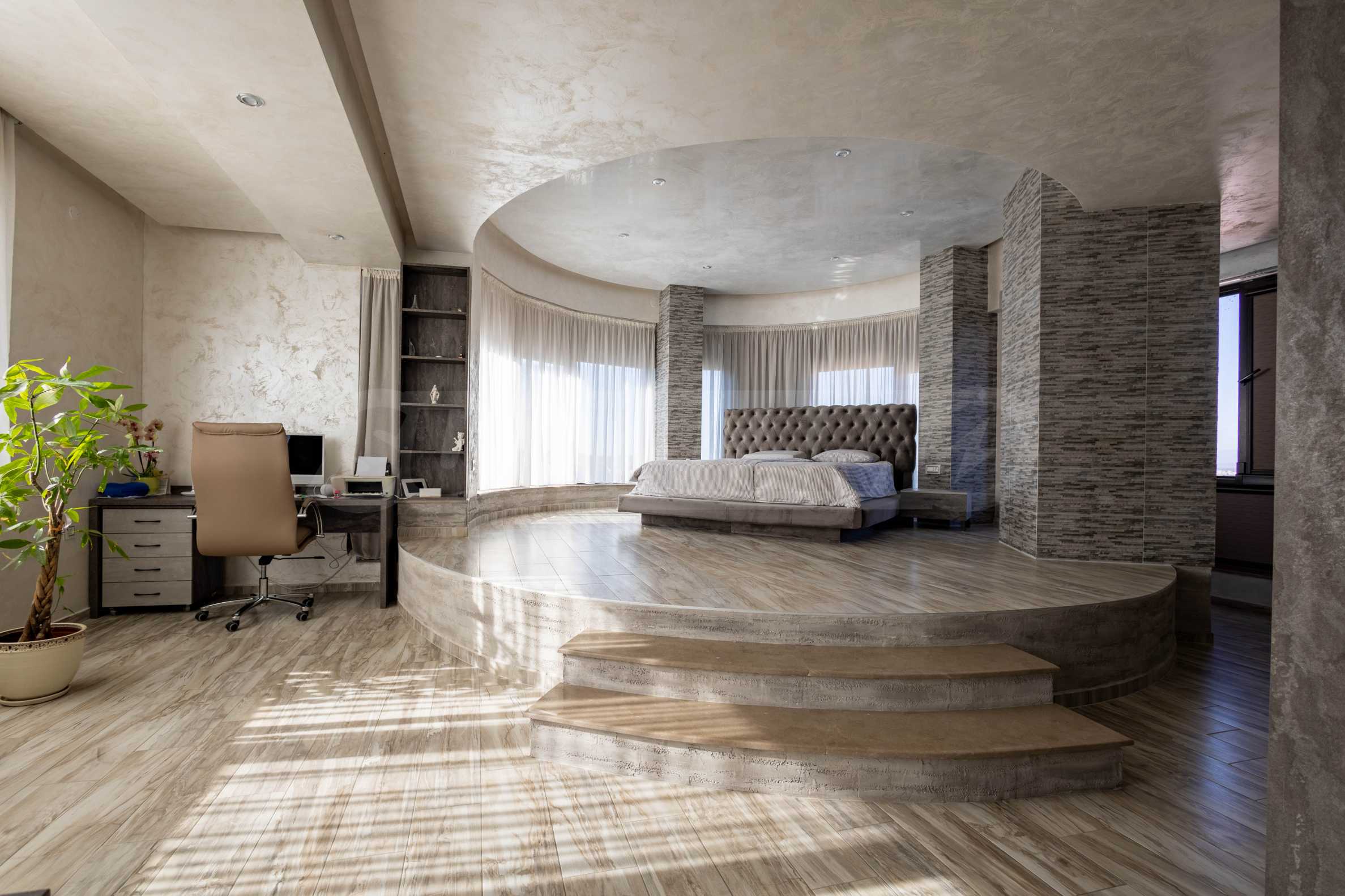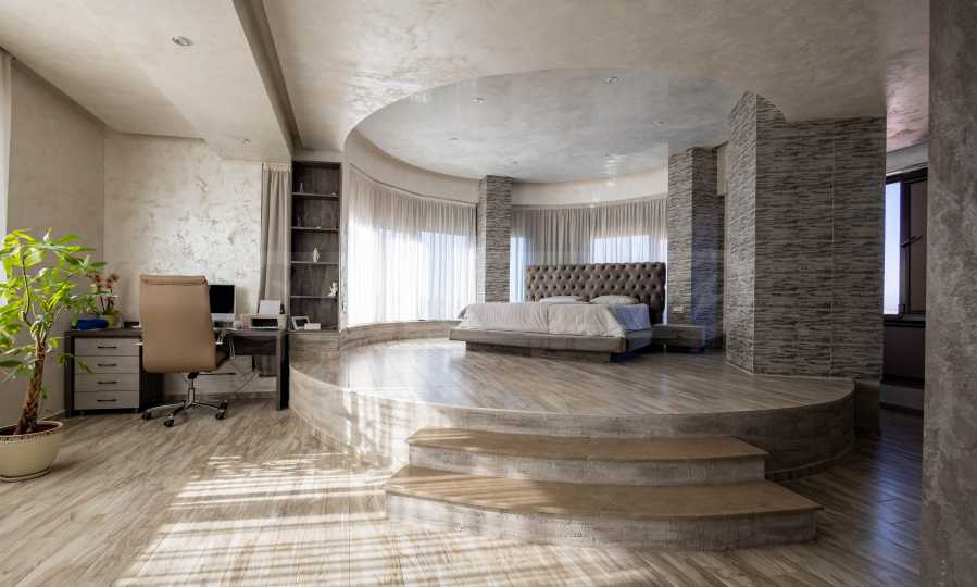 Продолжаем на третий этаж, где вы найдете настоящую master спальню. Здесь каждый день начинается на высоте! Просторная спальня включает огромную гардеробную и роскошную ванную комнату, расположенные на площади около 150 кв.м.