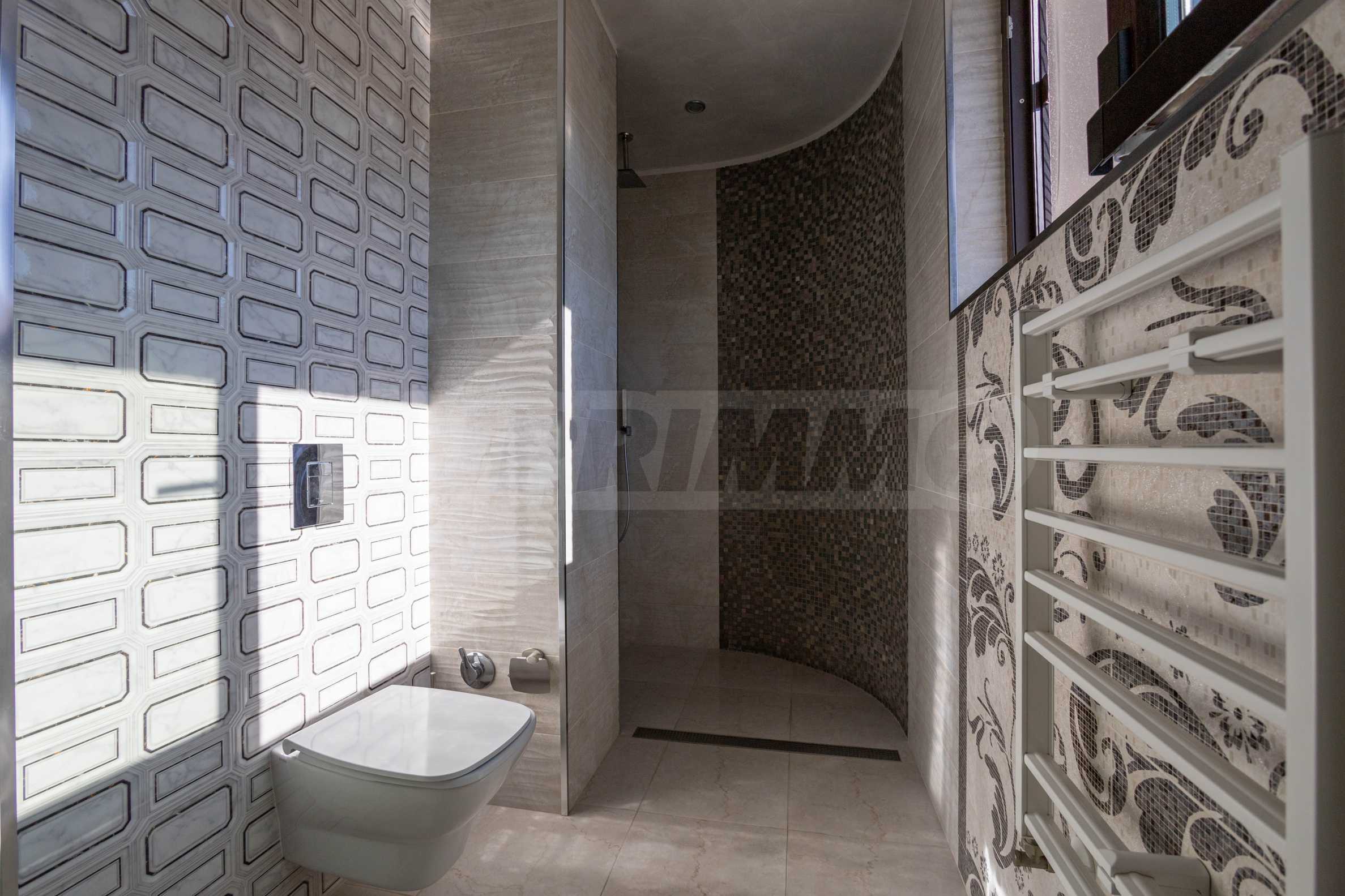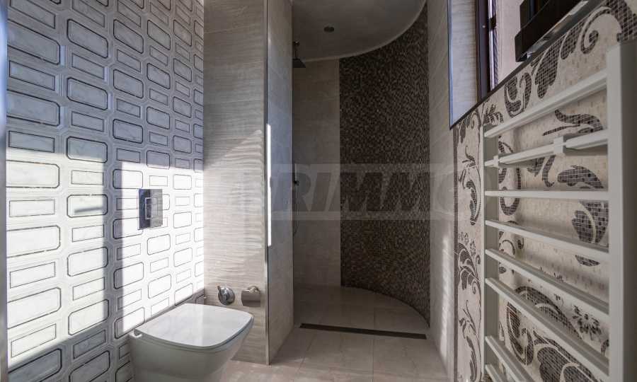 Дом построен и отделан с заботой и вниманием к деталям, использованы материалы высшего качества – камень, тик, гранит, оникс, венецианская штукатурка, ореховый паркет и кованое железо.