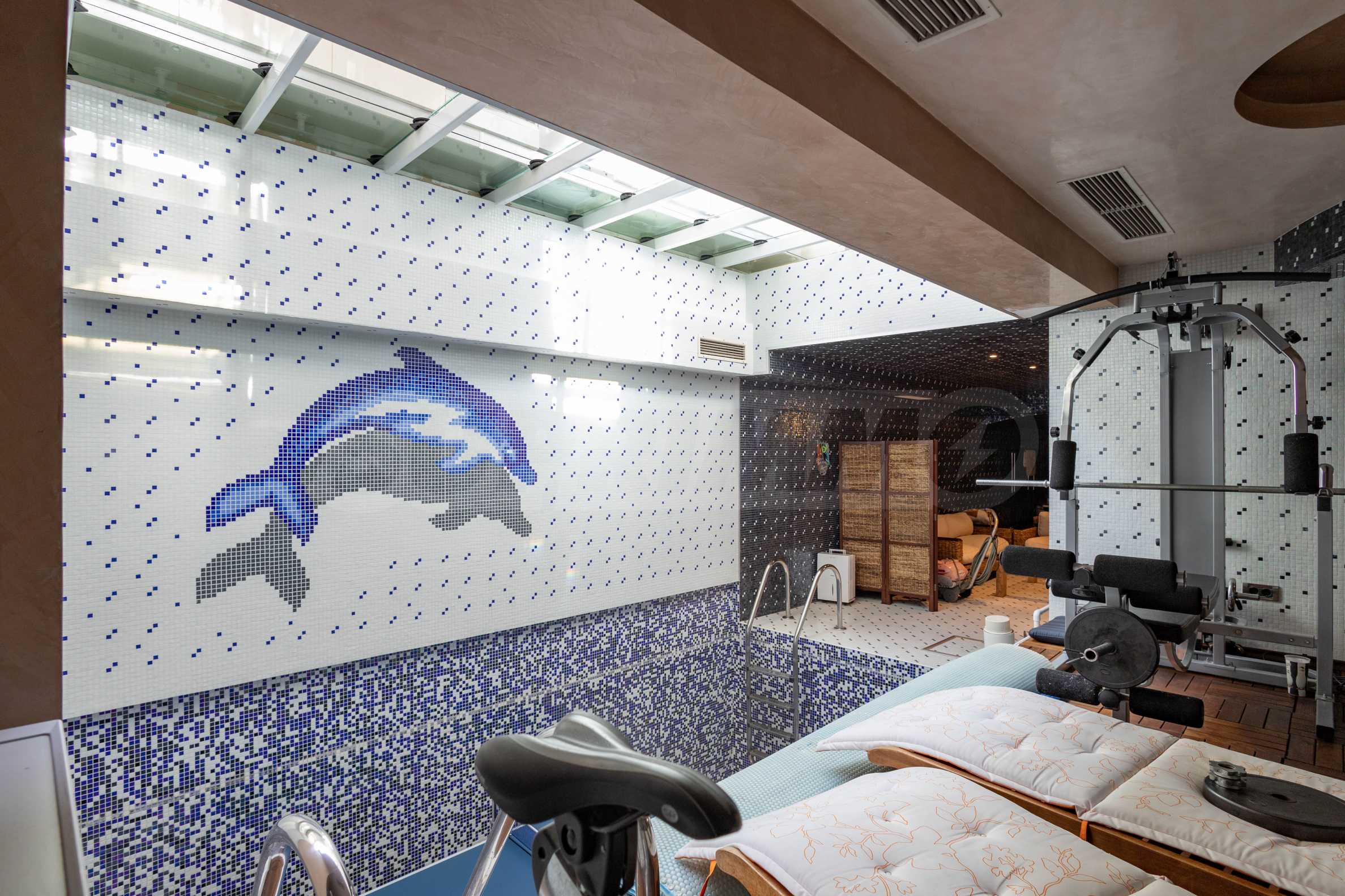 Настоящая роскошь этого дома находится на цокольном этаже – это роскошная SPA-зона, где вы найдете внутренний бассейн, сауну на 12 человек, выполненную из высококачественного кедра, большую джакузи, парную с уникальной мозаикой, солярий, тренажерный зал и две ванные комнаты. Это ваш личный оздоровительный и расслабляющий центр, где отдых – это не роскошь, а часть повседневной жизни.