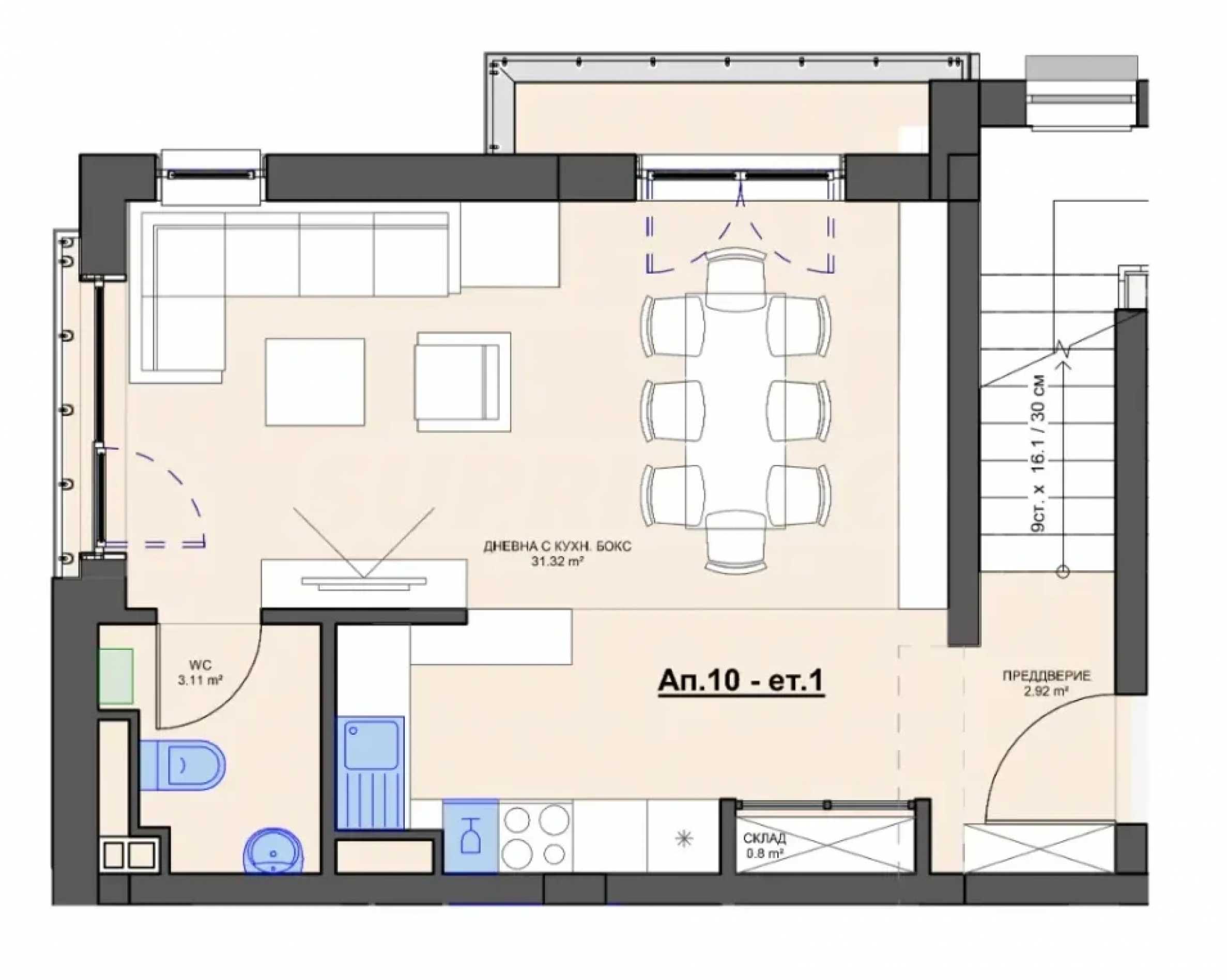 - Высококачественные ПВХ-окна с тройным остеклением;