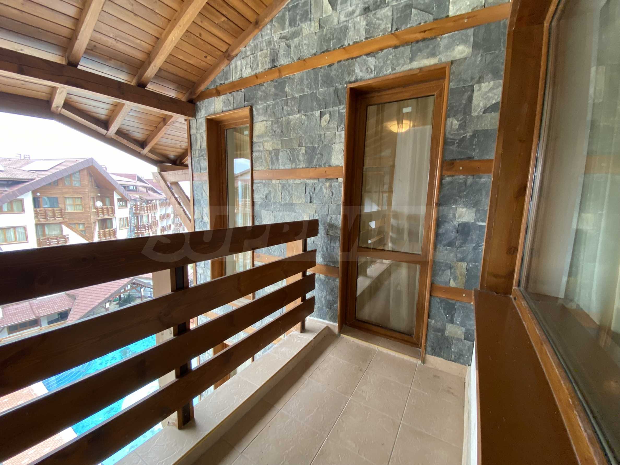 Общая терраса для обеих спален, окна выходят на запад, открывается вид на открытый бассейн.