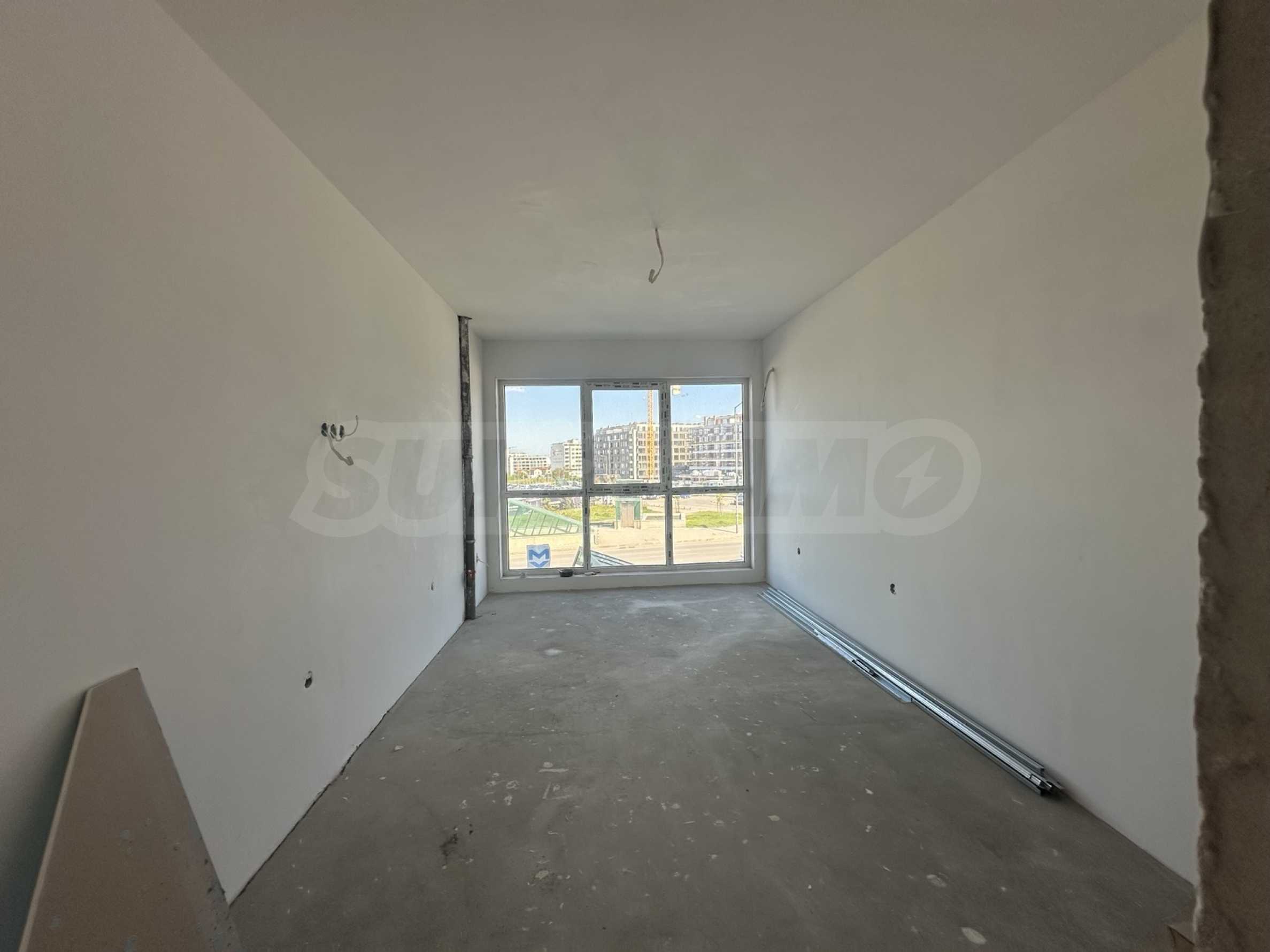 Квартира продается в состоянии, соответствующем болгарским строительным стандартам, с оштукатуренными стенами и стяжкой. Отопление газовое.