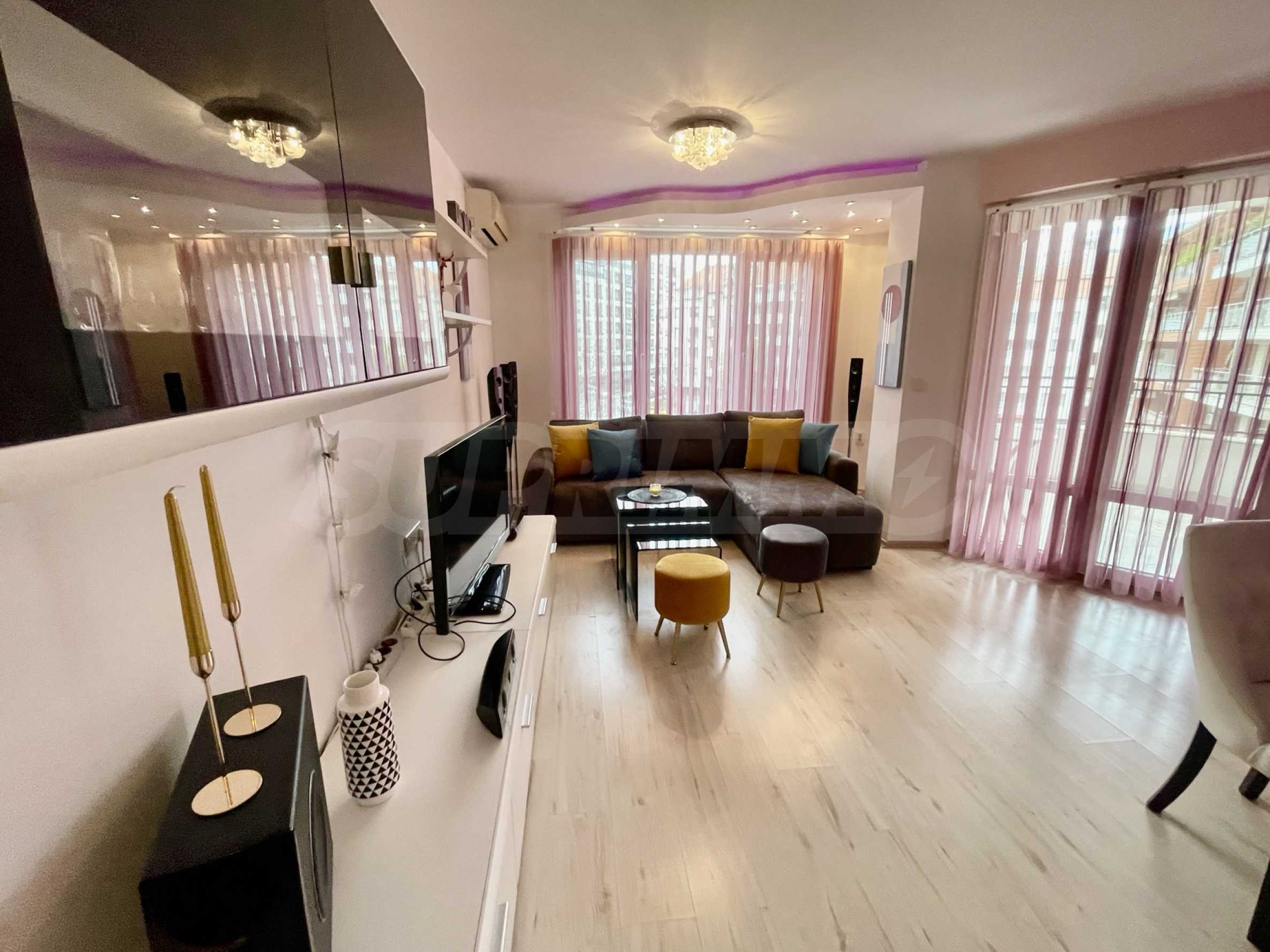 - Встроенная в потолок RGB-подсветка во всех комнатах;