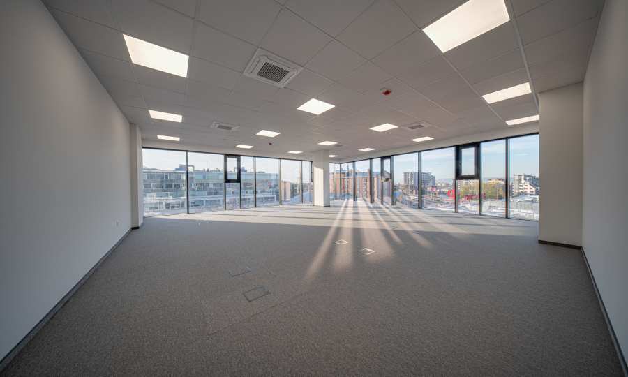 На каждом этаже расположены два офиса, которые можно объединять (исключение составляет офис № 1, занимающий весь первый этаж отдельно). Площадь отдельных помещений составляет от 159,14 до 259,65 кв. м. В каждом офисе есть два санузла и ниши для серверов, а в более крупных офисах также имеется отдельная кухня.