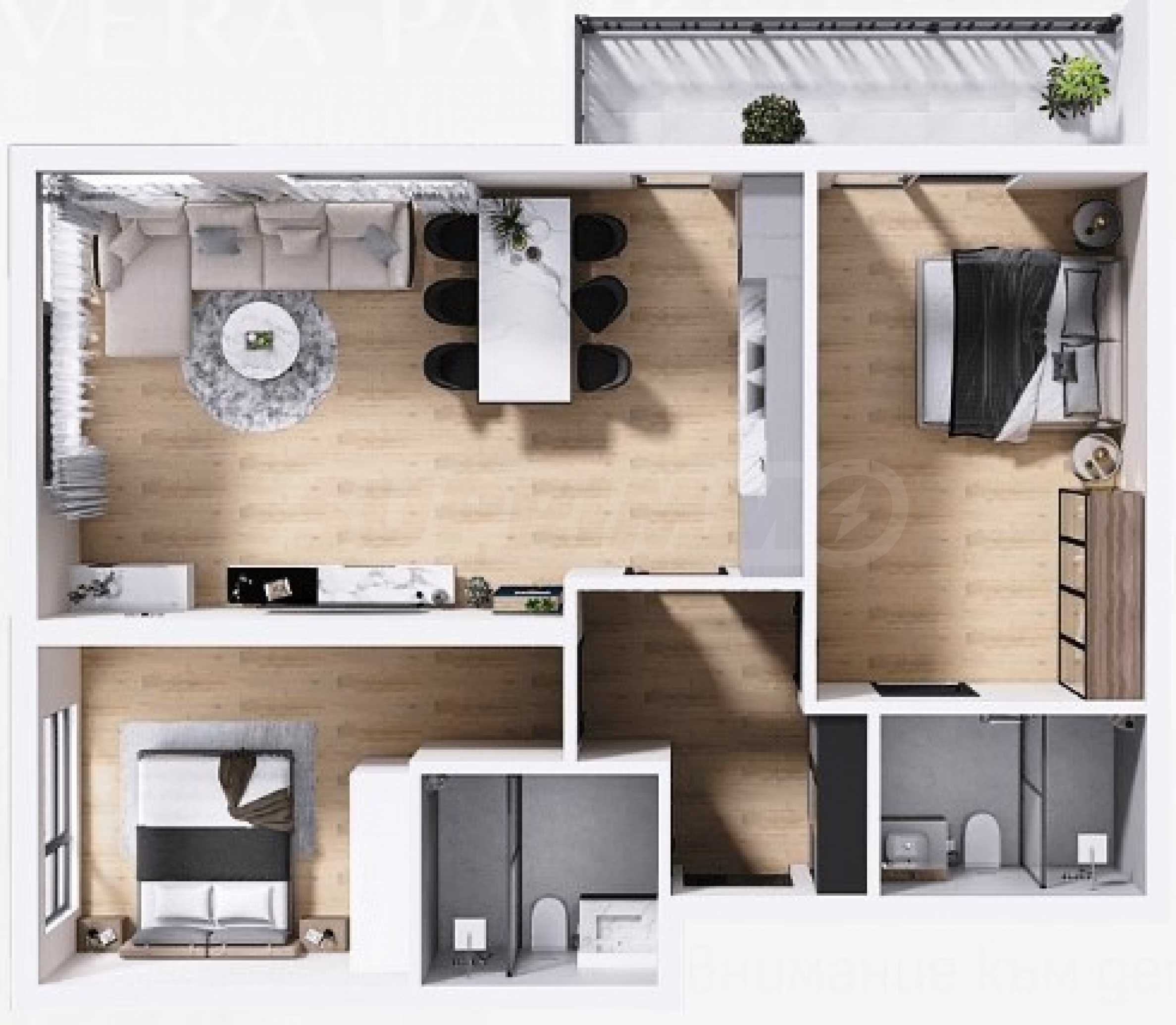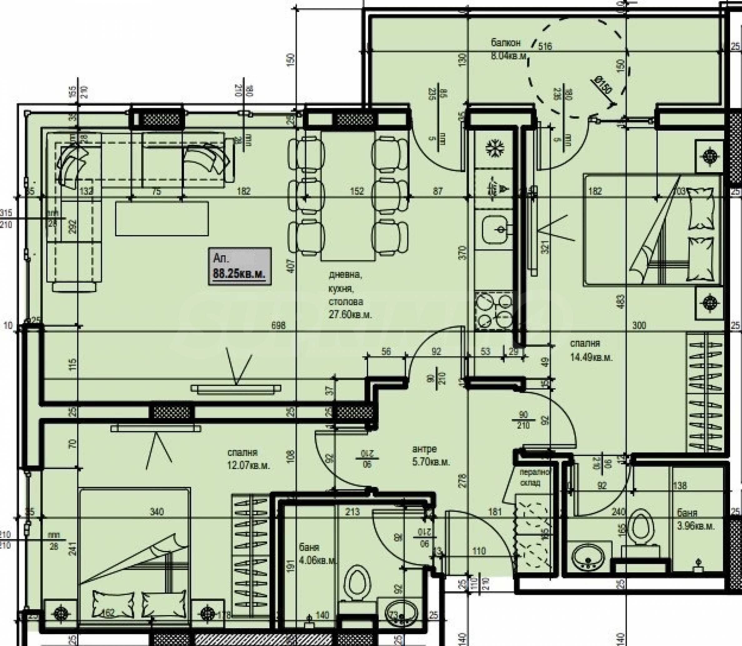 Представляем трехкомнатную квартиру в новом жилом комплексе в районе «Христо Смирненски». Отличное расположение в пешей доступности от Пловдивской гребной базы — одного из самых популярных мест для отдыха в выходные дни, а также от парка «Отдых и культура» — места, где можно отдохнуть от стрессов городской жизни. Рядом школы, детские сады, больницы, рестораны, спортзалы, супермаркет Lexi, остановки общественного транспорта и т. д. Торговый центр «Пловдив» находится в 6 минутах езды на автомобиле, но также удобно расположен общественный транспорт, который доставит вас в торговый центр за короткое время. Быстрый доступ к Кольцевой дороге, позволяющей выехать на трассу «Тракия» и добраться до самых отдаленных уголков города, избегая городских пробок.