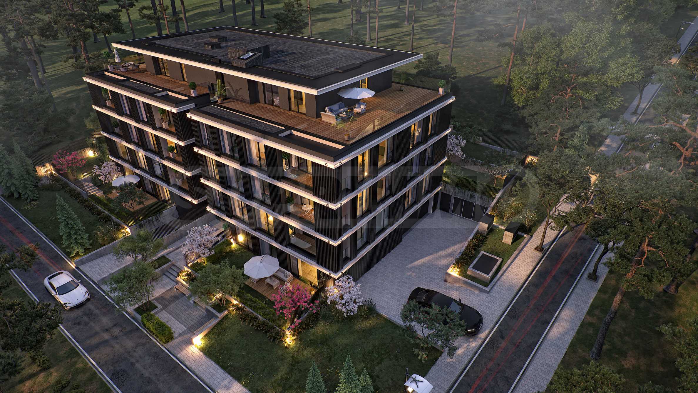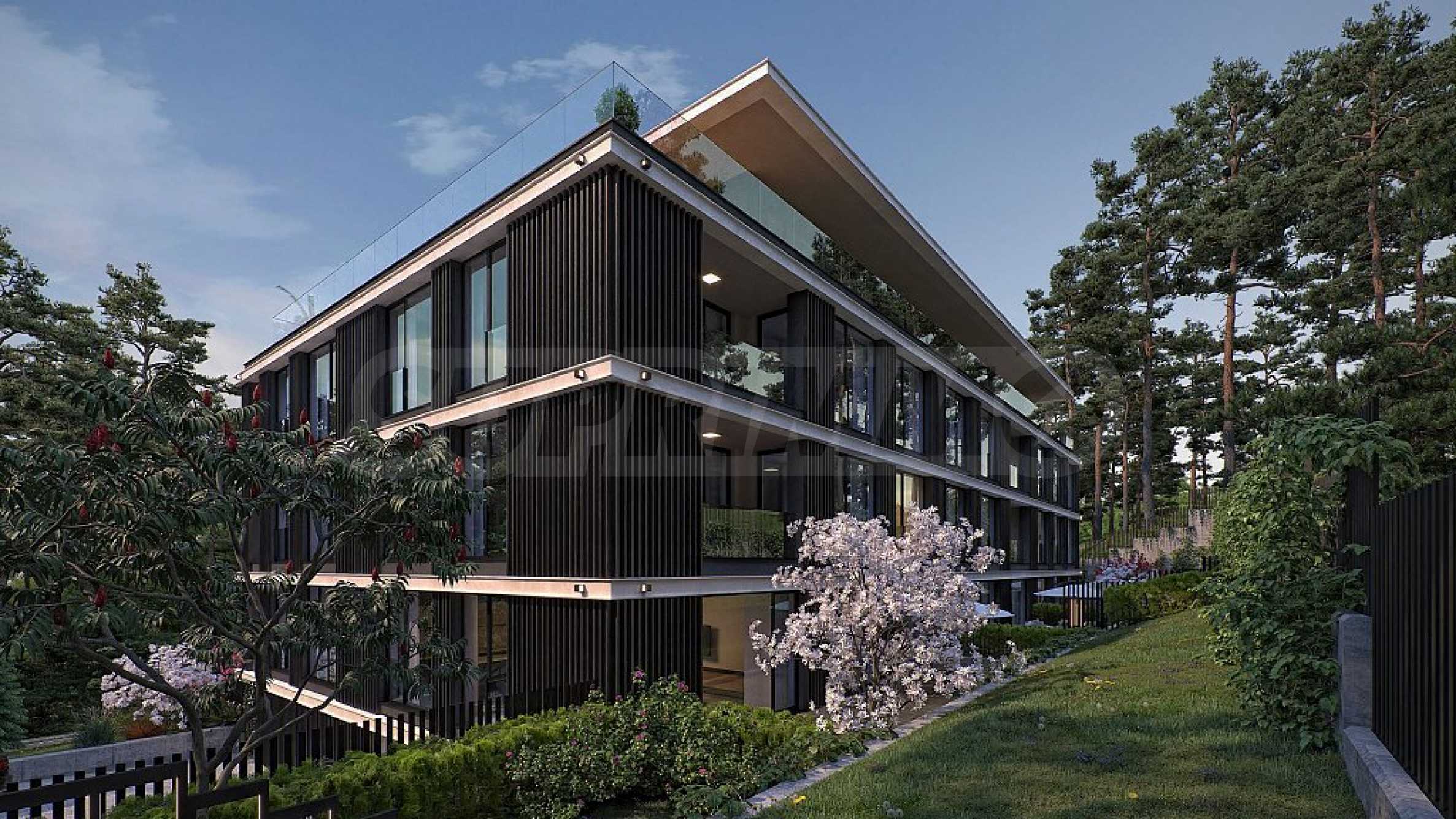 Квартиры включают три спальни и одну четырехкомнатную. По данным BDS, они предлагаются в частично готовом виде. Из окон квартир открывается вид на озеро или живописный сосновый лес за зданием, поскольку территория полностью окружена зеленью и уже застроена пригодными для проживания домами, без риска строительства в будущем поблизости.