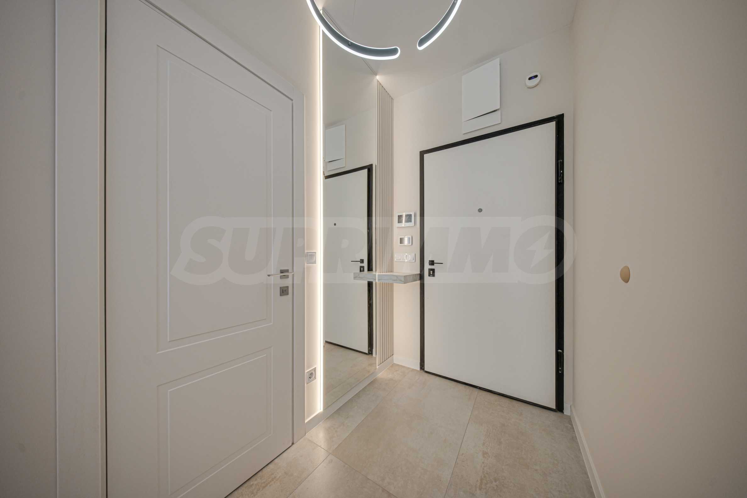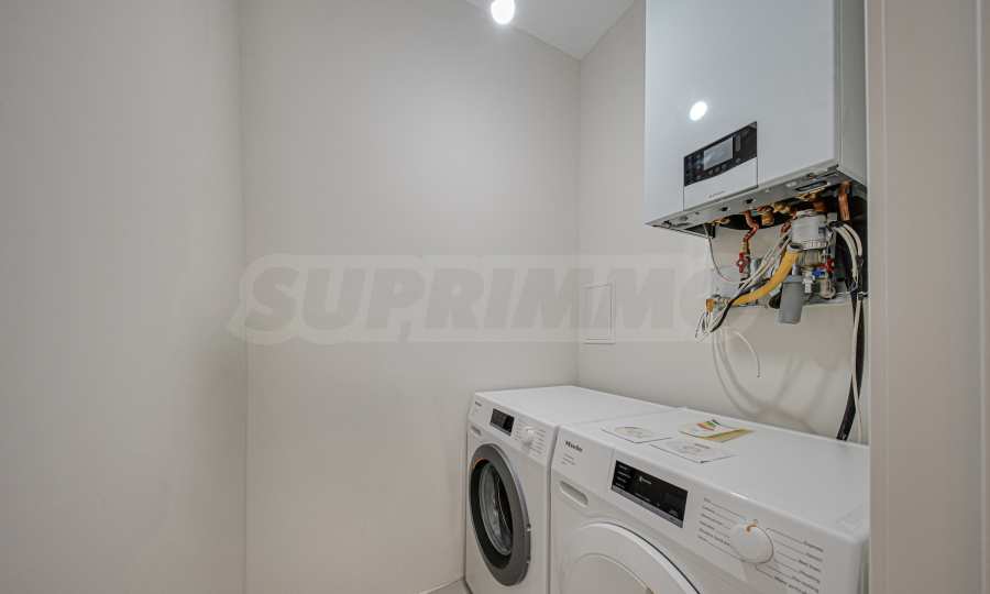 Квартира площадью 101 кв. м расположена на 2 этаже, откуда открывается панорамный вид на город и гору Витоша. Квартира светлая, с современным дизайном и интерьером с чистыми линиями. Большие окна создают ощущение простора и обилия света, а качественные материалы и изысканная меблировку — уюта и элегантности.
