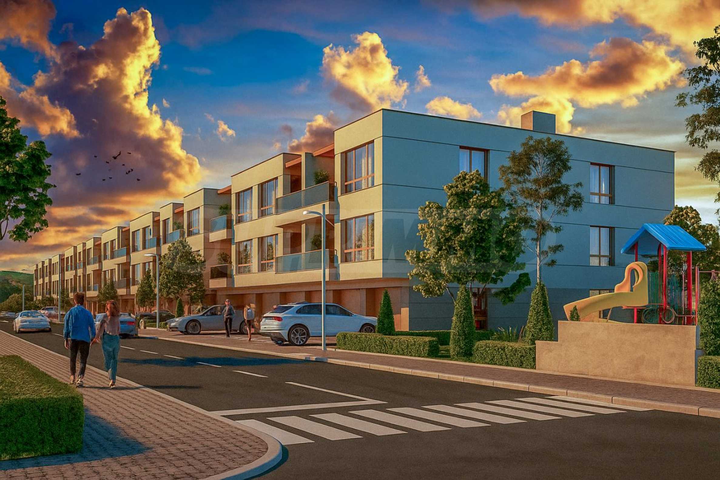 В этом районе расположены невысокие здания, что позволяет из каждой квартиры любоваться прекрасным панорамным видом на Родопские горы.