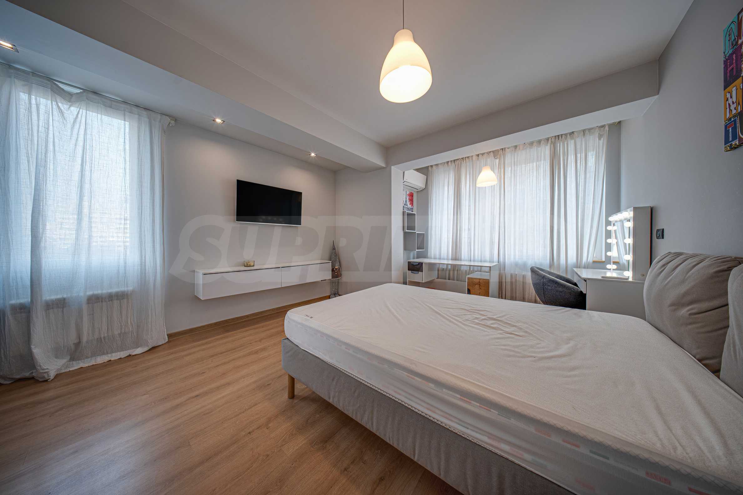 Просторная квартира с современной меблировкую в районе «Стрелбище» на улице Златни Врата, недалеко от улицы Нишава. Здание введено в эксплуатацию в 2009 году, имеется собственный двор. Недвижимость расположена в удобном месте с отличной транспортной доступностью и в непосредственной близости от Южного парка. Главные транспортные артерии района — бульвары Петко Ю. Тодорова, Болгария и акад. Ивана Гешова. Район хорошо развит, все удобства находятся в пешей доступности.