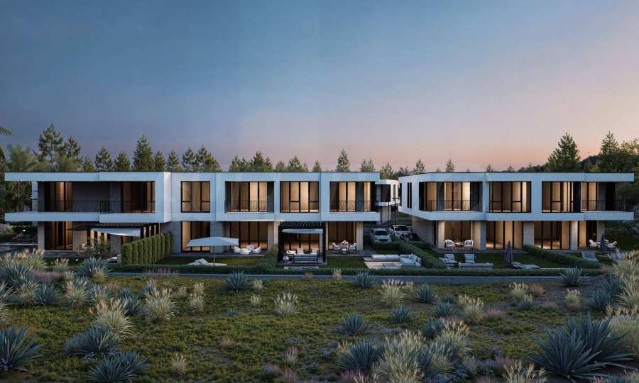 В комплексе запроектировано 39 двухэтажных домов общей площадью от 165 м2. до 204 м2., собственный двор площадью от 175 м2. до 211 м2. На территории полностью развитая инфраструктура, асфальтированные улицы, тротуары и уличное освещение, видеонаблюдение мест общего пользования, интернет-модуль для удаленного управления доступом через индивидуальный доступ с кодом для каждого владельца.