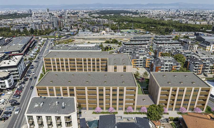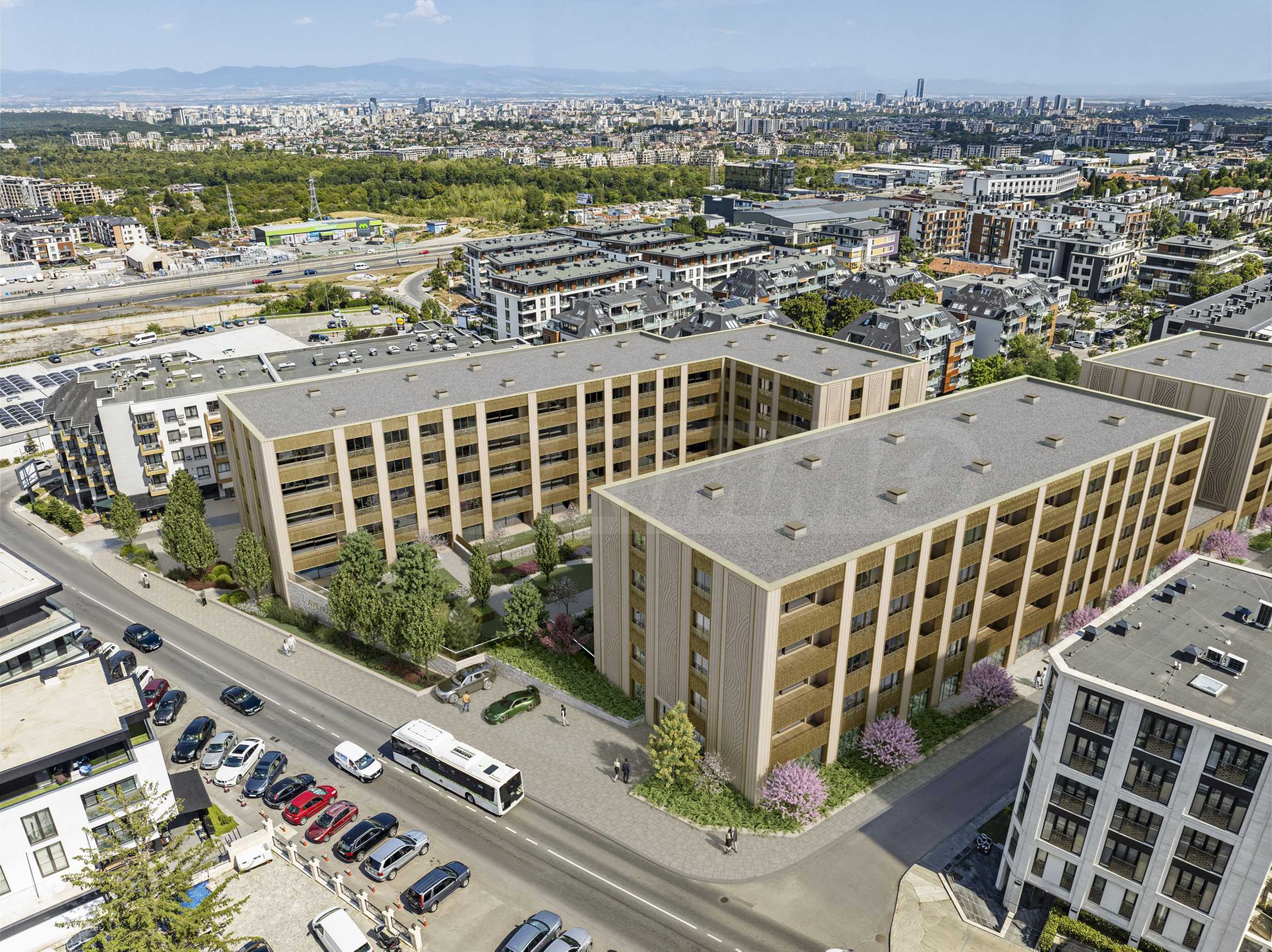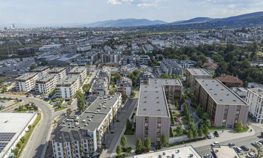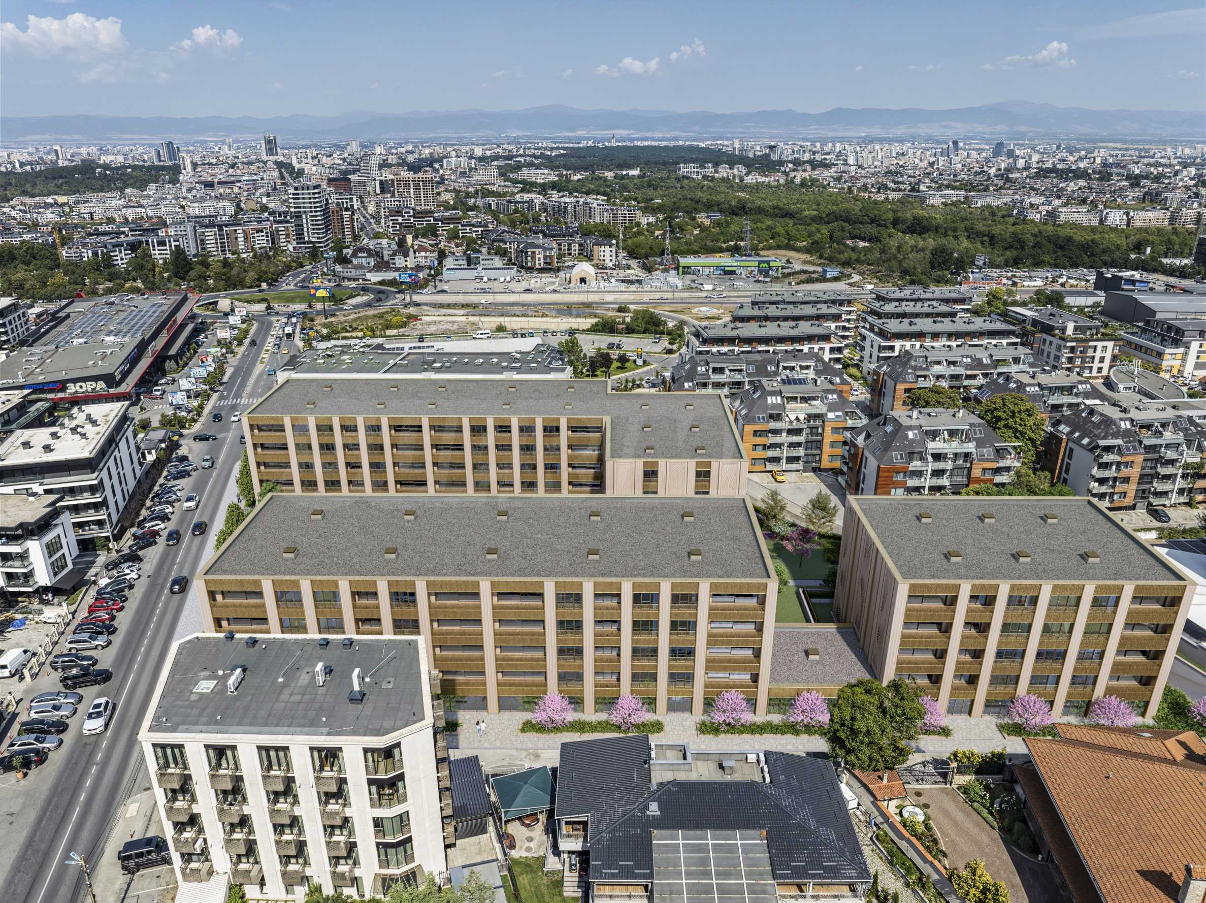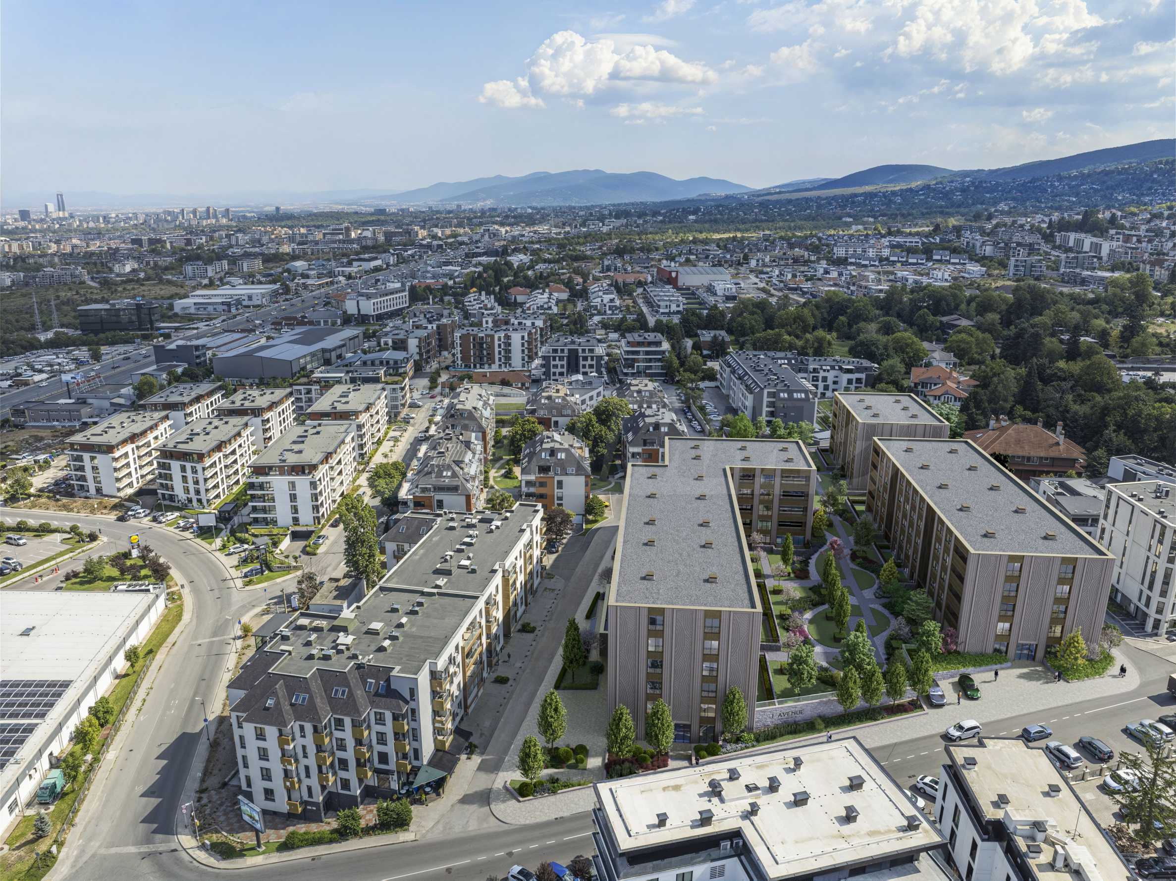Этот район предлагает идеальный баланс между городским комфортом и спокойствием, а расположение комплекса обеспечивает панорамный вид на гору Витоша и центр Софии.
