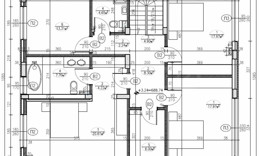 • Второй этаж организован как ночлежная зона и включает три спальни площадью 18 кв. м, 18 кв. м и 25 кв. м, при этом главная спальня имеет отдельную ванную комнату. Кроме того, предусмотрены вторая ванная комната, кабинет площадью 14 кв. м (возможность обустройства гостевой спальни), прачечная, коридор и лестница. Все жилые помещения ориентированы на юг, восток и запад.