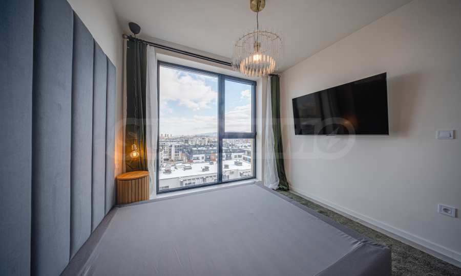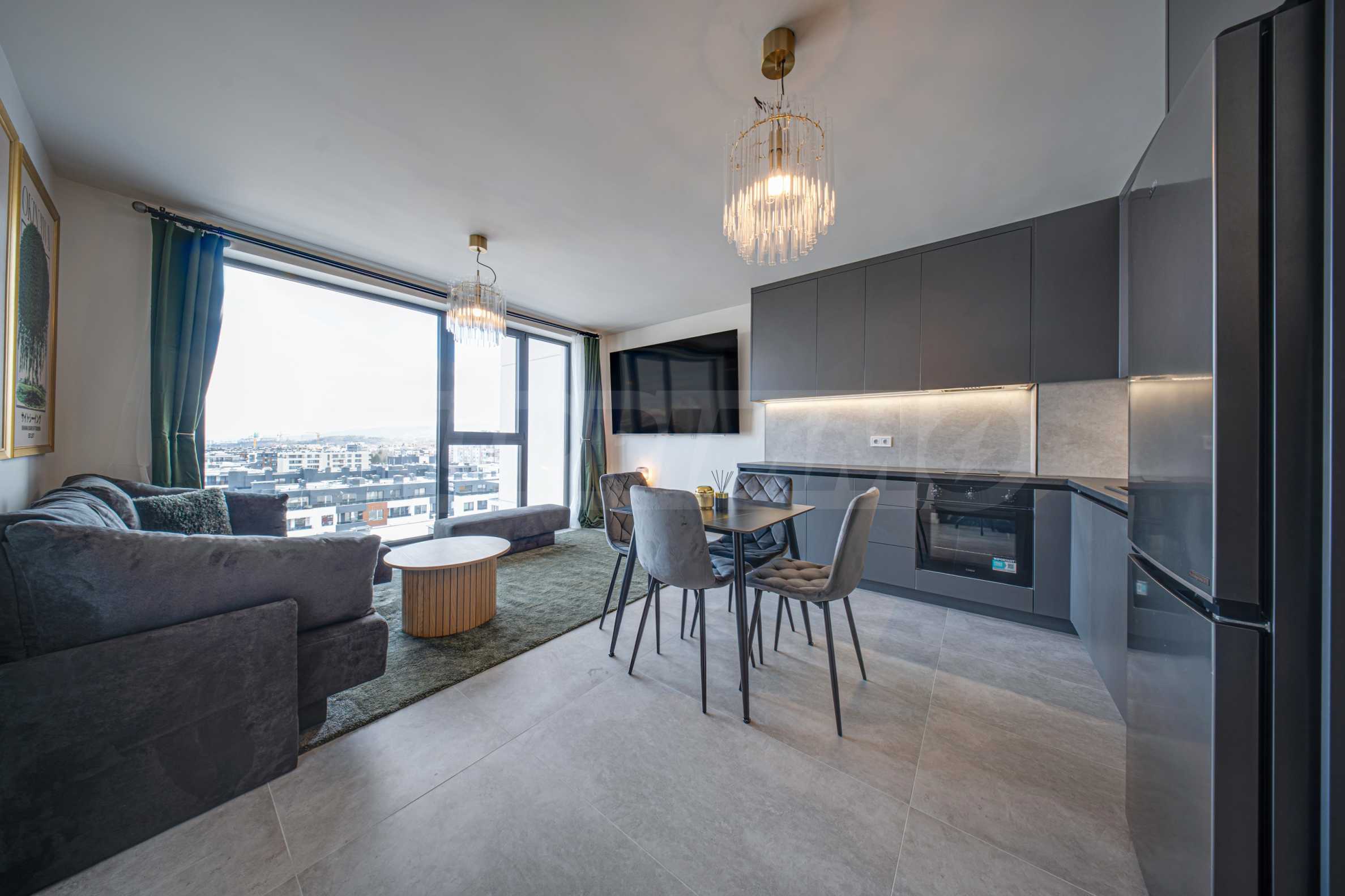 Квартира, отличающаяся современным и художественным дизайном, впечатляет уютом и комфортом, стильной меблировкую, обилием естественного света в комнатах и великолепным панорамным видом на город.