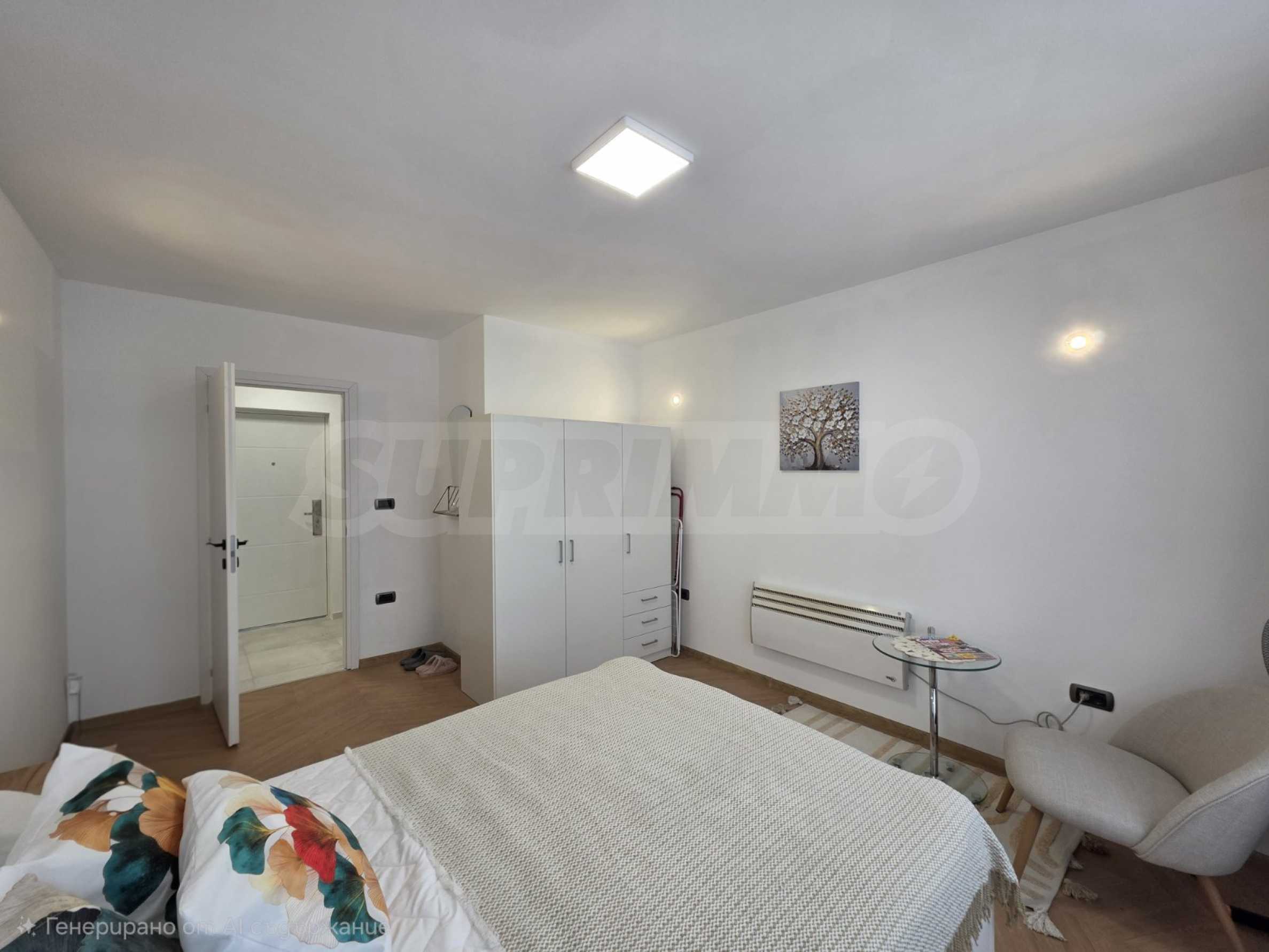 Спальня с кроватью с матрасом и шкафом;