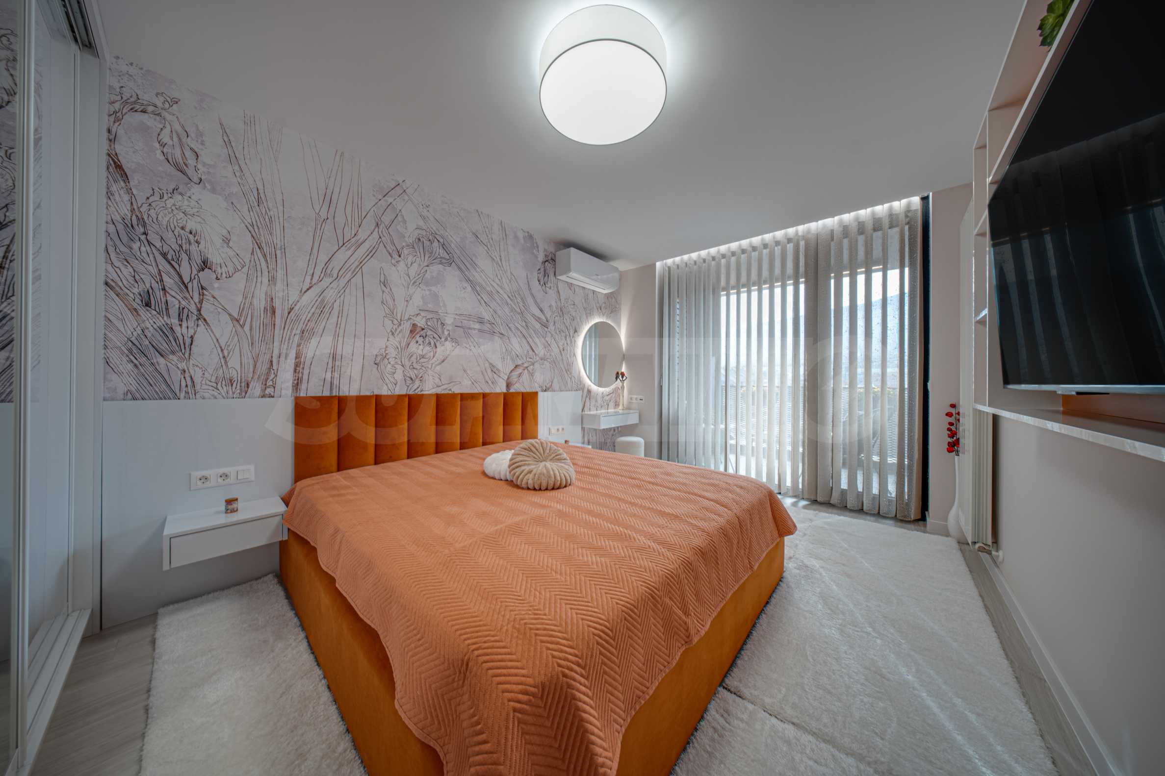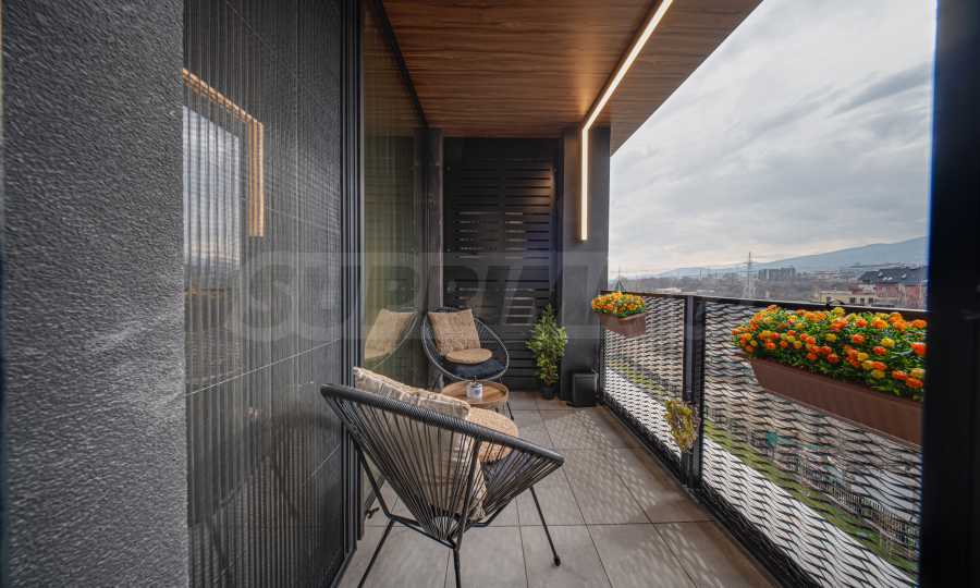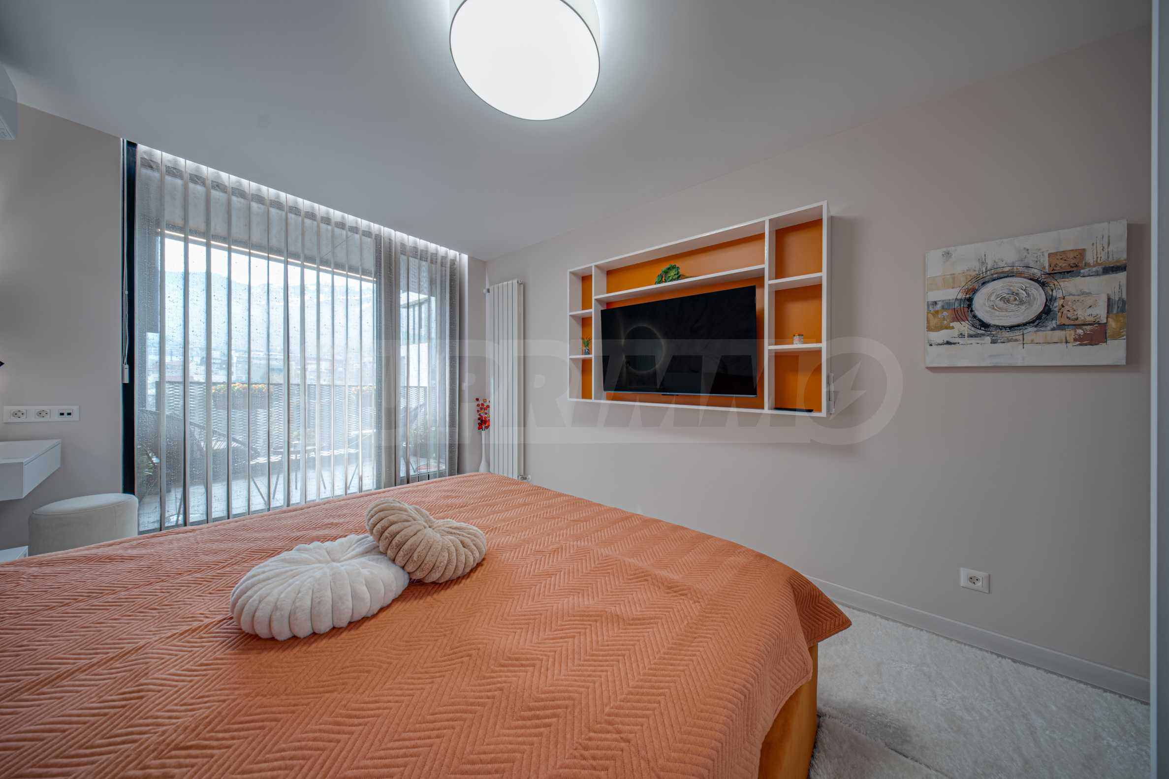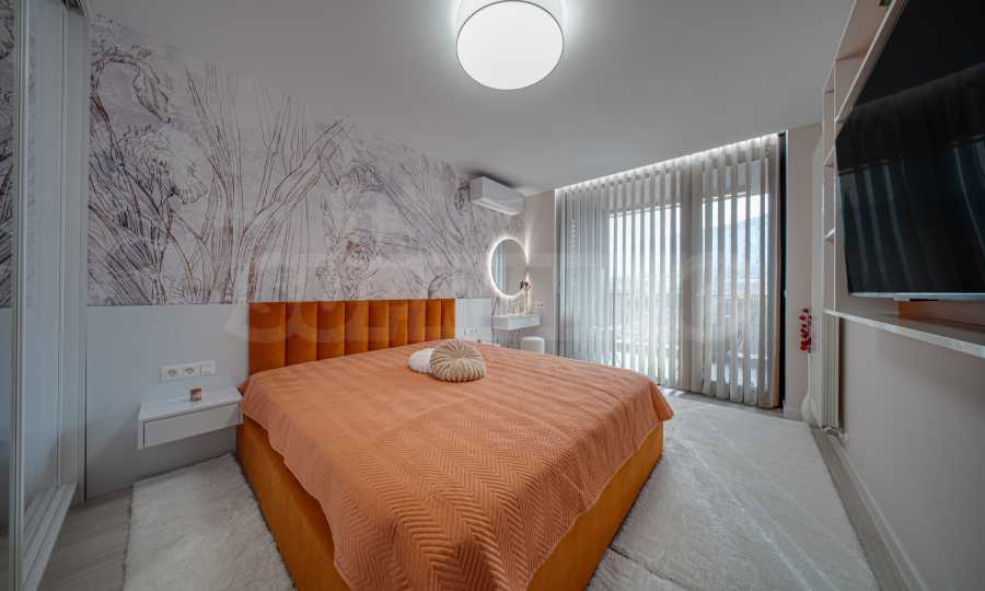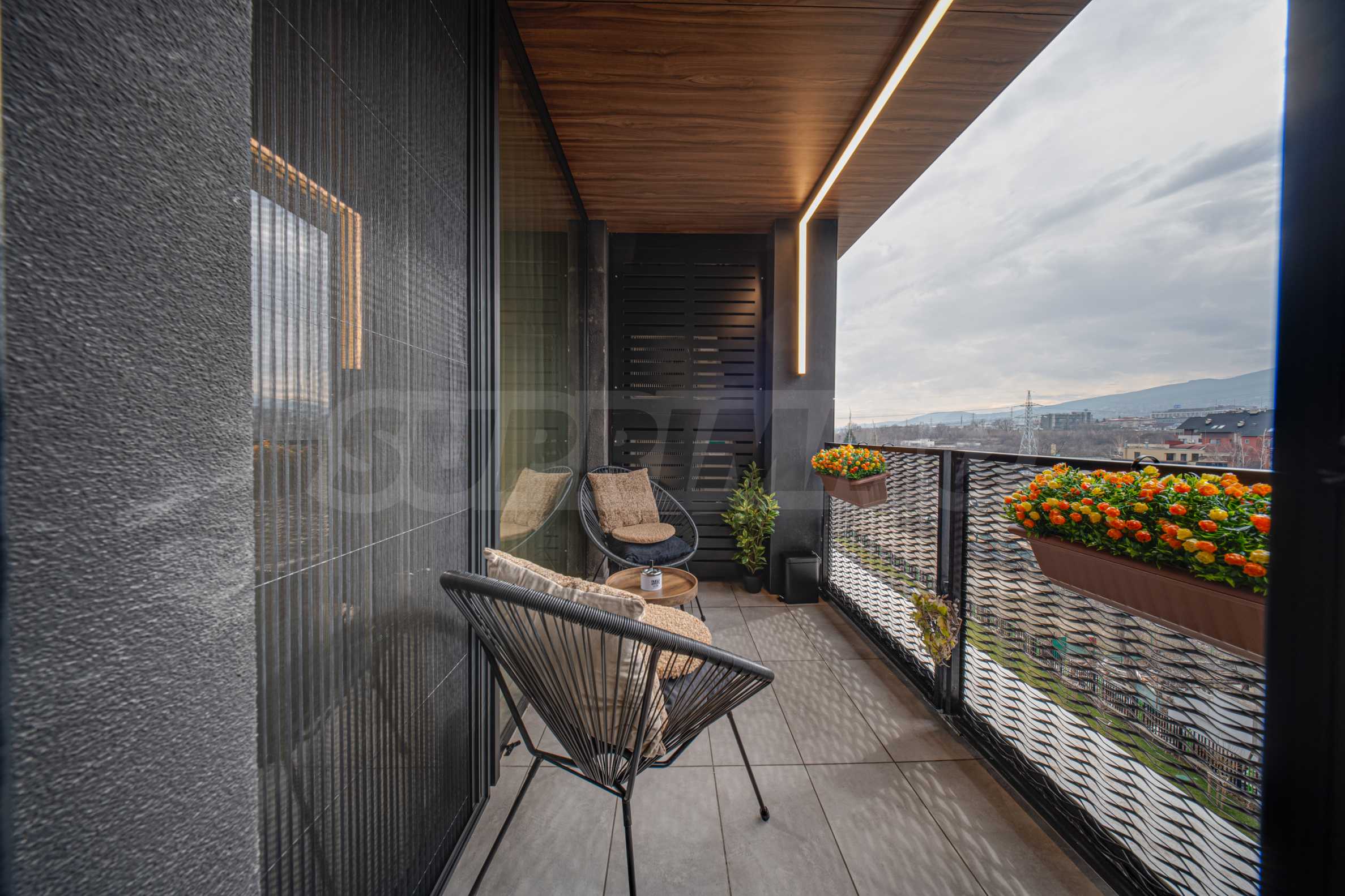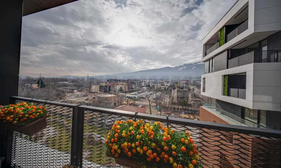 Квартира расположена на 7-м этаже, полностью ориентирована на юг и имеет вид на гору Витоша и внутренний двор комплекса. Квартира новая, обставлена высококачественной меблировкую и бытовой техникой, подобранной с вниманием к деталям и комфорту.