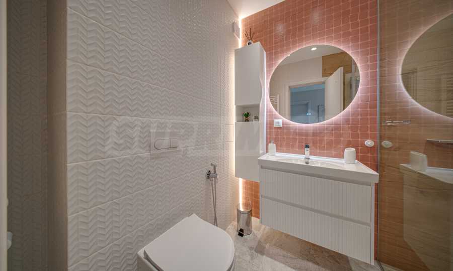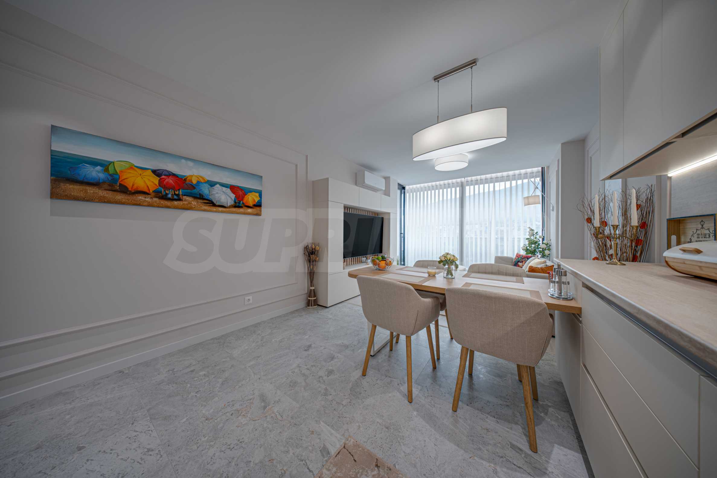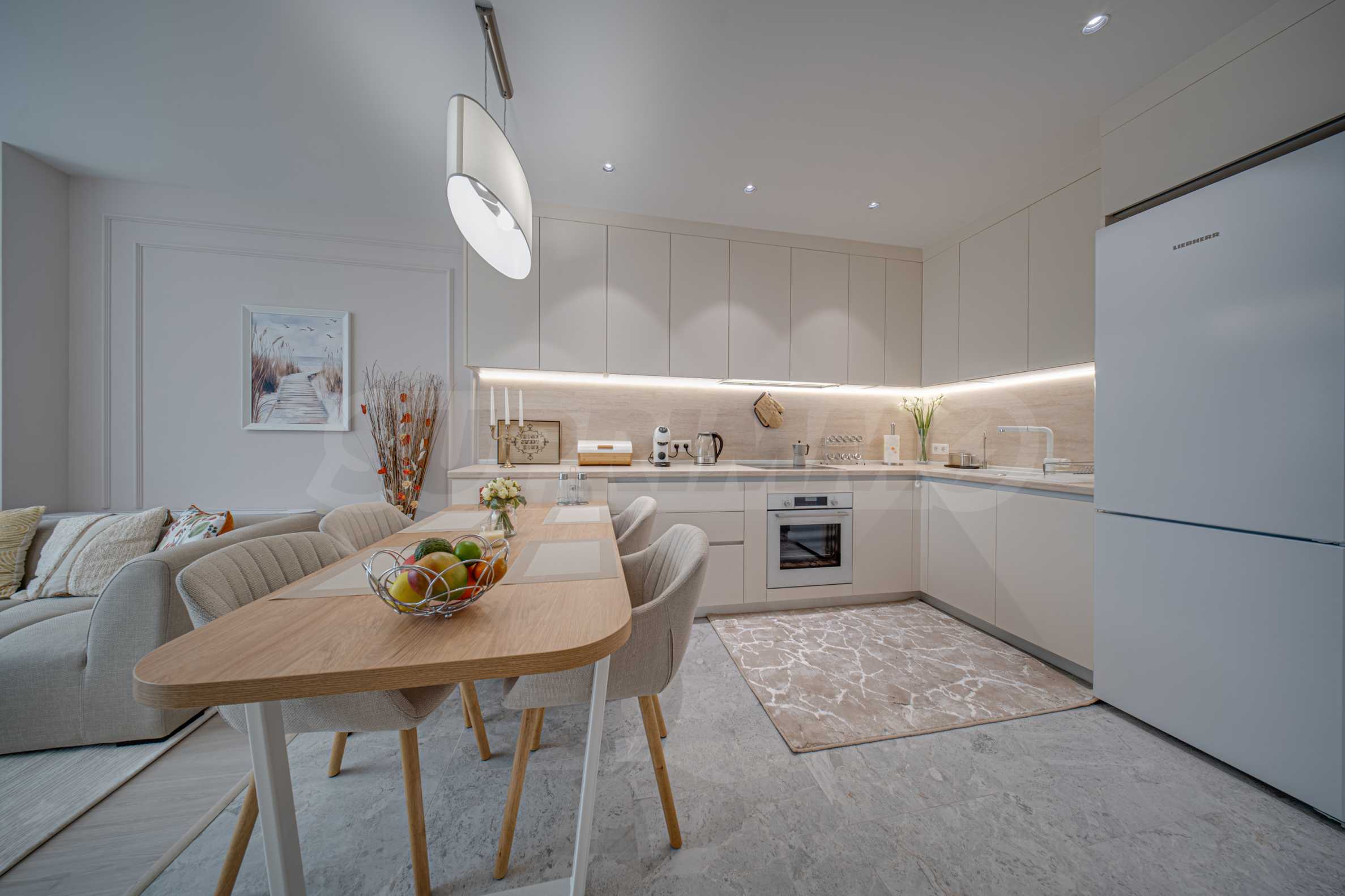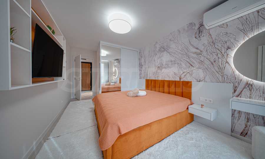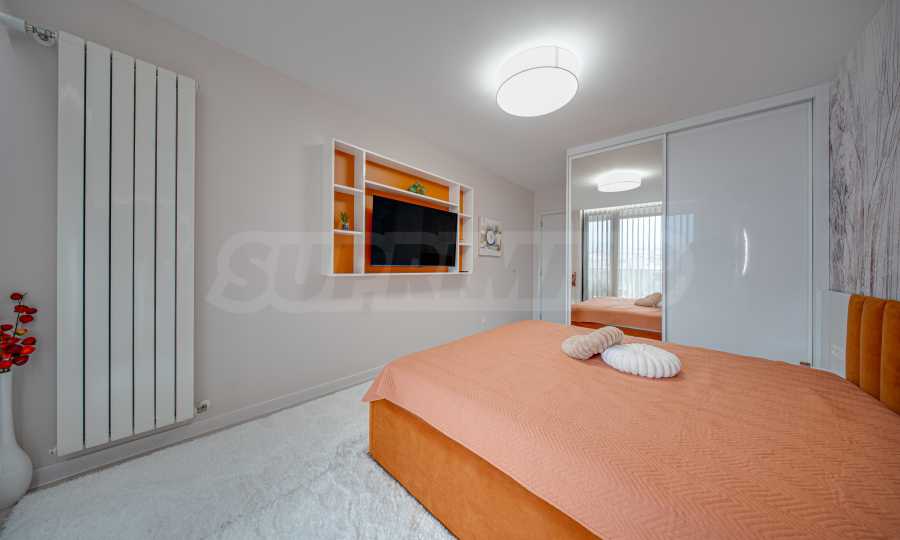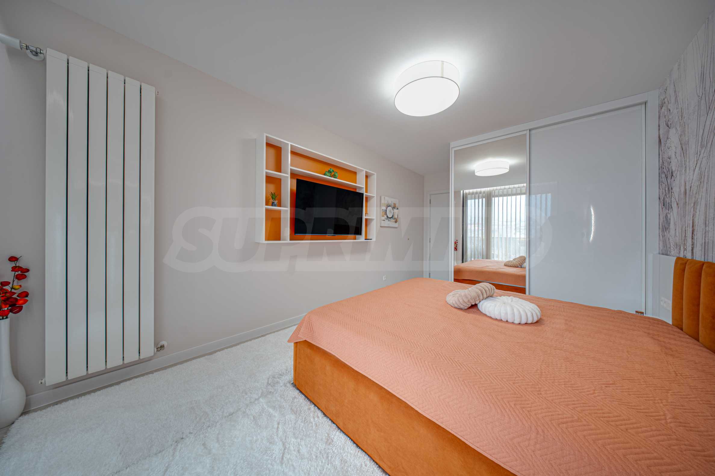Квартира расположена на 7-м этаже, полностью ориентирована на юг и имеет вид на гору Витоша и внутренний двор комплекса. Квартира новая, обставлена высококачественной меблировкую и бытовой техникой, подобранной с вниманием к деталям и комфорту.
