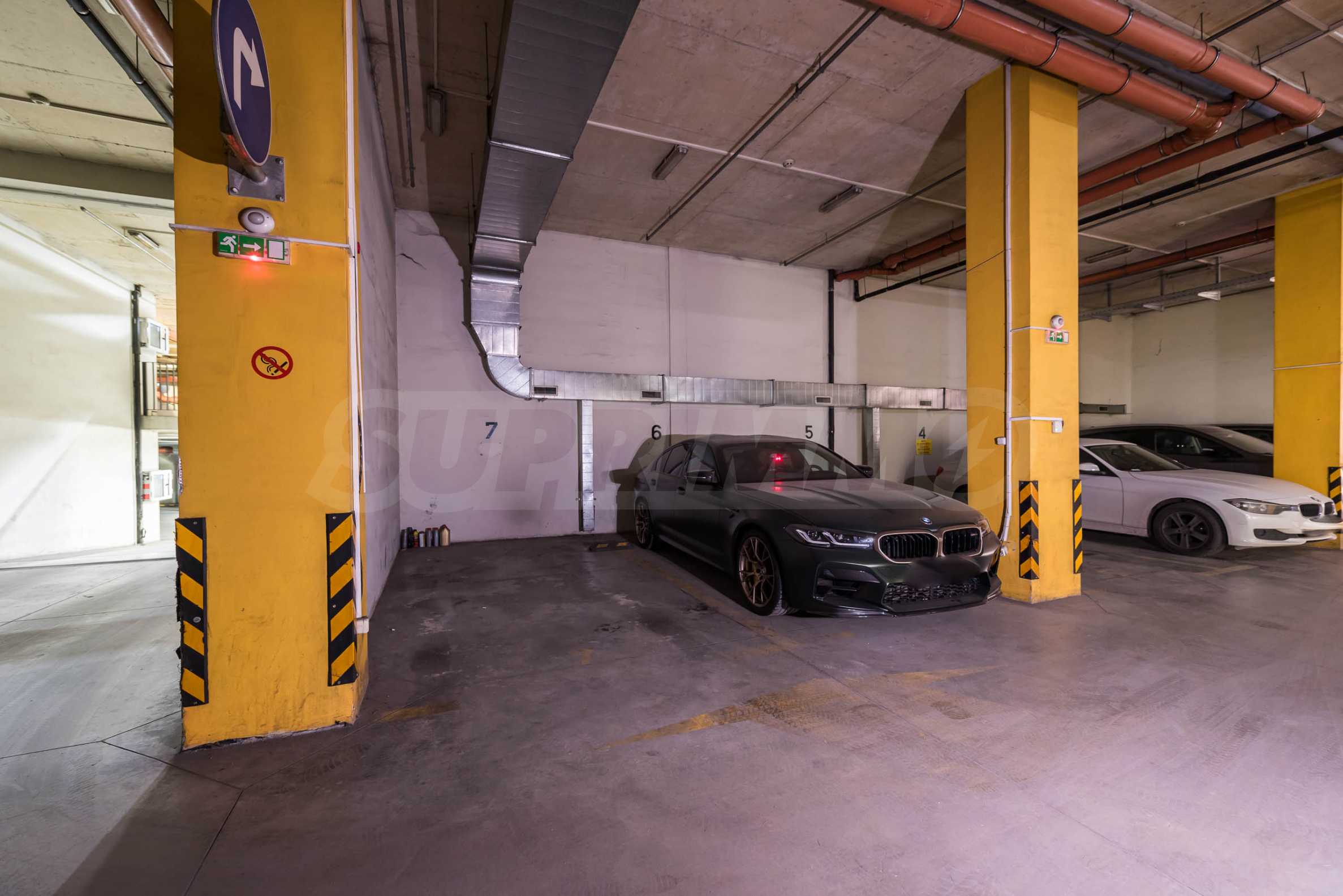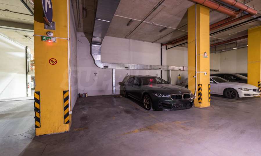 Владелец имеет подземное парковочное место на уровне минус два, расположенное на большой высоте (6 м), и с установкой подъемной платформы появится возможность припарковать две машины. Цена квартиры составляет 900 000 евро (1 760 247 левов), но есть возможность дополнительно приобрести подземное парковочное место за 50 000 евро (97 792 лева).