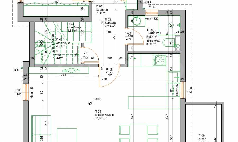 • Внутренние кирпичные стены толщиной 12 см.