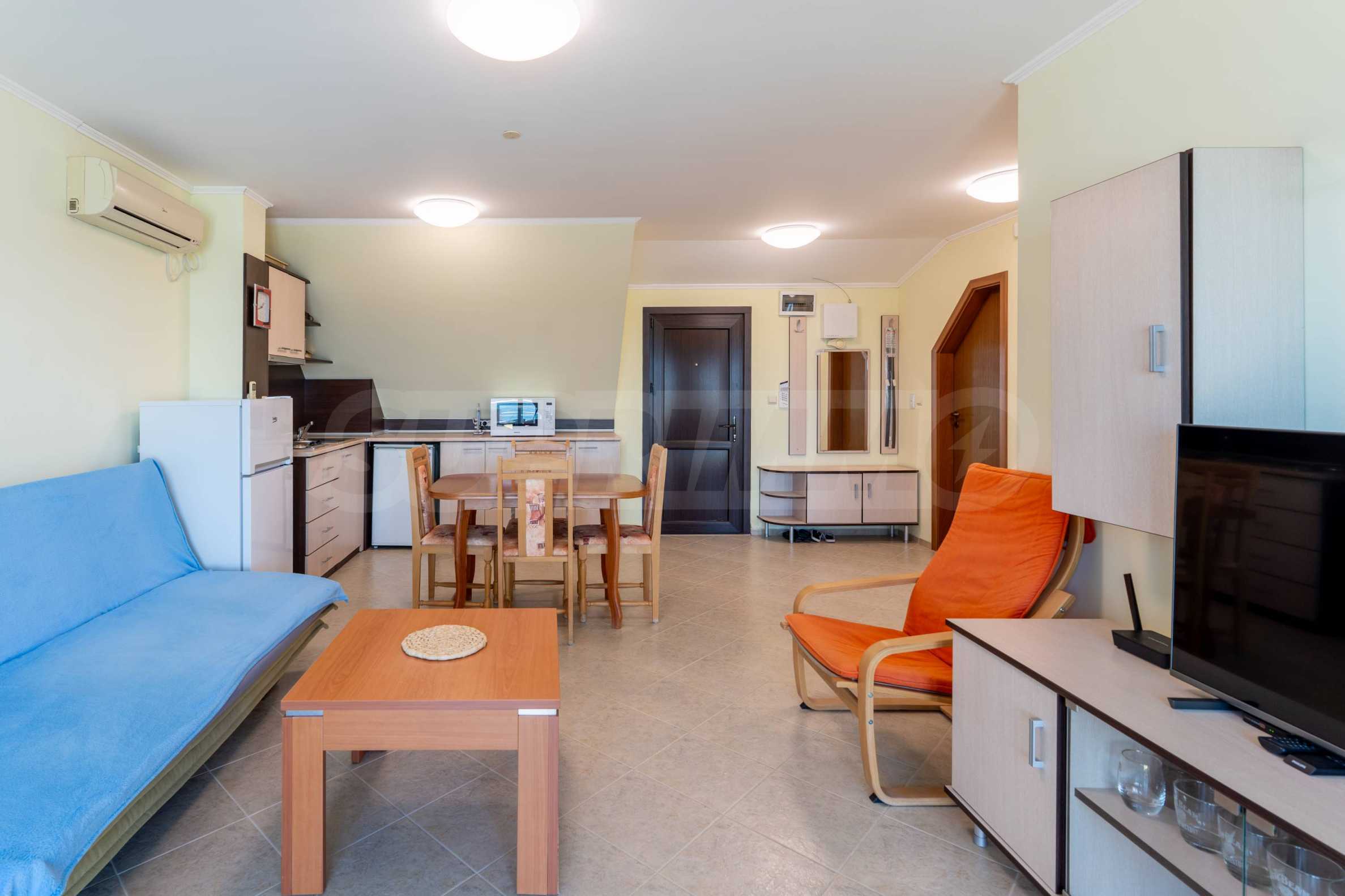Предлагаем к продаже однокомнатную квартиру в красивом закрытом жилом комплексе, расположенном на первой линии моря в Буджаке, Созополь.