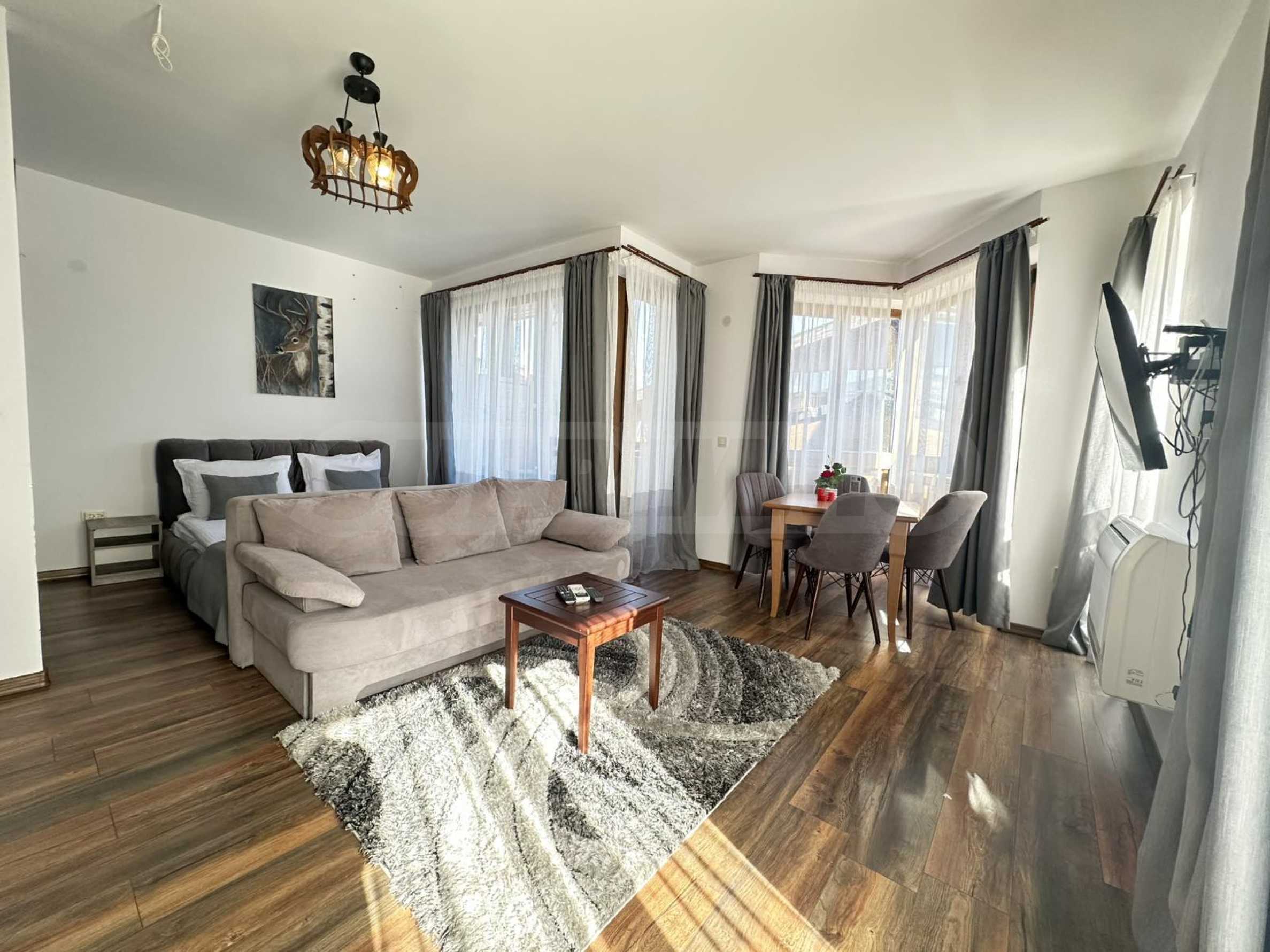 Представляем вашему вниманию уютную и полностью меблированную однокомнатную квартиру с прямым доступом к спа-центру, расположенную в престижном гольф-клубе Pirin Golf and Country Club.
