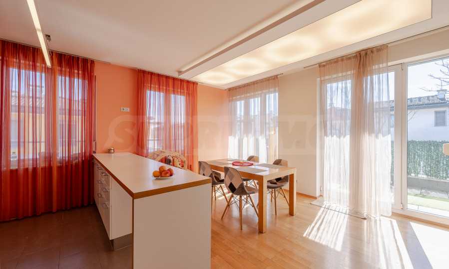 Общая площадь объекта составляет 182 кв. м, и он впечатляет просторными комнатами, обилием естественного света и двумя большими террасами общей площадью 31 кв. м, с которых открываются прекрасные виды на город, парк и гору Витоша.