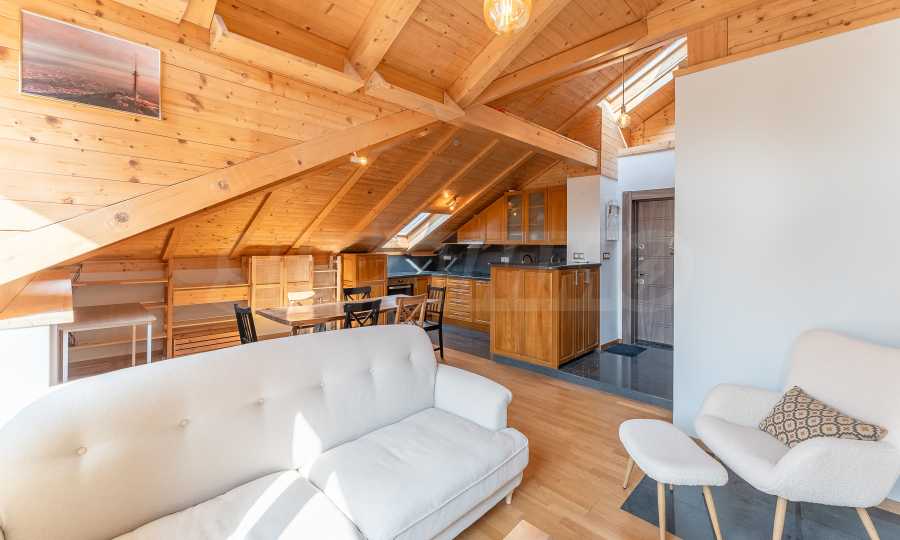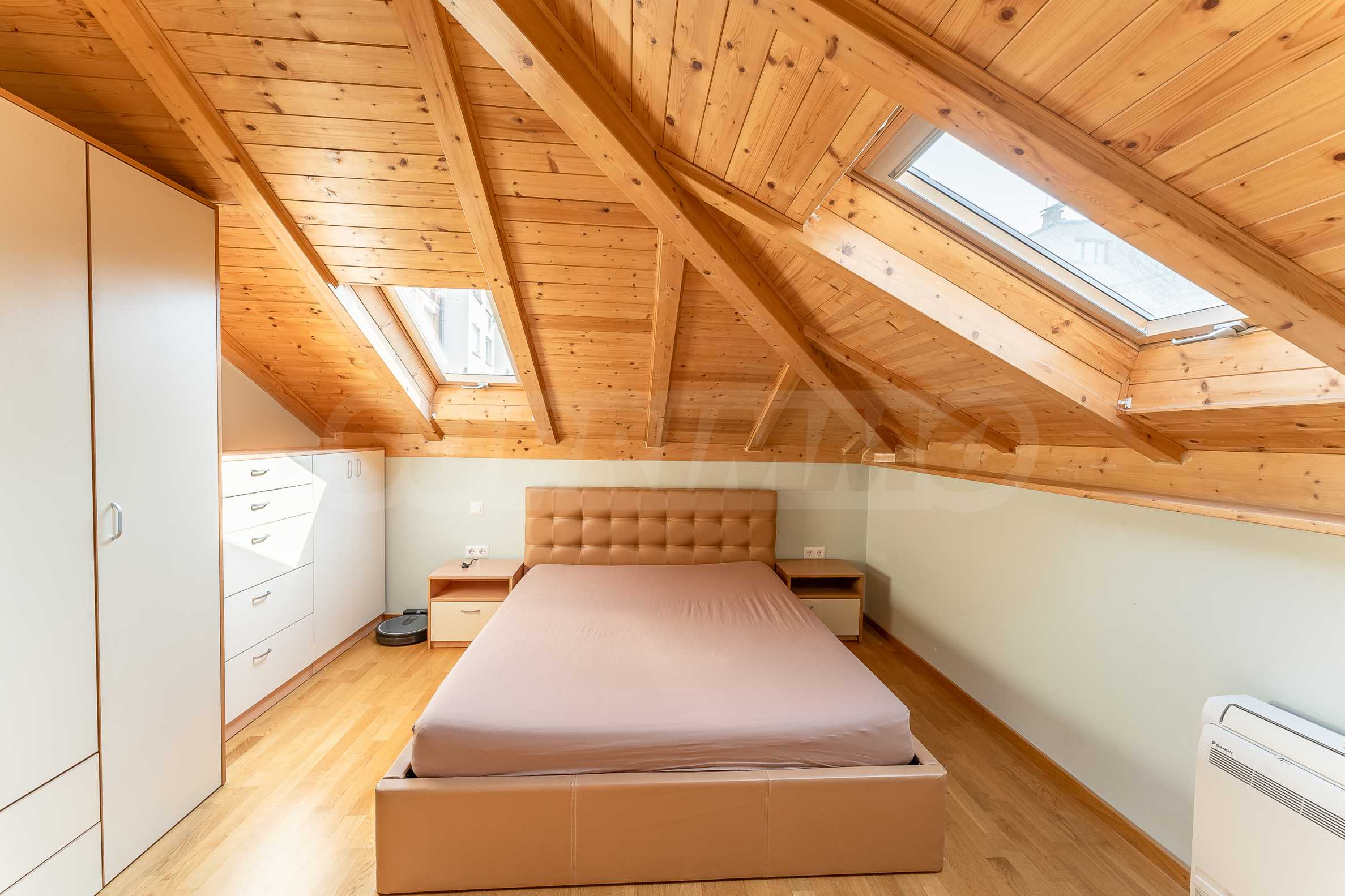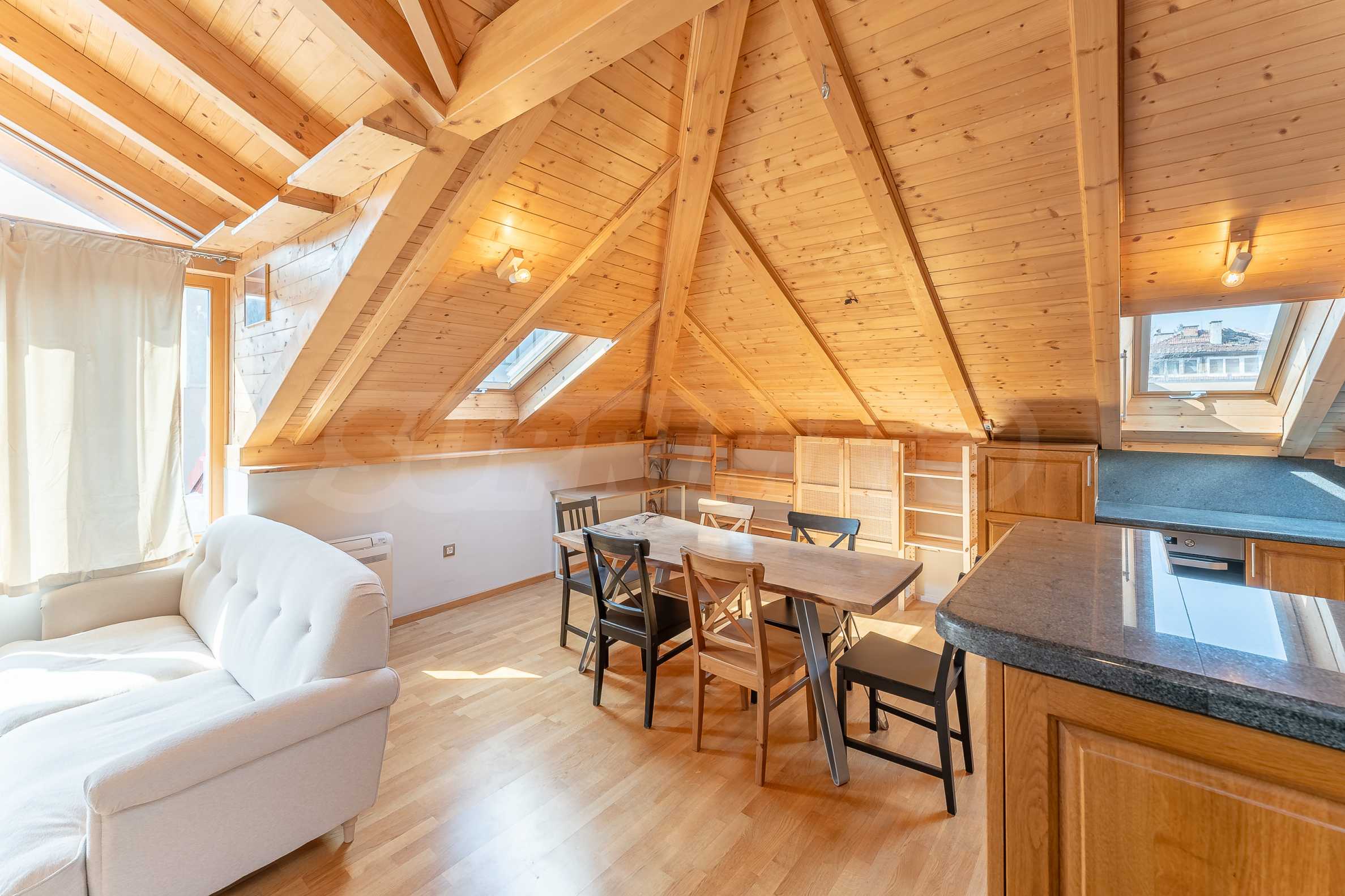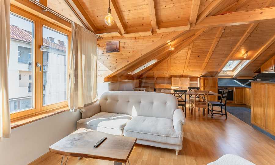 Представляем вашему вниманию исключительную мансардную квартиру, отличающуюся характером, стилем и ощущением альпийского уюта, расположенную в престижном и тихом районе Лозенец, в нескольких минутах ходьбы от Национального дворца культуры и основных городских магистралей.
