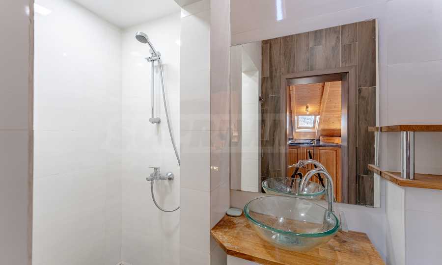 • Современная ванная комната с душевой зоной и стильными деталями;