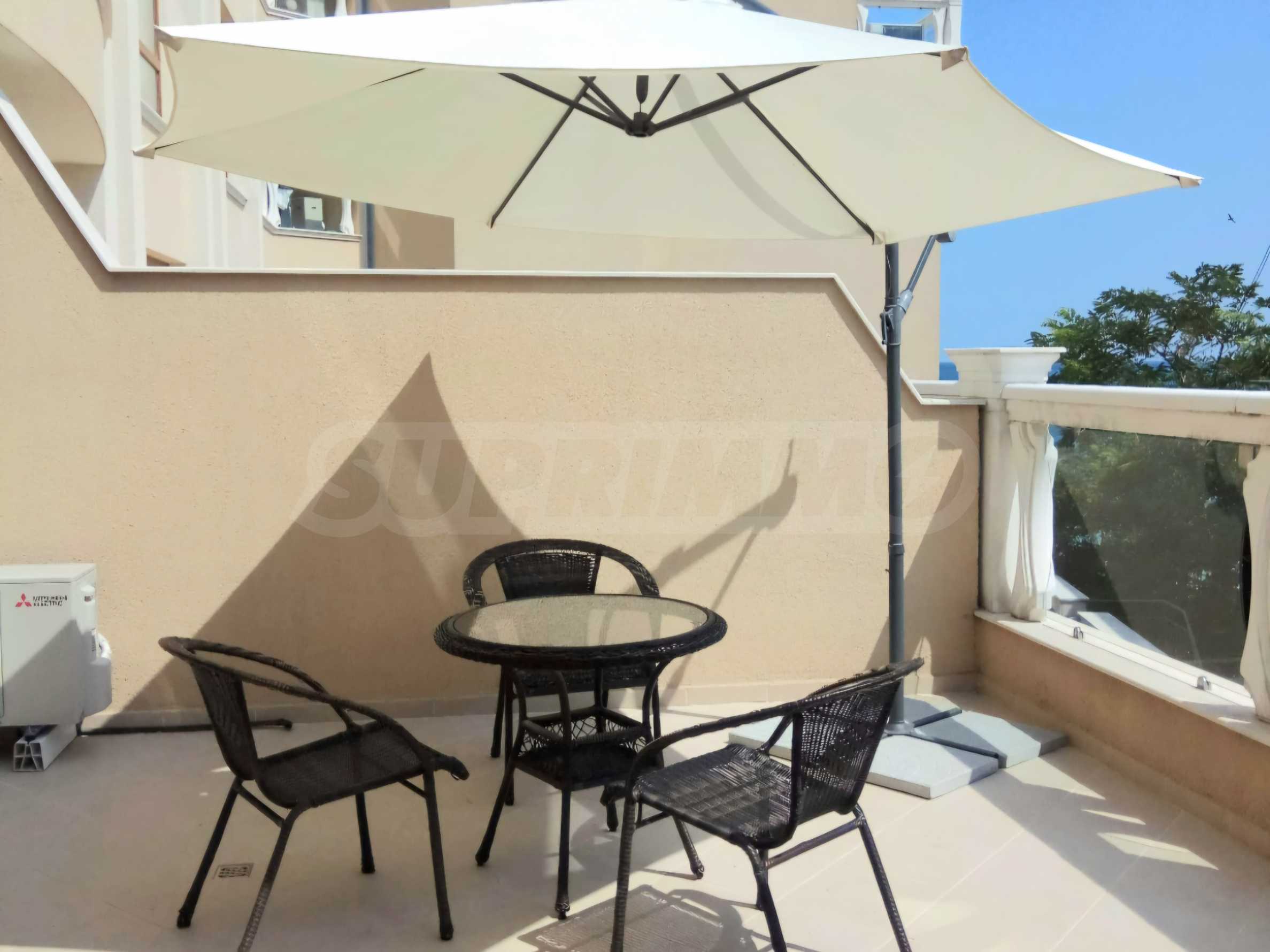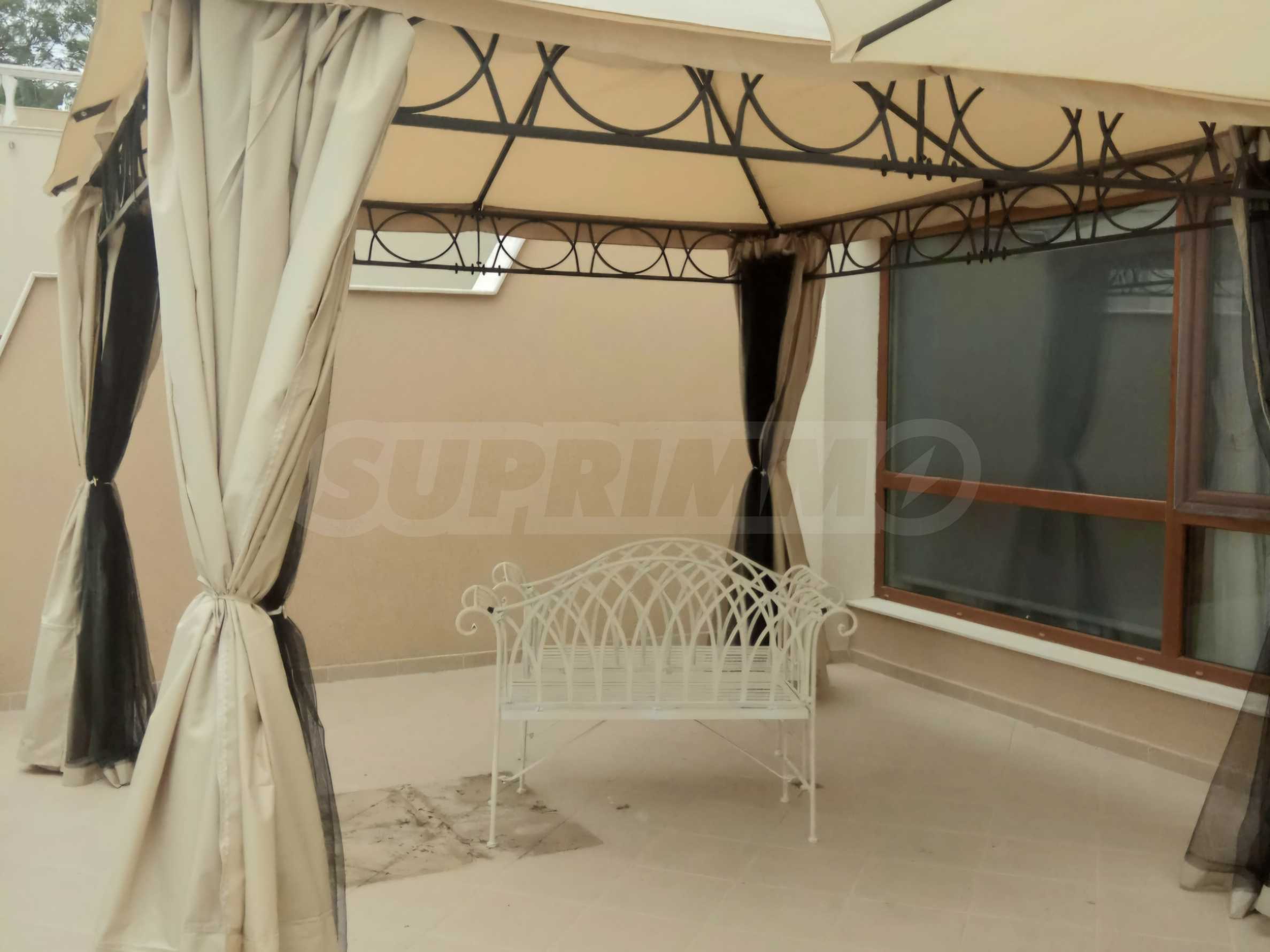 • Впечатляющая терраса площадью 35 кв.м, оборудованная тентом и зонтом, – идеальное место для отдыха и обедов на свежем воздухе.