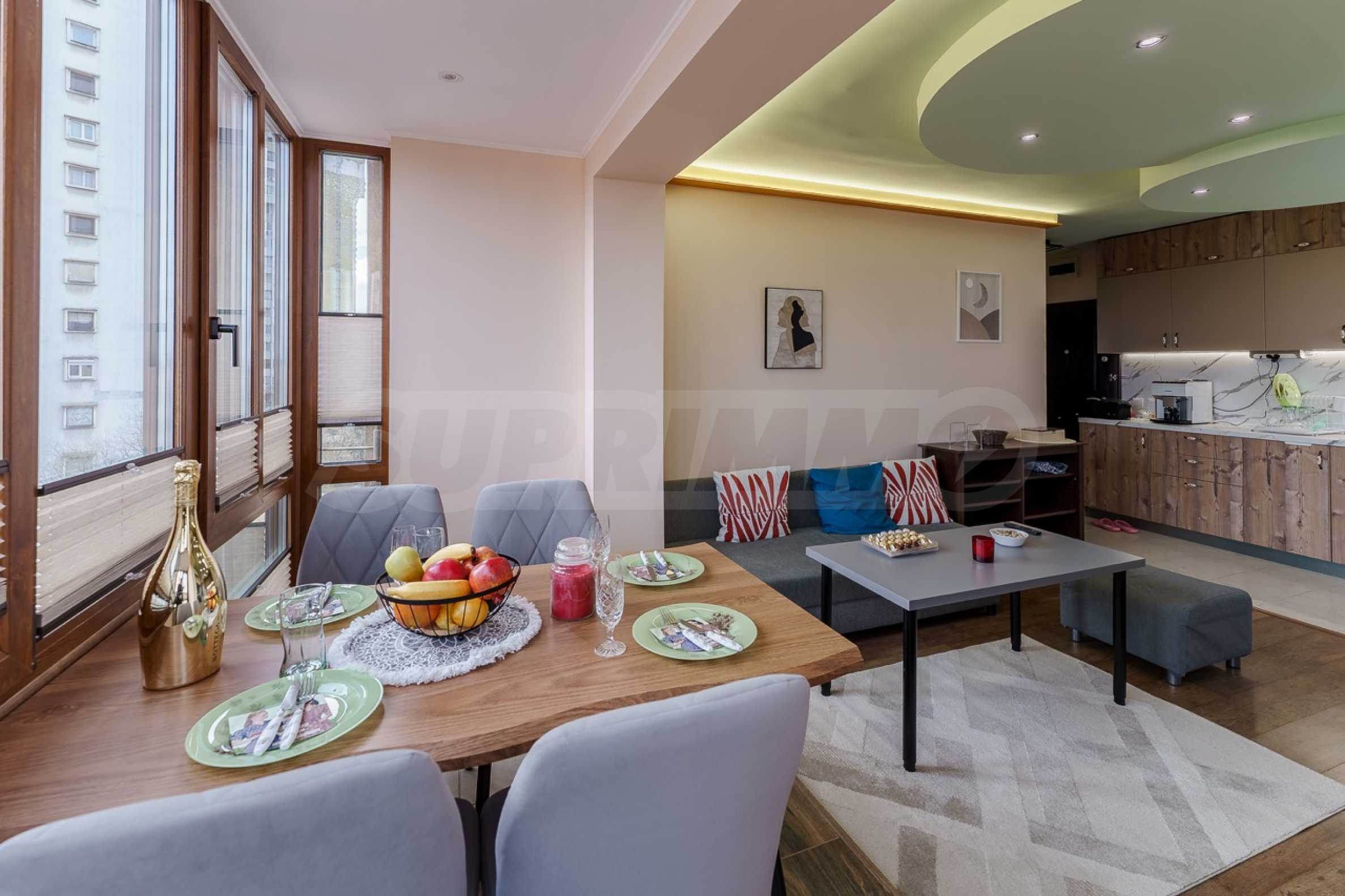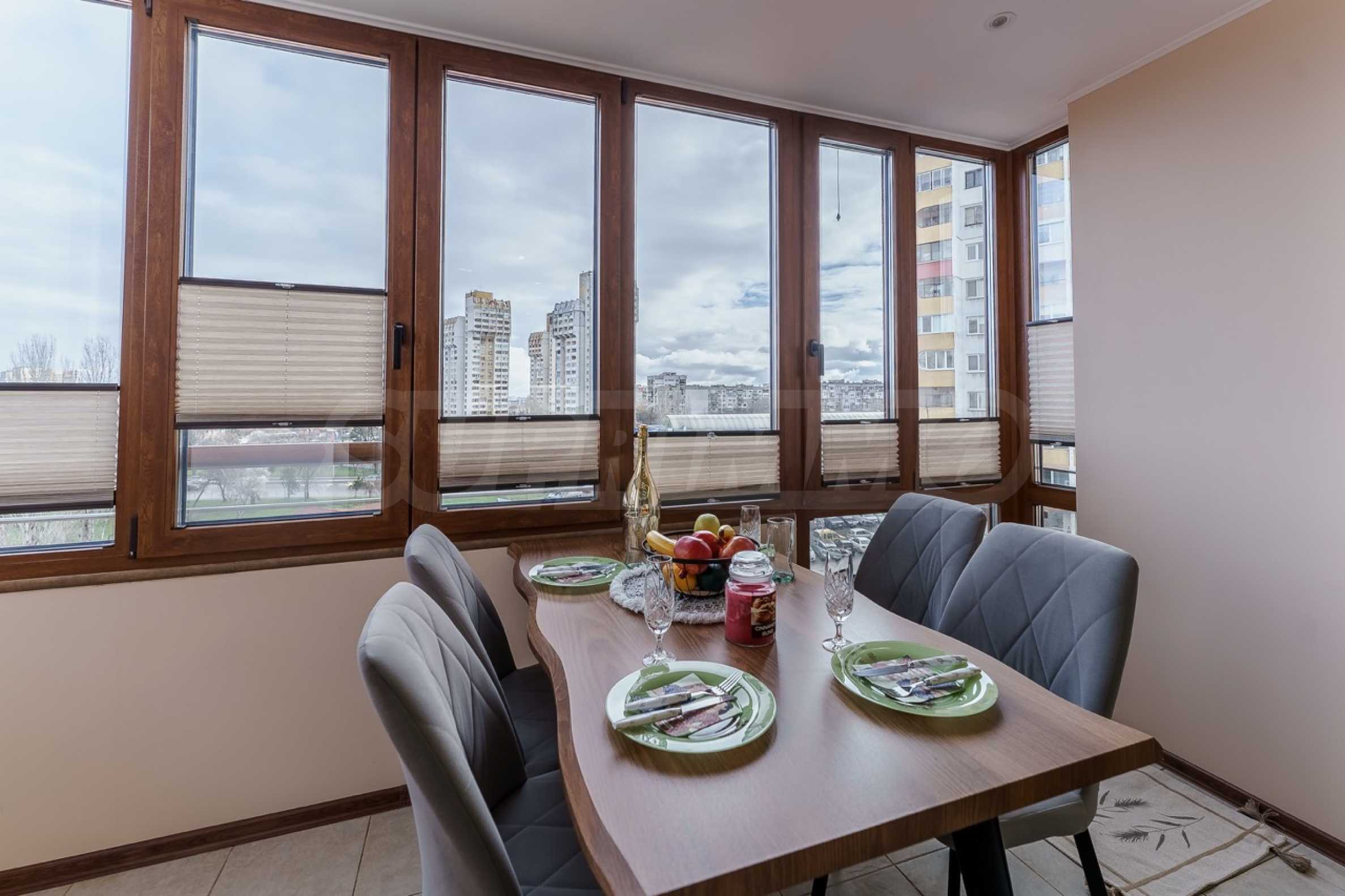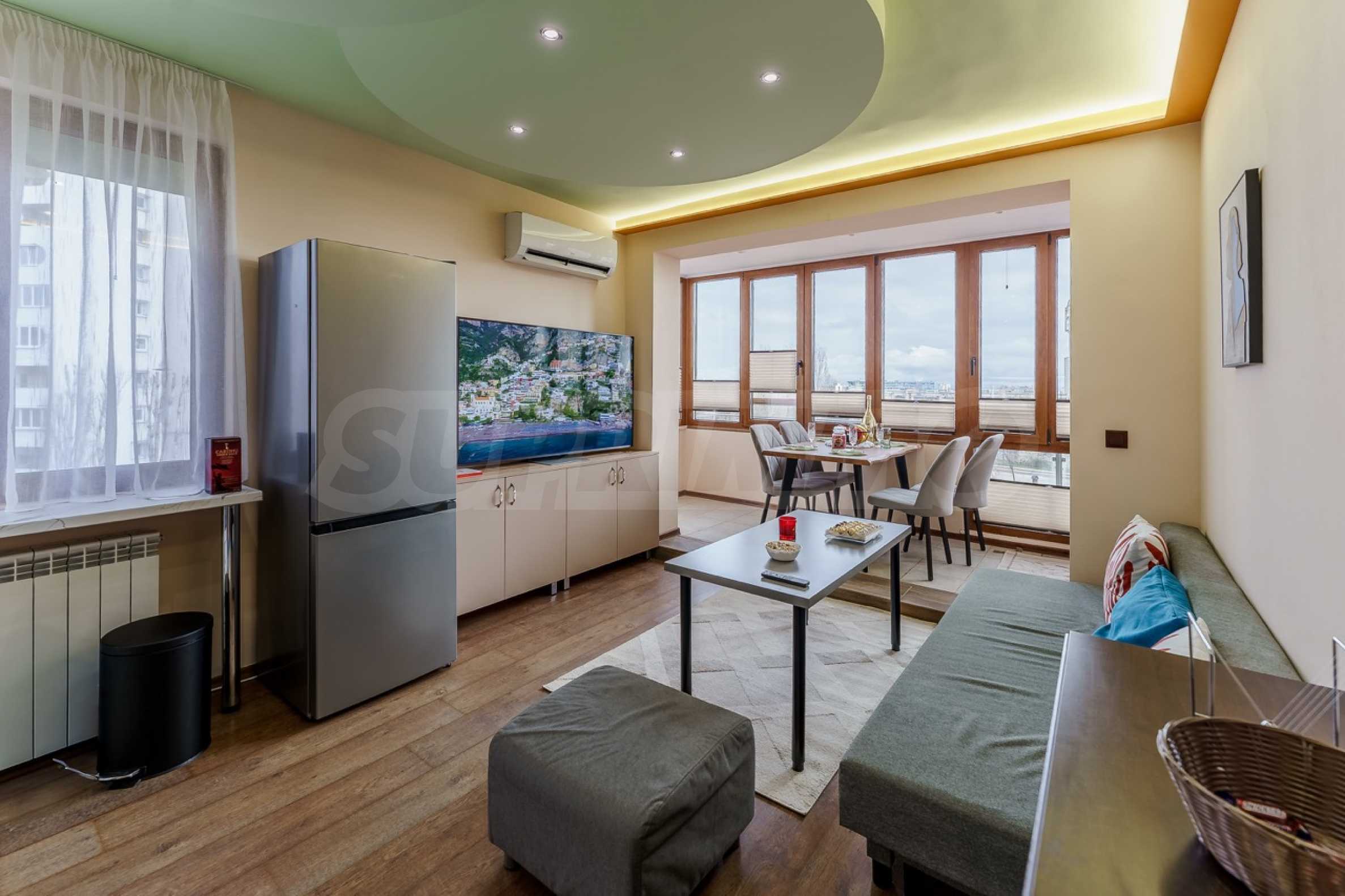 Район отличается превосходно развитой городской средой – поблизости находятся парк Святой Троицы, детские сады, супермаркеты, аптеки и различные торговые предприятия, а также 45-я начальная школа имени Константина Величкова. Это делает недвижимость отличным выбором как для семей, так и для инвестиций с высокой ликвидностью.