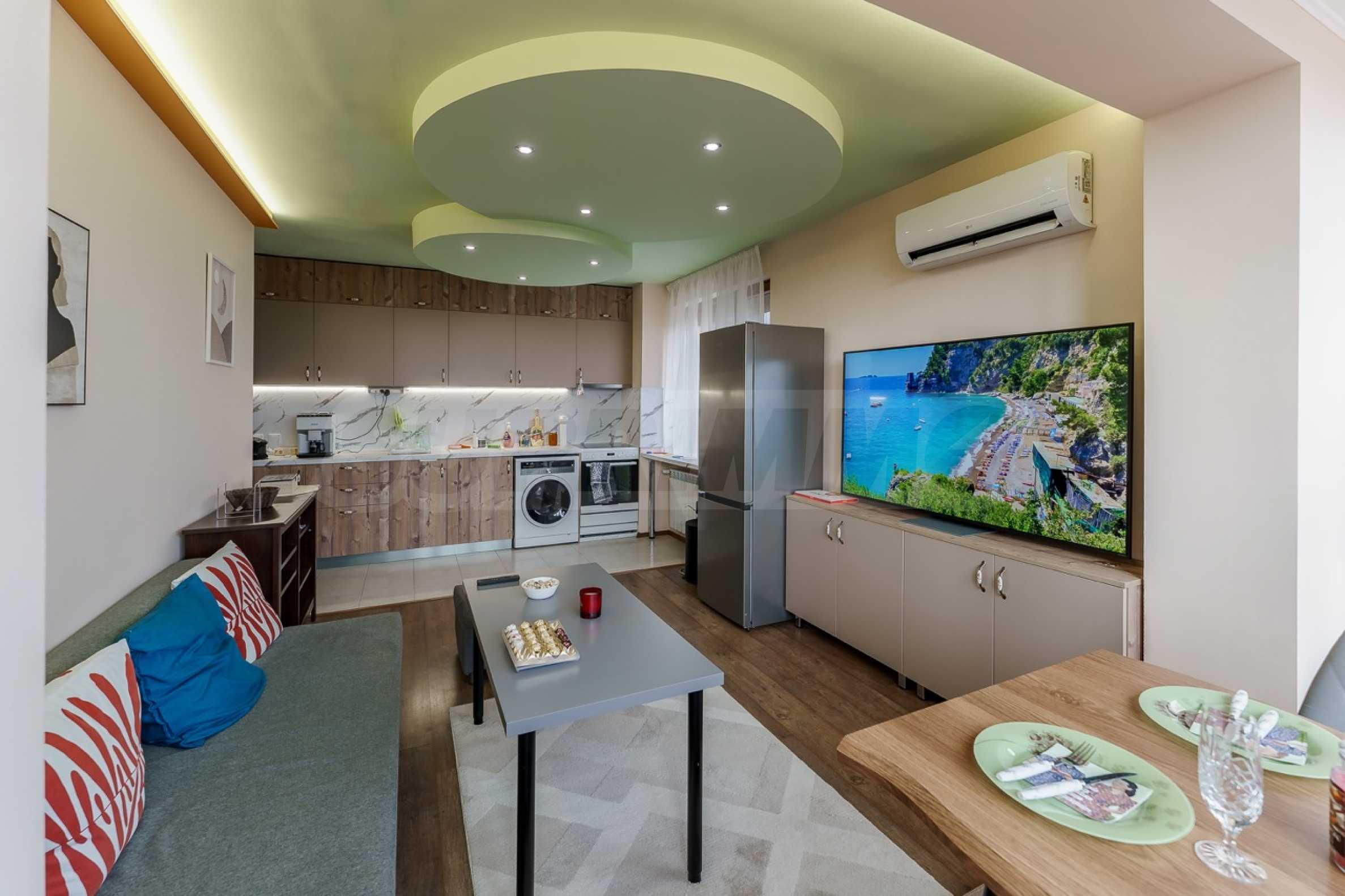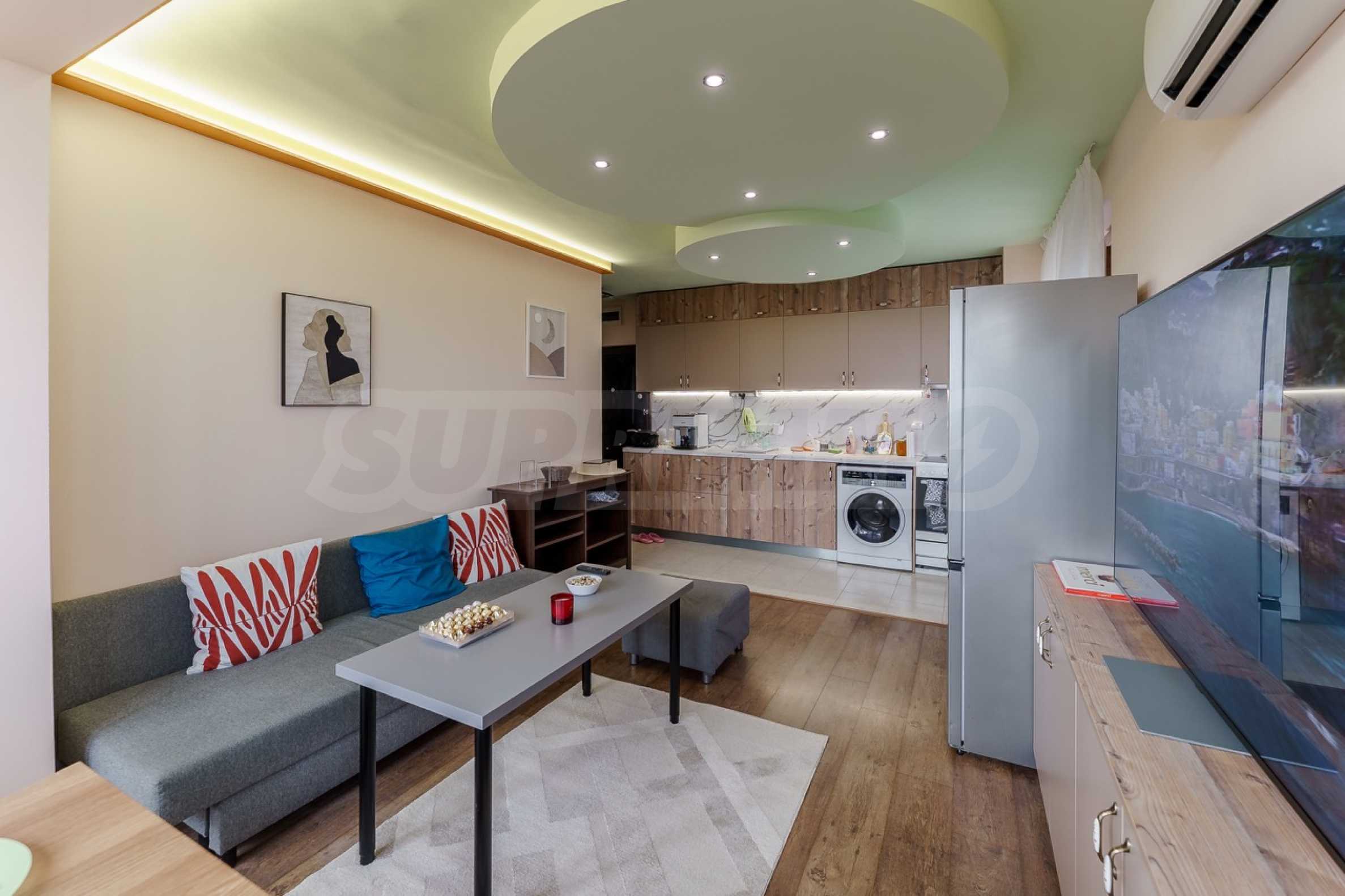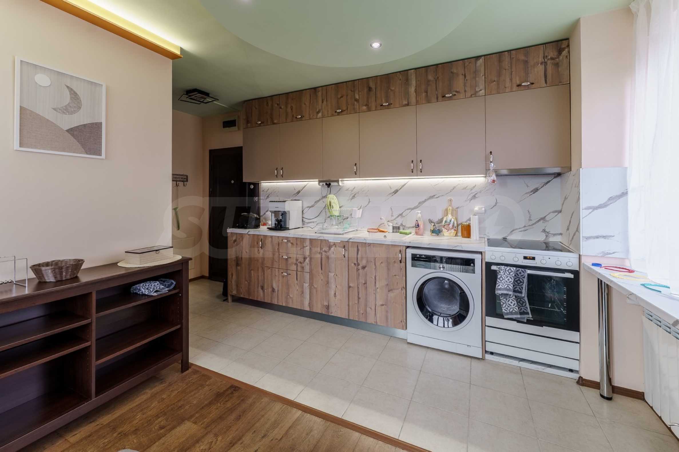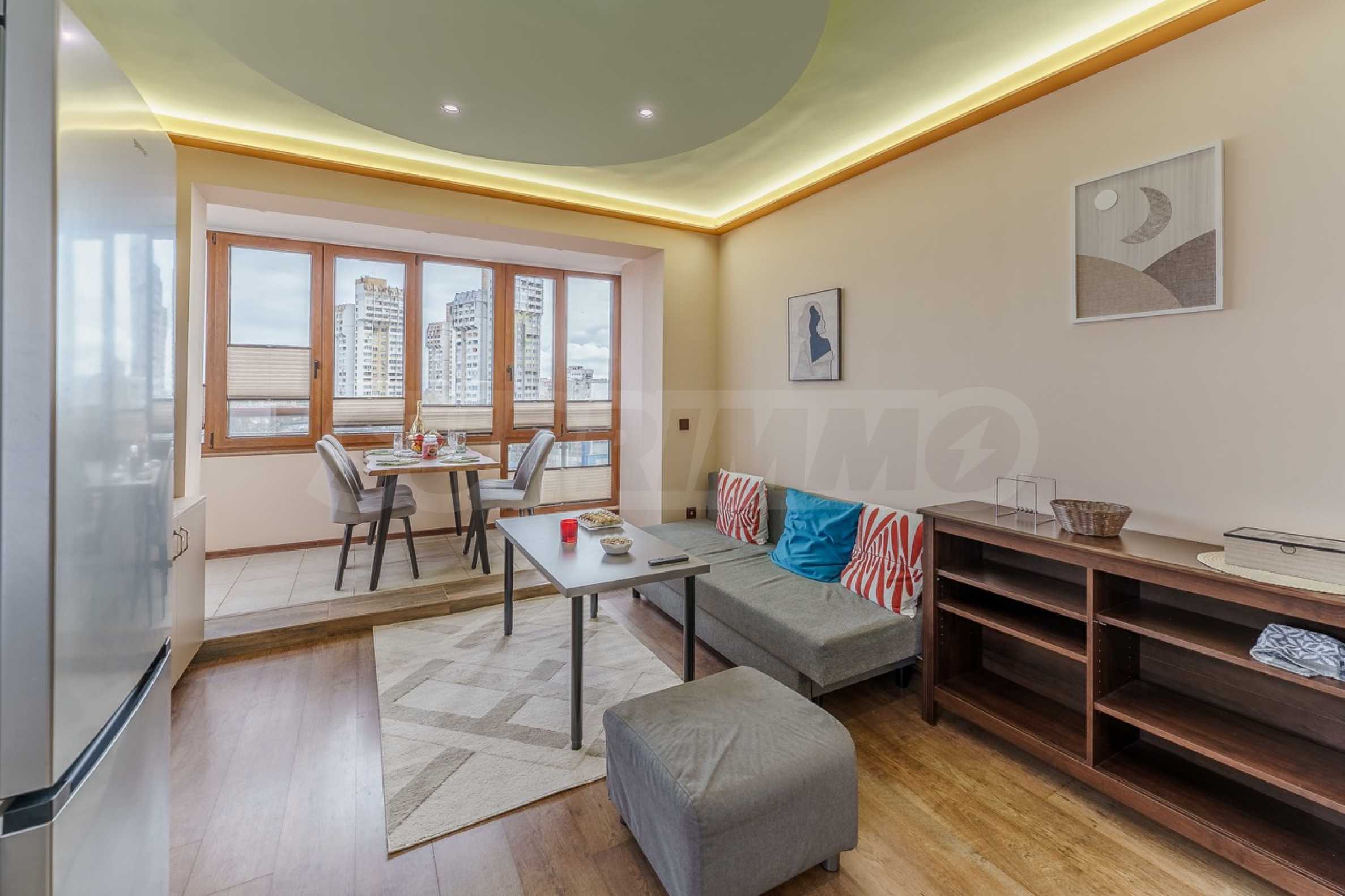 Район отличается превосходно развитой городской средой – поблизости находятся парк Святой Троицы, детские сады, супермаркеты, аптеки и различные торговые предприятия, а также 45-я начальная школа имени Константина Величкова. Это делает недвижимость отличным выбором как для семей, так и для инвестиций с высокой ликвидностью.