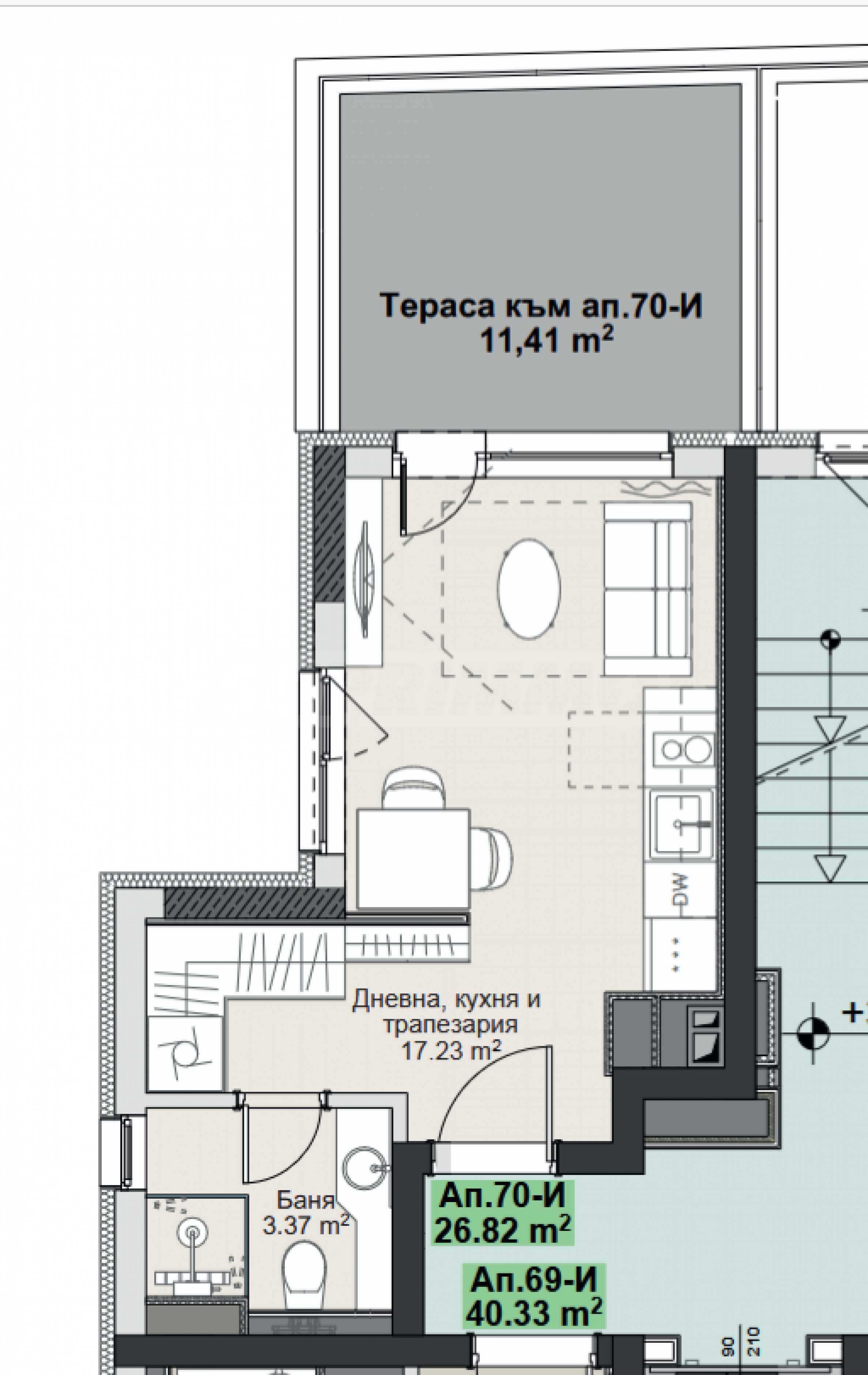 Здание является частью новейшей очереди комплекса и предлагает современный дизайн, отличную планировку квартир и высокое качество исполнения. Квартира отличается обилием естественного света и приятным видом на гору Витоша, сочетая комфорт дома, расположенного близко к природе, с инвестиционным потенциалом развивающегося района.