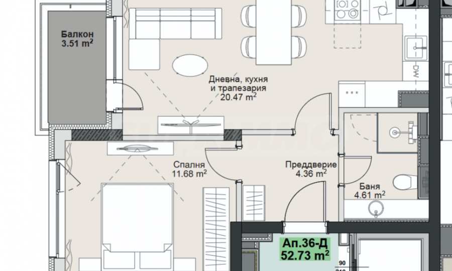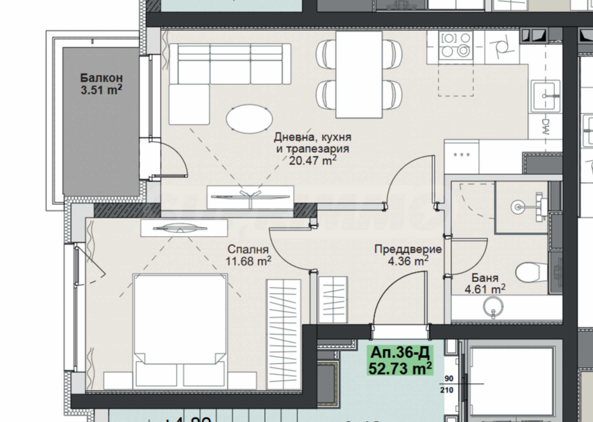 Здание является частью новейшей очереди комплекса и предлагает современный дизайн, отличную планировку квартир и высокое качество исполнения. Квартира отличается обилием естественного света и приятным видом на гору Витоша, сочетая комфорт дома, расположенного близко к природе, с инвестиционным потенциалом развивающегося района.