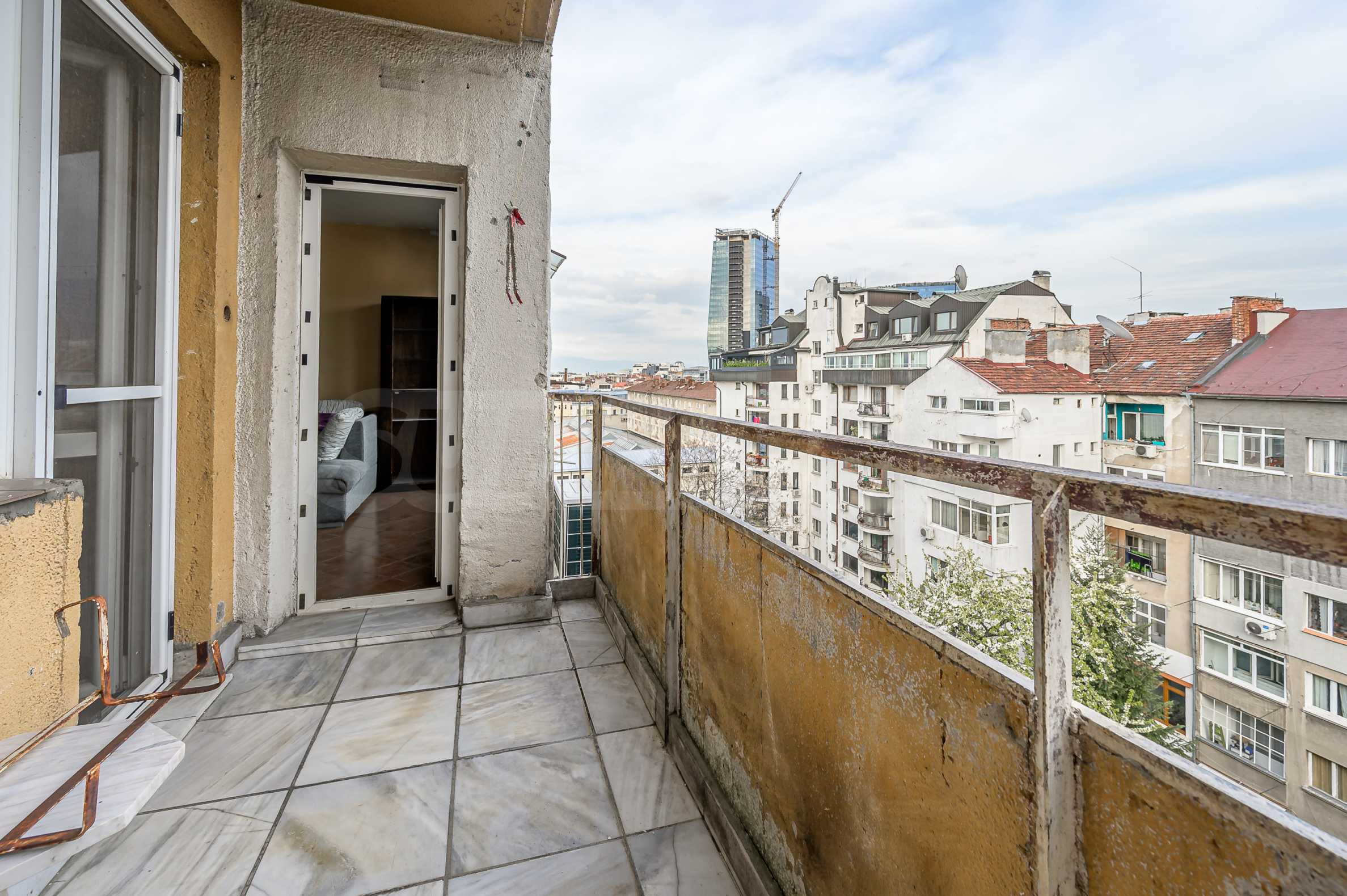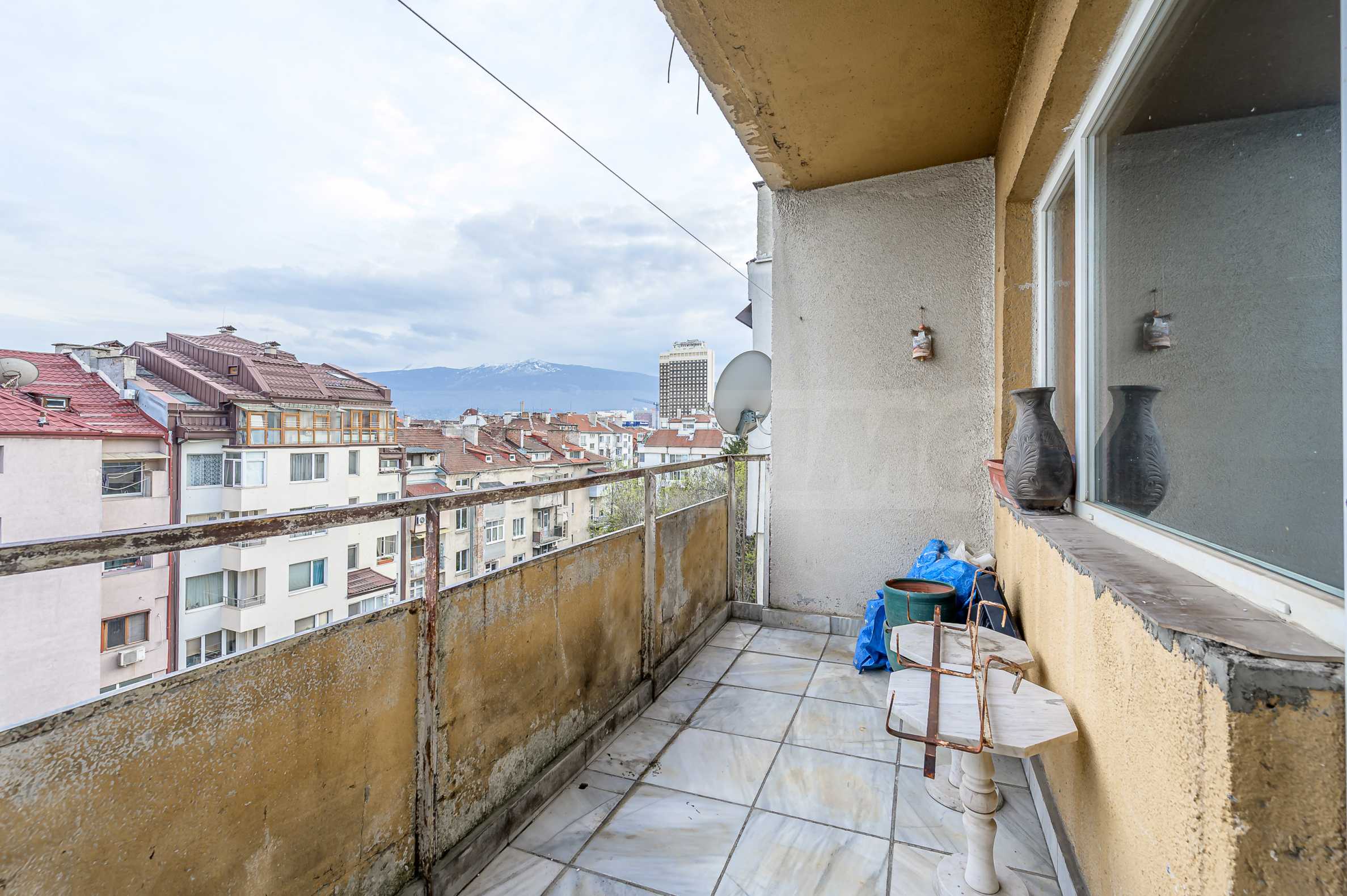 Квартира состоит из трех отдельных комнат — двух спален и просторной гостиной, отдельной кухни, ванной комнаты с ванной, отдельного туалета, а также гардеробной с возможностью отделения душевой комнаты. Также имеется подвал площадью 6 кв. метров. С просторной террасы открывается приятный вид на Витошу — редкое преимущество для недвижимости такого типа в центральной части города.