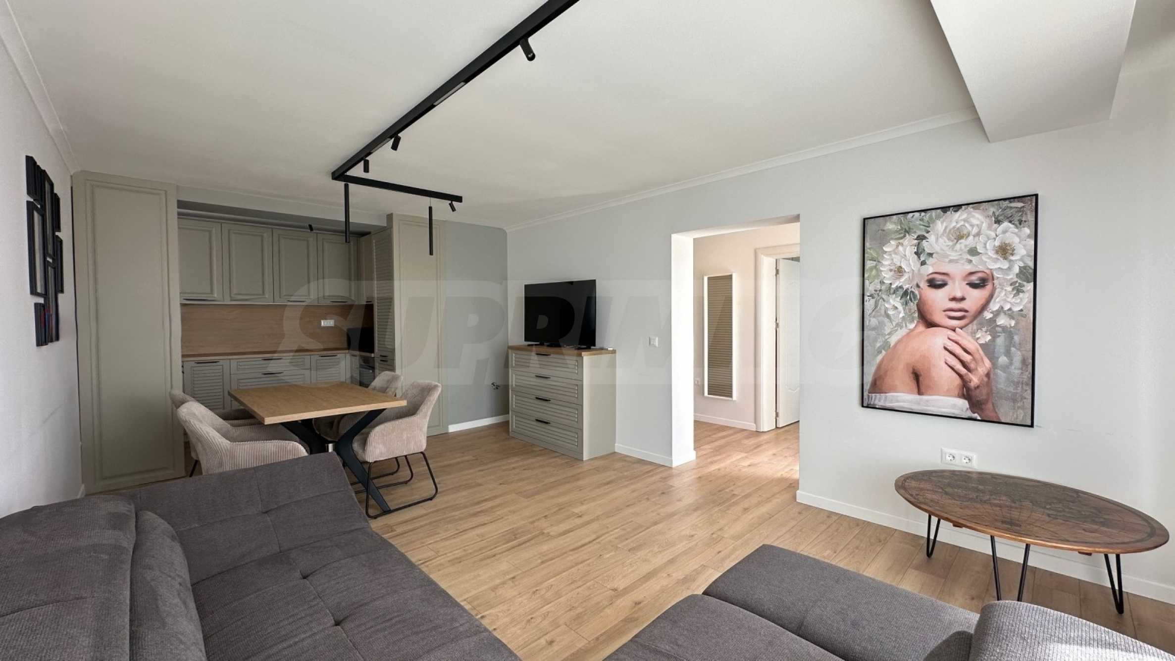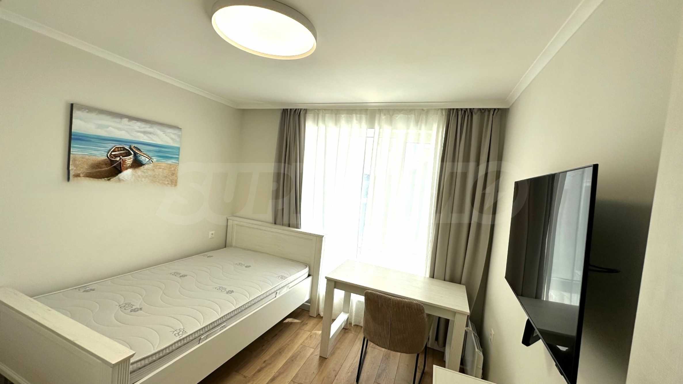 Квартира отремонтирована с использованием высококачественных материалов, полностью меблирована и оборудована всей необходимой бытовой техникой, что обеспечивает уют и комфорт.