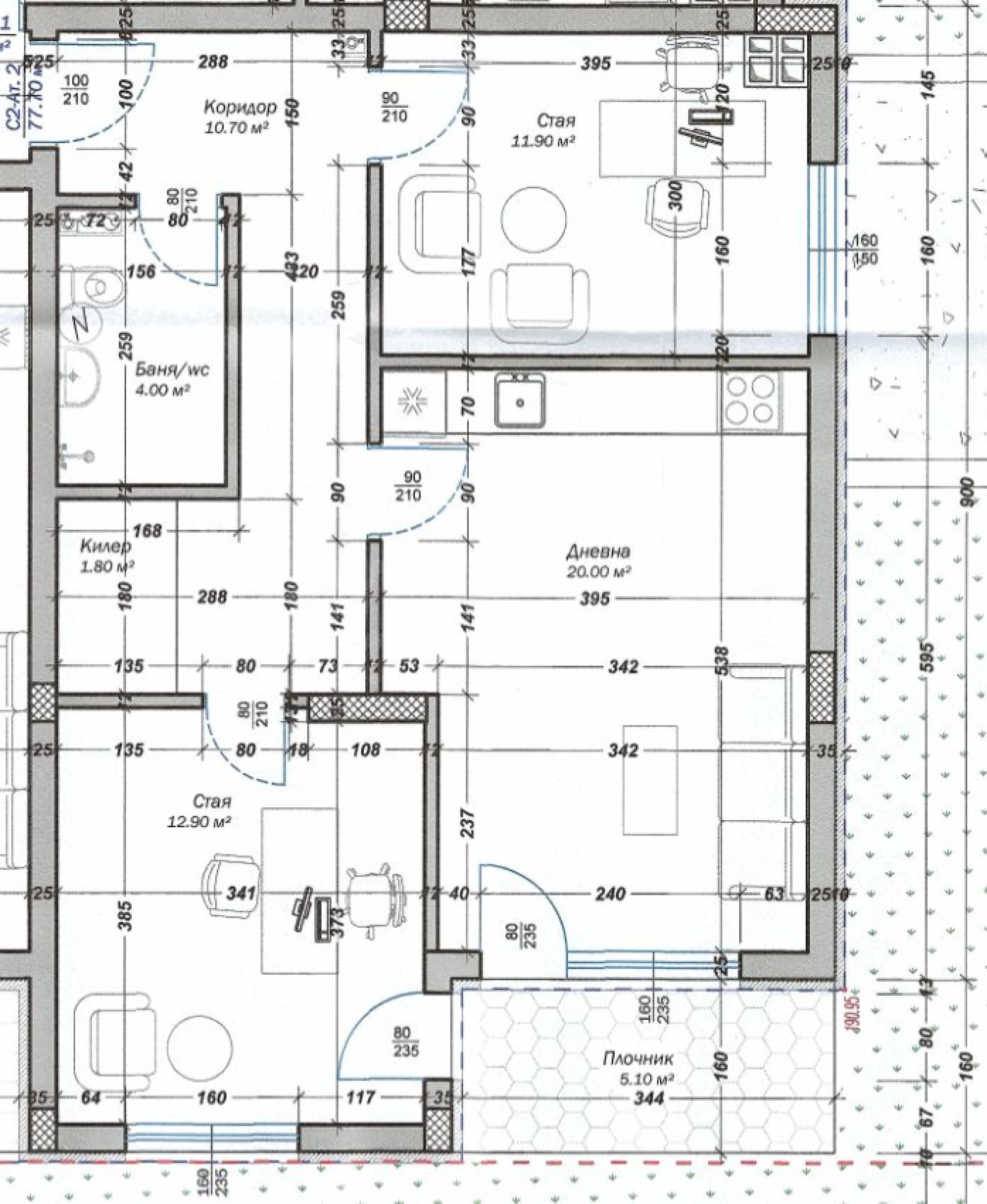 Квартира общей площадью 99,82 кв.м расположена на 2-м этаже 4-квартирного дома, с видом на юг и Варну, а также на озеро.